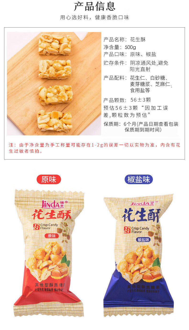 锦大花生酥原味 500g/袋 喜糖 糖果 休闲零食 糕点 招待糖婚庆糖