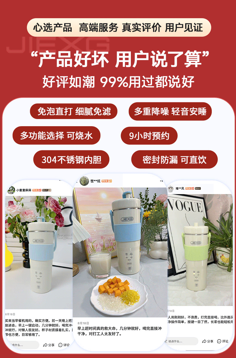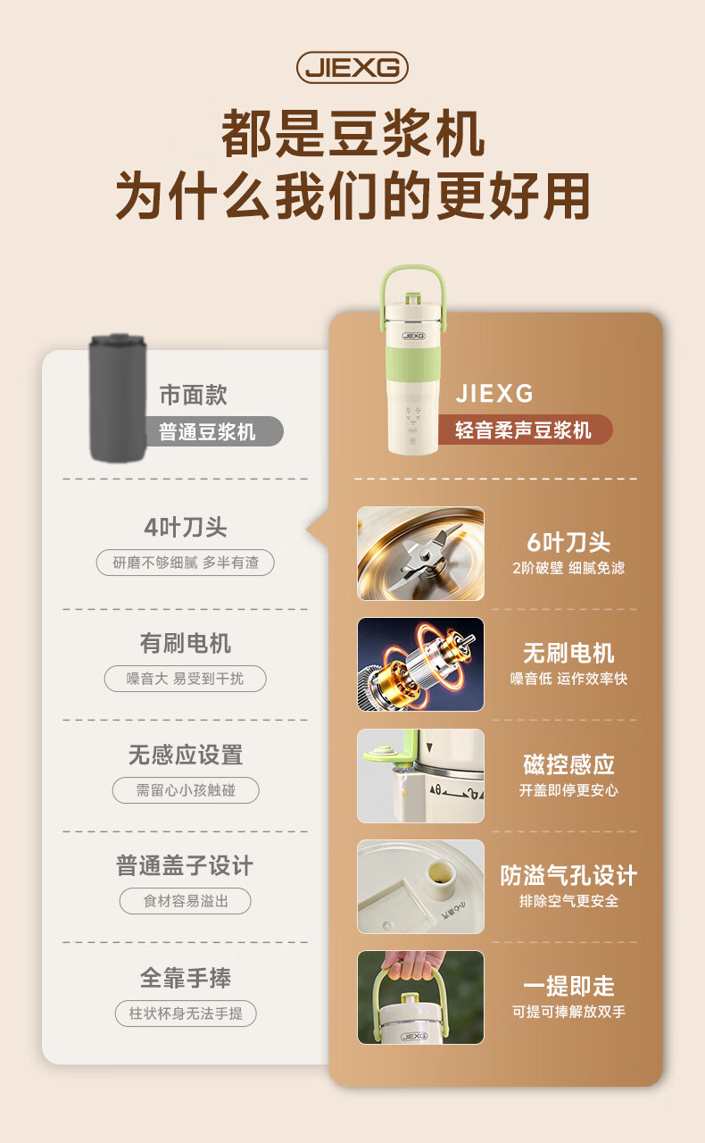 JIEXG迷你豆浆机细腻免滤便携式豆浆杯升级家用无刷电机全自动小型1-2人 五谷杂粮米糊榨汁破壁机 浅绿色 0.3L 安睡免滤轻音+可预约