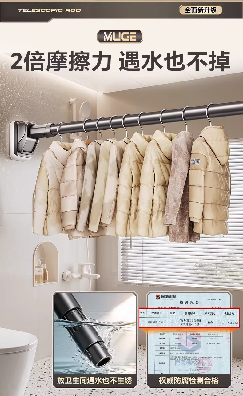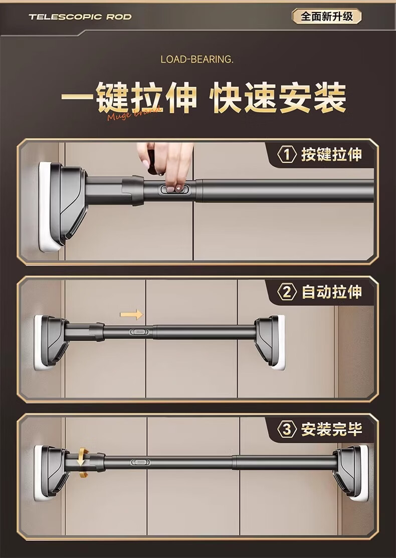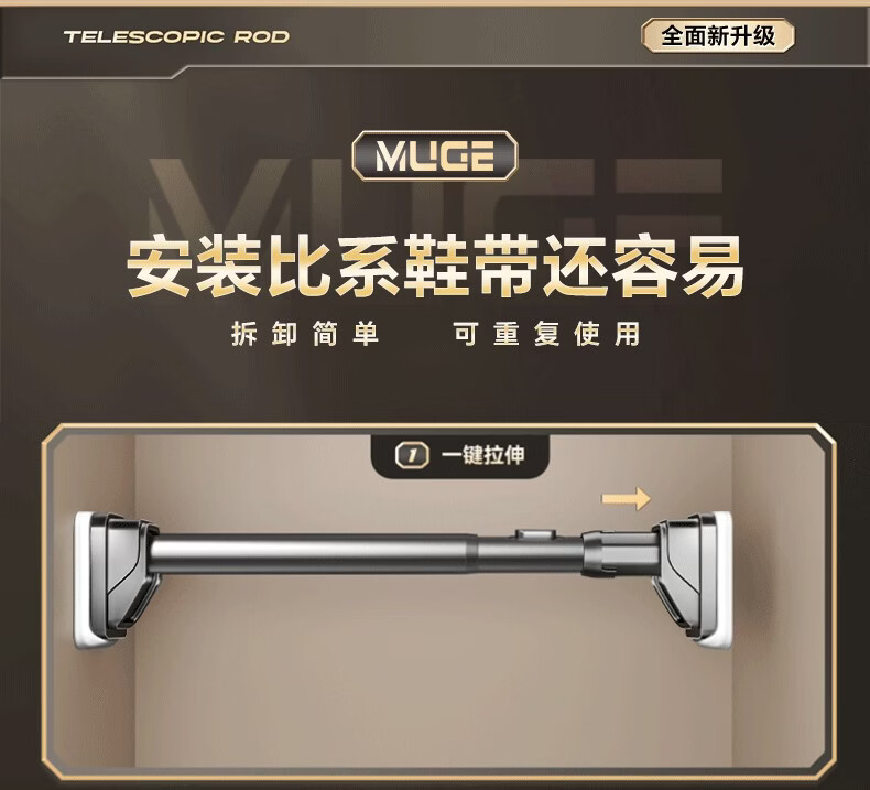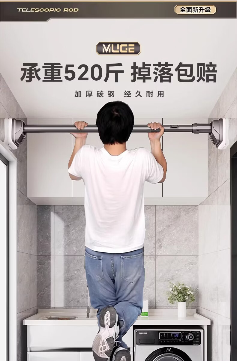 睦歌(MUGE)卫生间不锈钢免打孔伸缩晾衣杆衣架杆浴帘杆支撑衣柜挂衣杆伸缩杆 全新升级【一键伸缩】枪灰色加强承重 33超粗管径,适用1~1.7米内【承重约580斤】