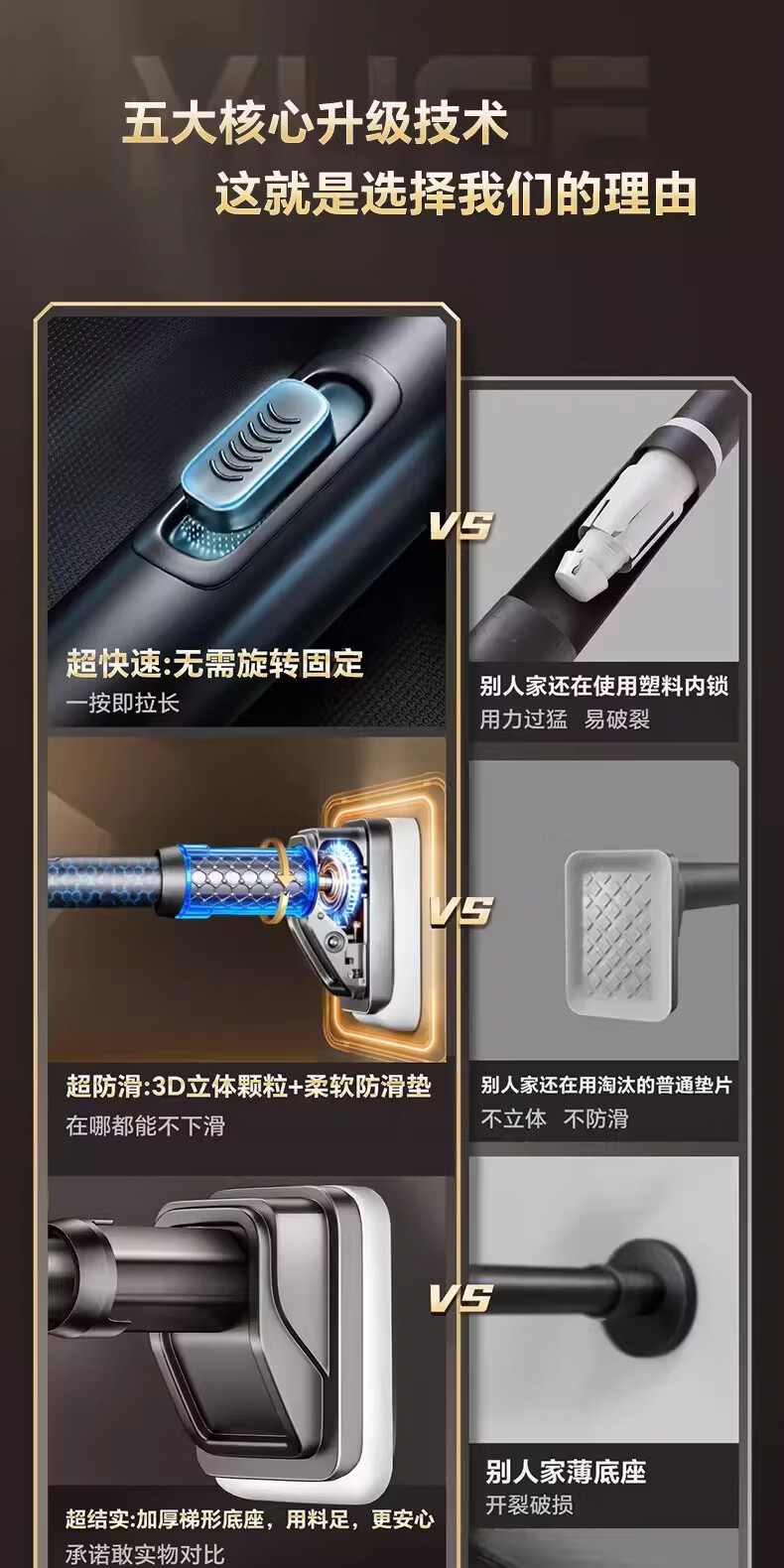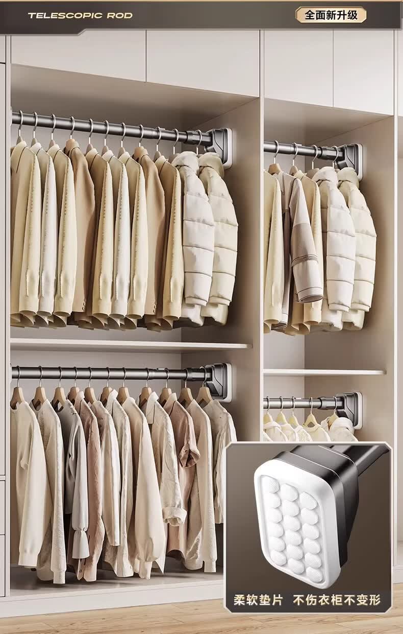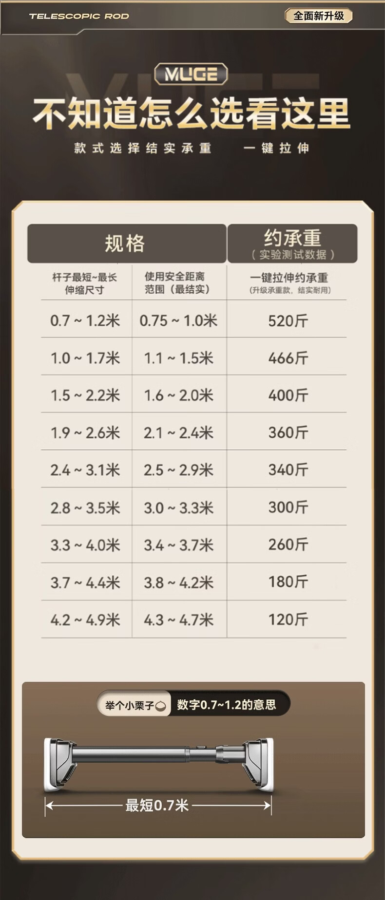 睦歌(MUGE)卫生间不锈钢免打孔伸缩晾衣杆衣架杆浴帘杆支撑衣柜挂衣杆伸缩杆 全新升级【一键伸缩】枪灰色加强承重 33超粗管径,适用1~1.7米内【承重约580斤】