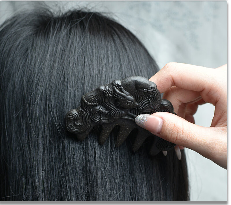 古法合香何首乌按摩梳子经络自然原材料中药香凤九手把 何首乌海豚梳