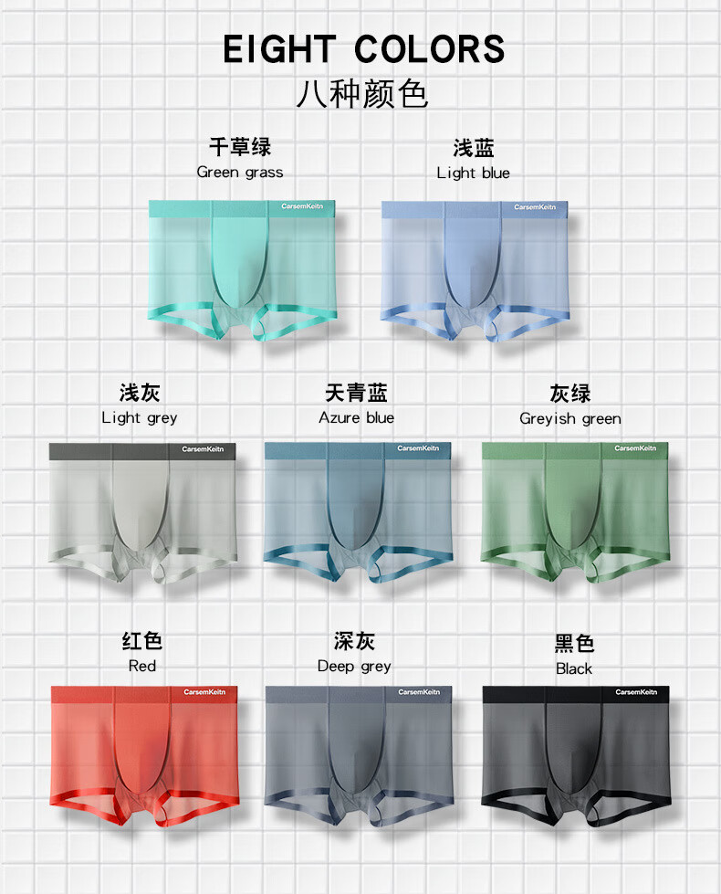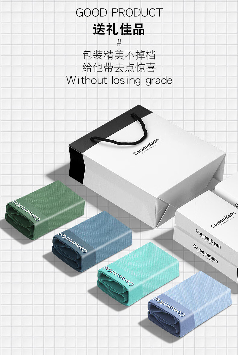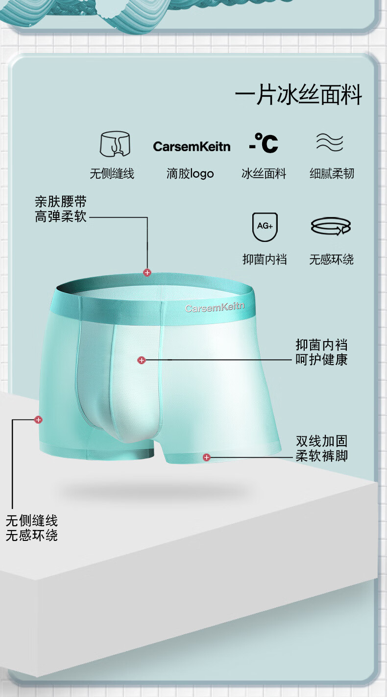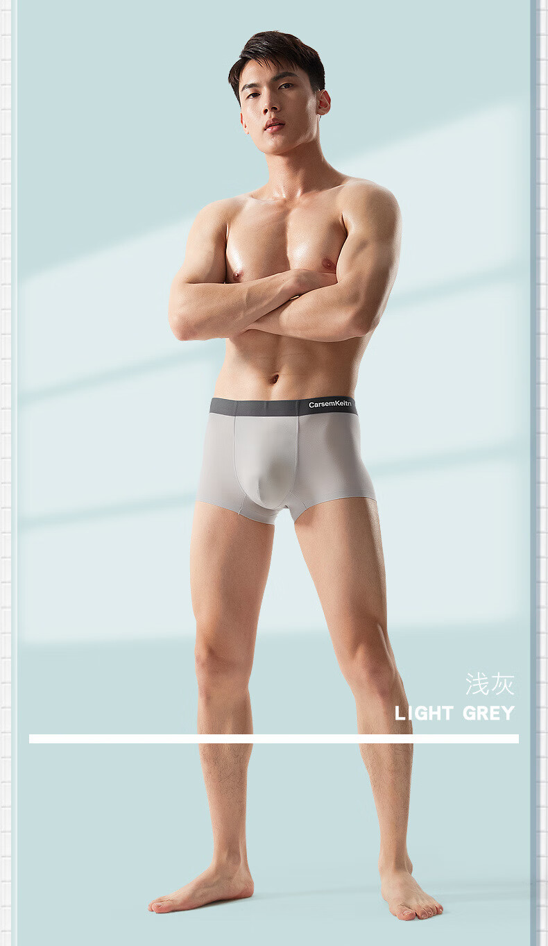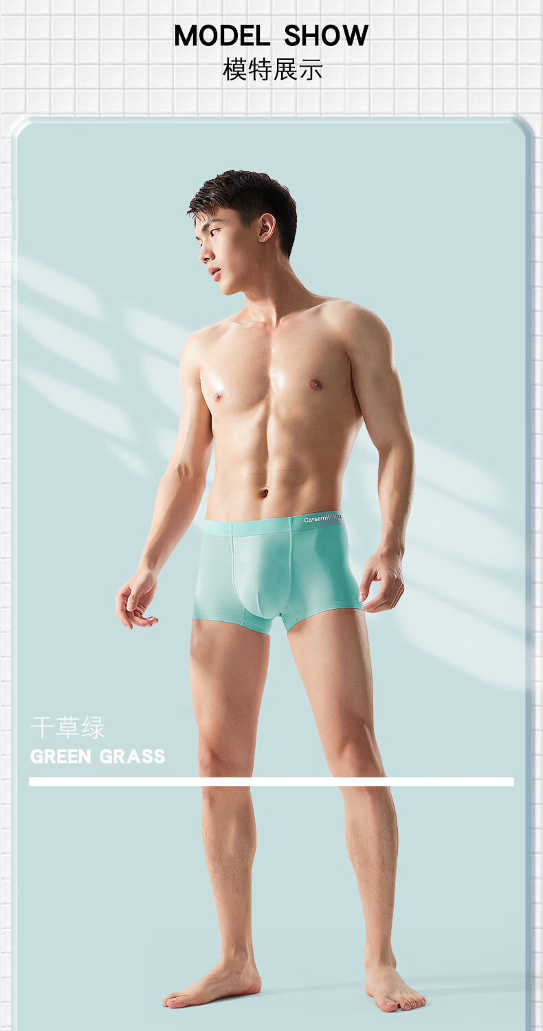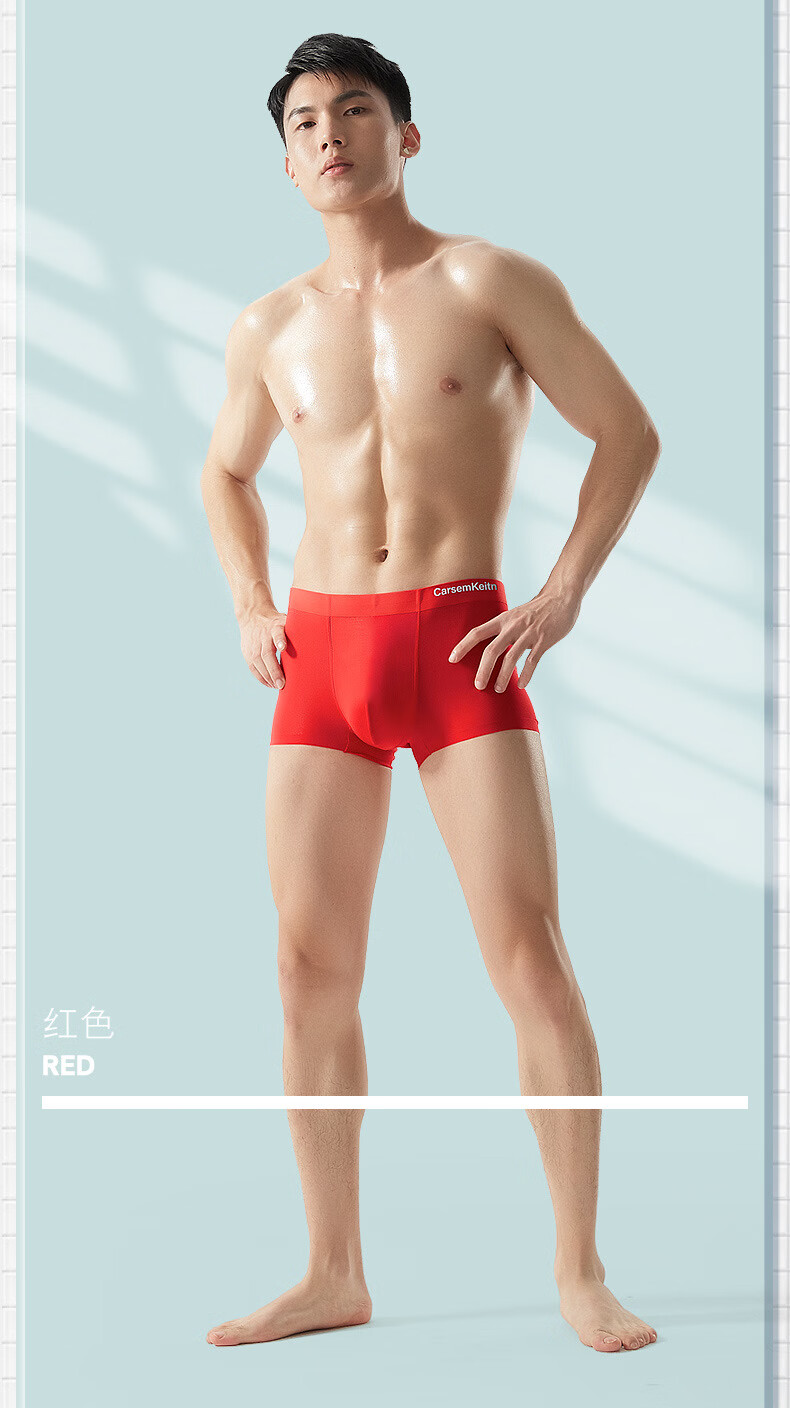 CARSEMKEITN男士冰丝内裤夏季薄款透气抗菌青少年大码运动平角裤礼盒装 TK356【随机四条】抽屉礼盒 3XL 建议175-220斤