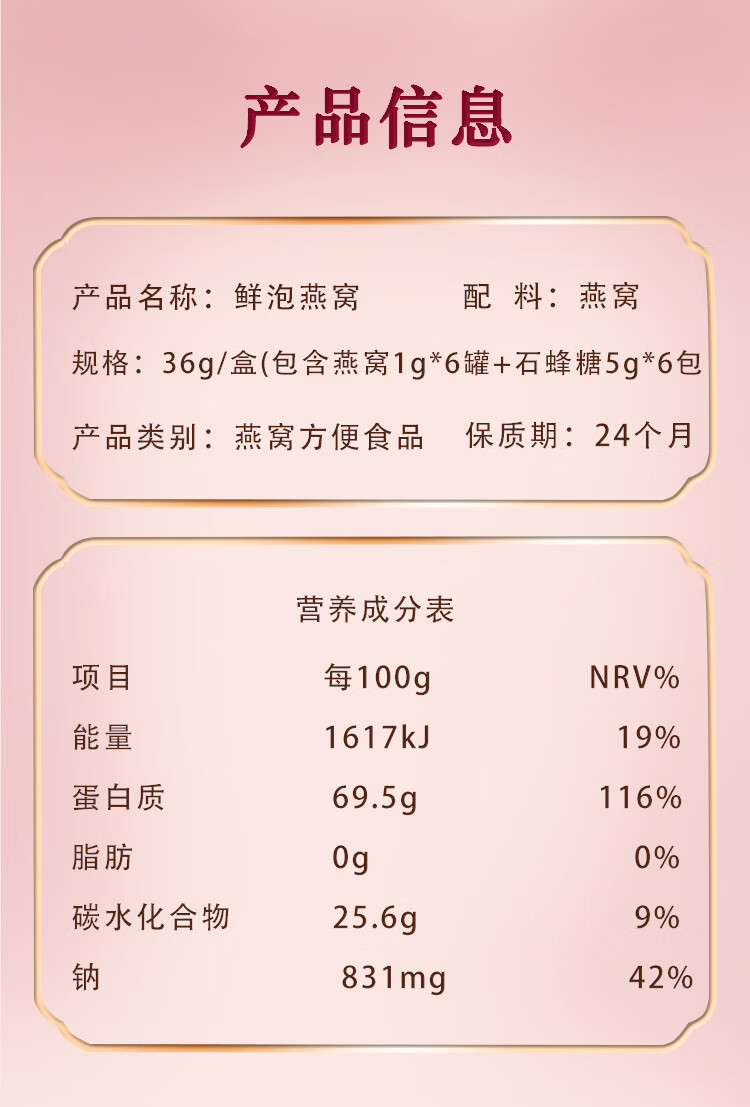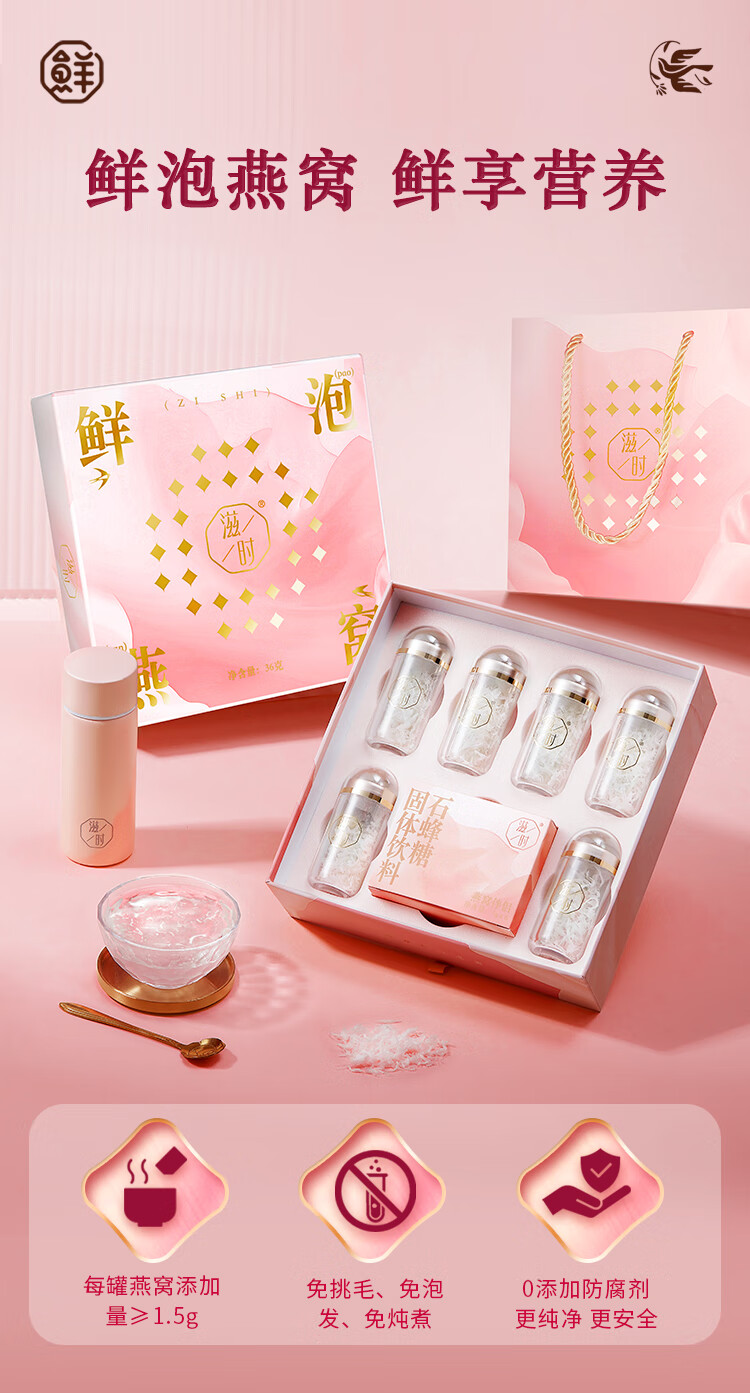 滋时滋补进口鲜泡燕窝礼盒 送礼营养燕窝礼盒 冲泡营养品 鲜泡燕窝 36g*1盒 *礼袋1*保温杯1个 (包燕窝1g*6罐+石蜂糖5g*6)