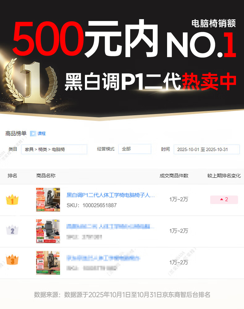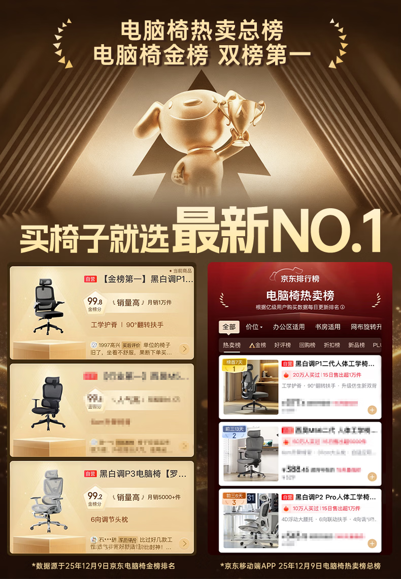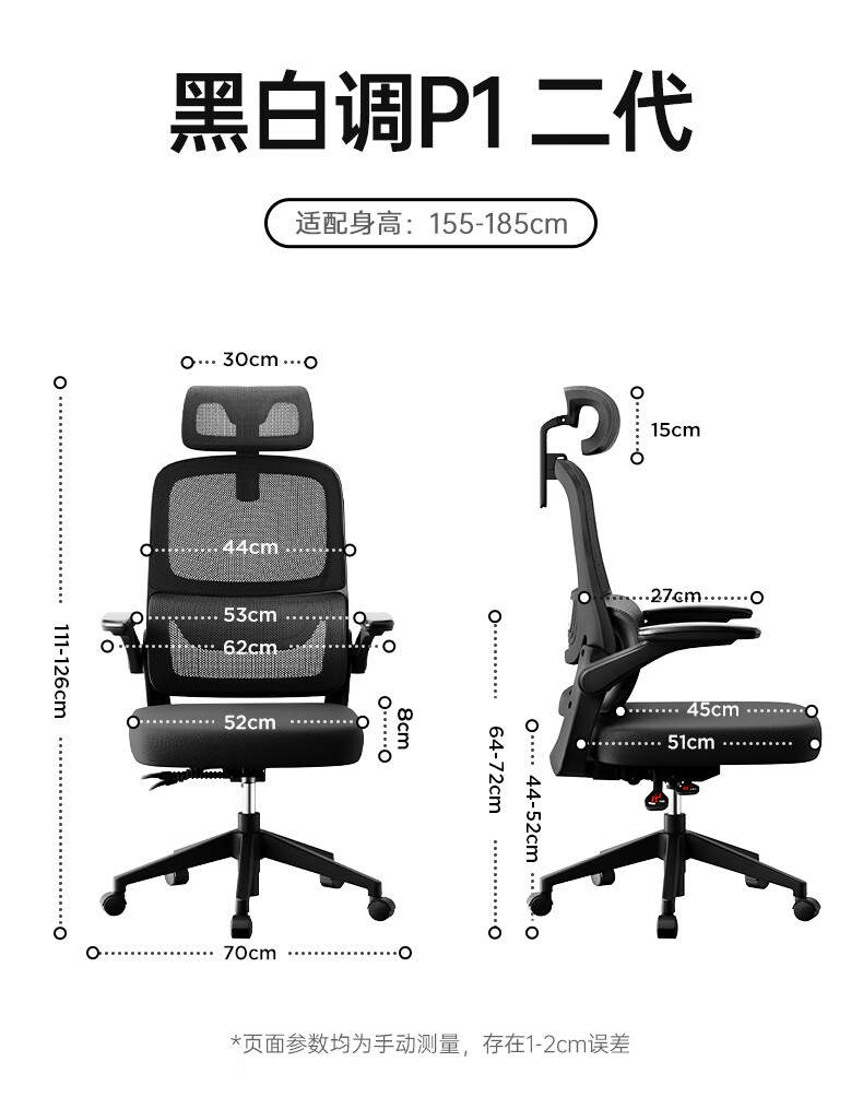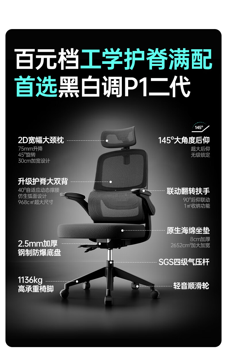 黑白调P1二代 人体工学椅电脑电竞椅子人工力学座椅办公椅 双背联动扶手