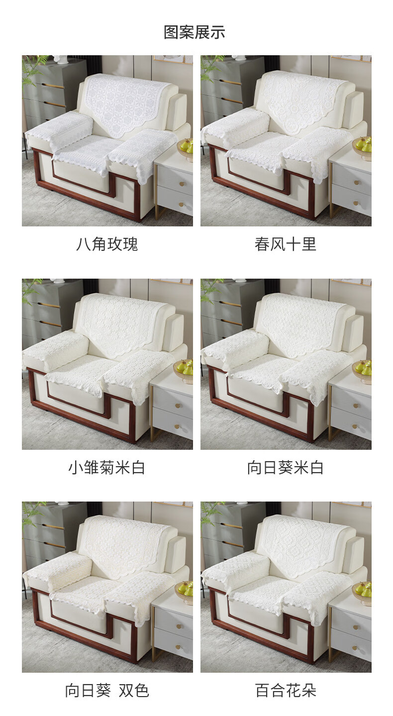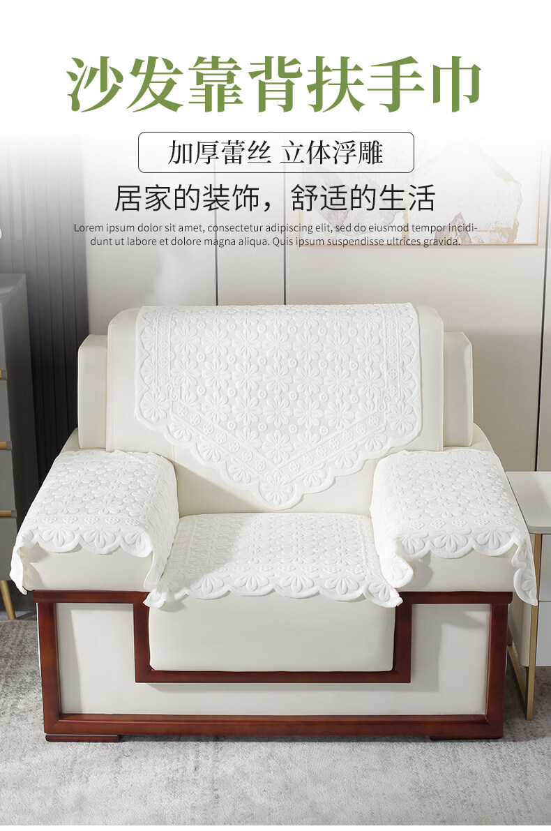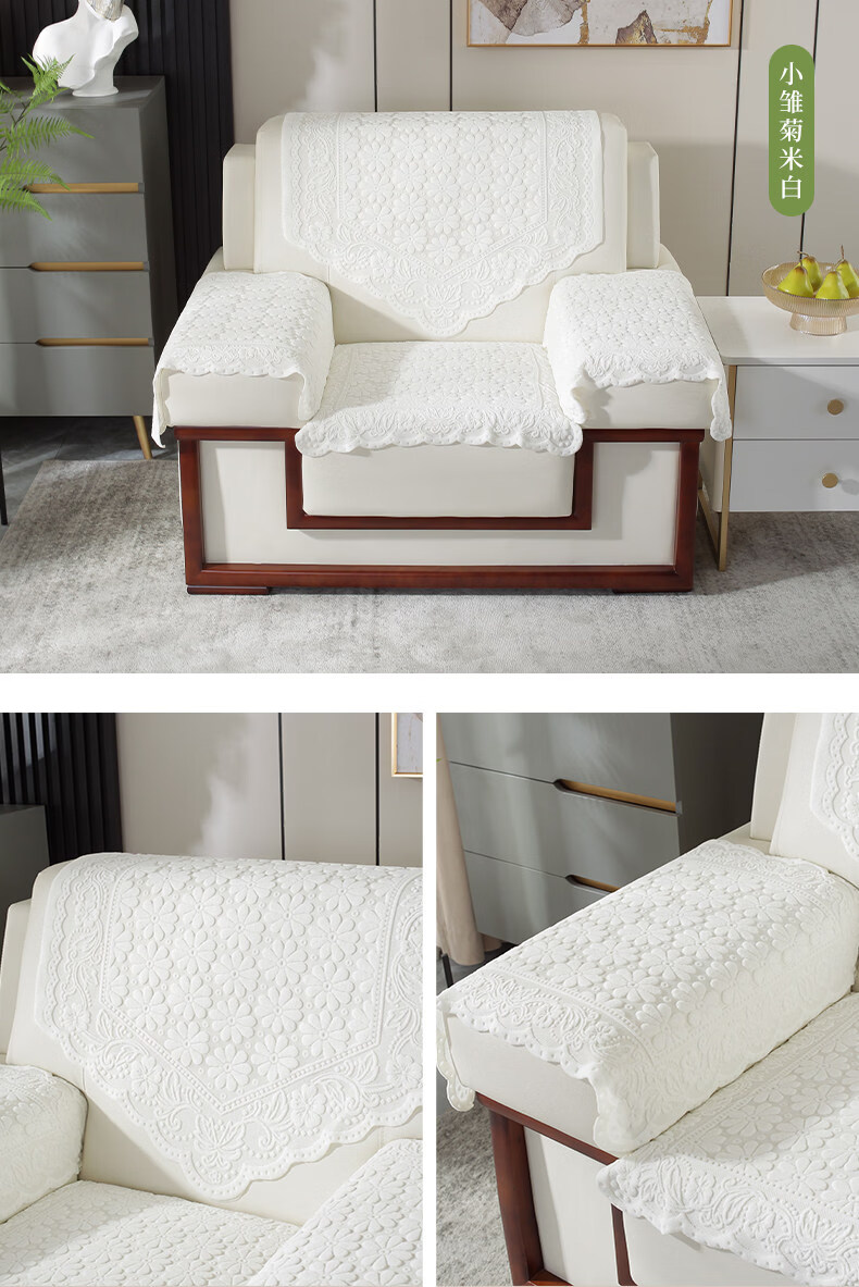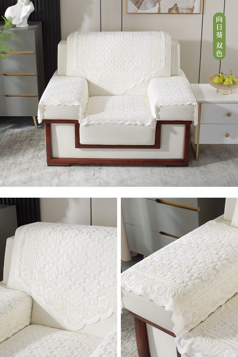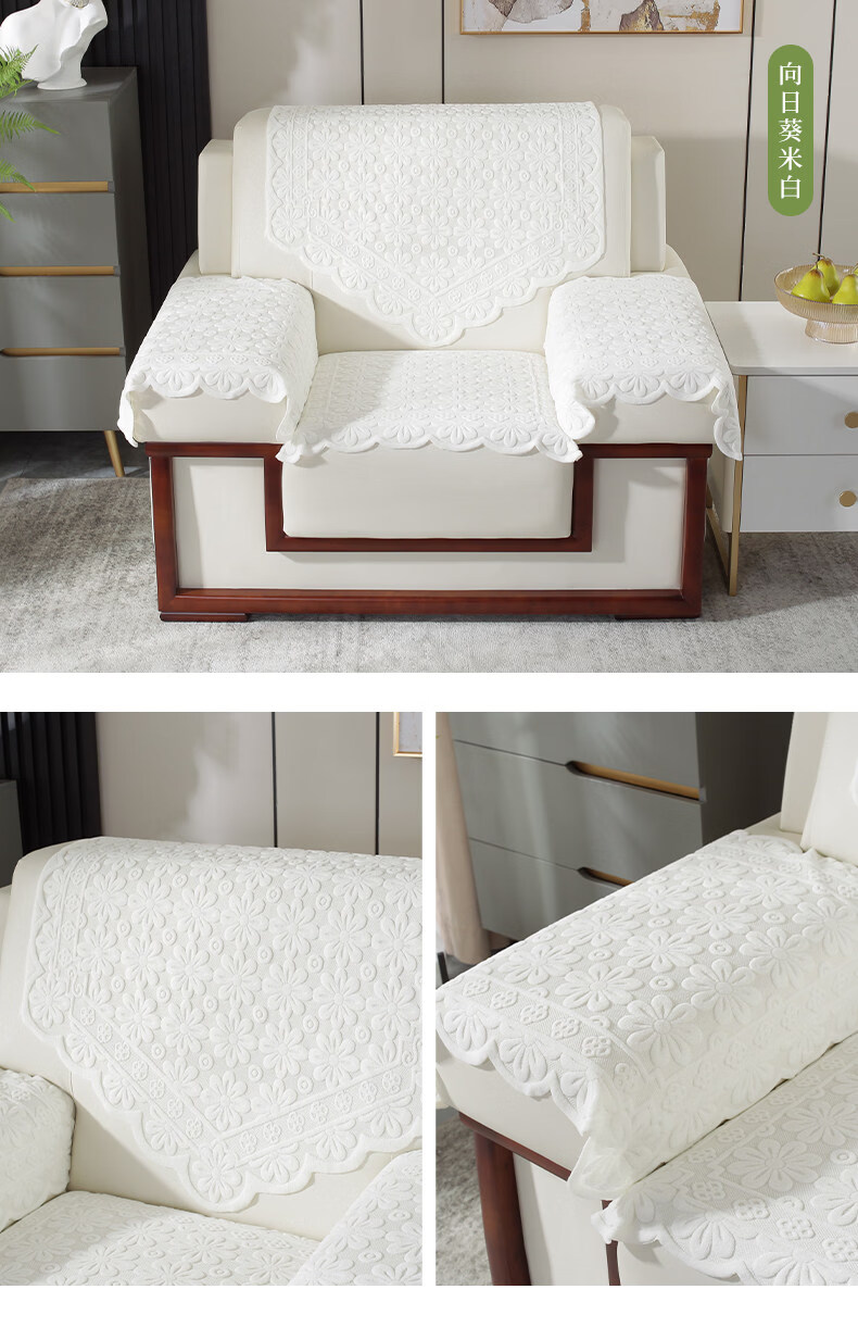 正圣贵宾室单人沙发巾办公室蕾丝加厚防滑靠背三角扶手巾酒店会议垫 向日葵米白 60cm*60cm 方巾