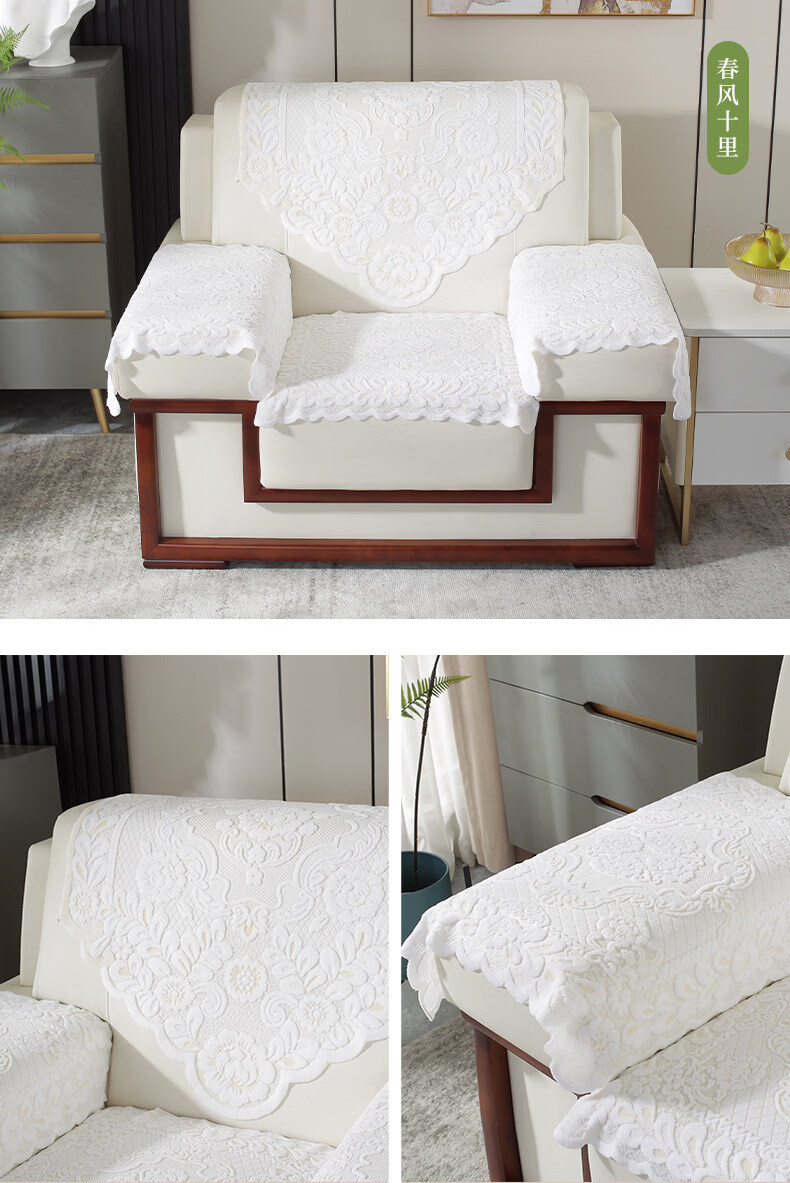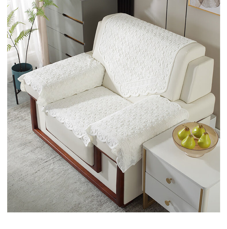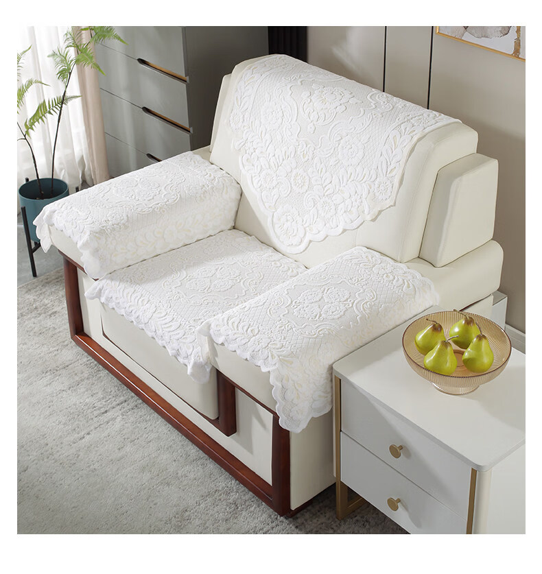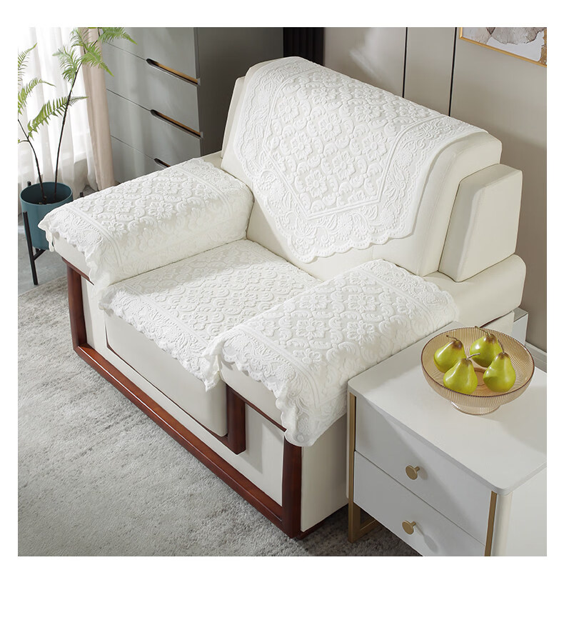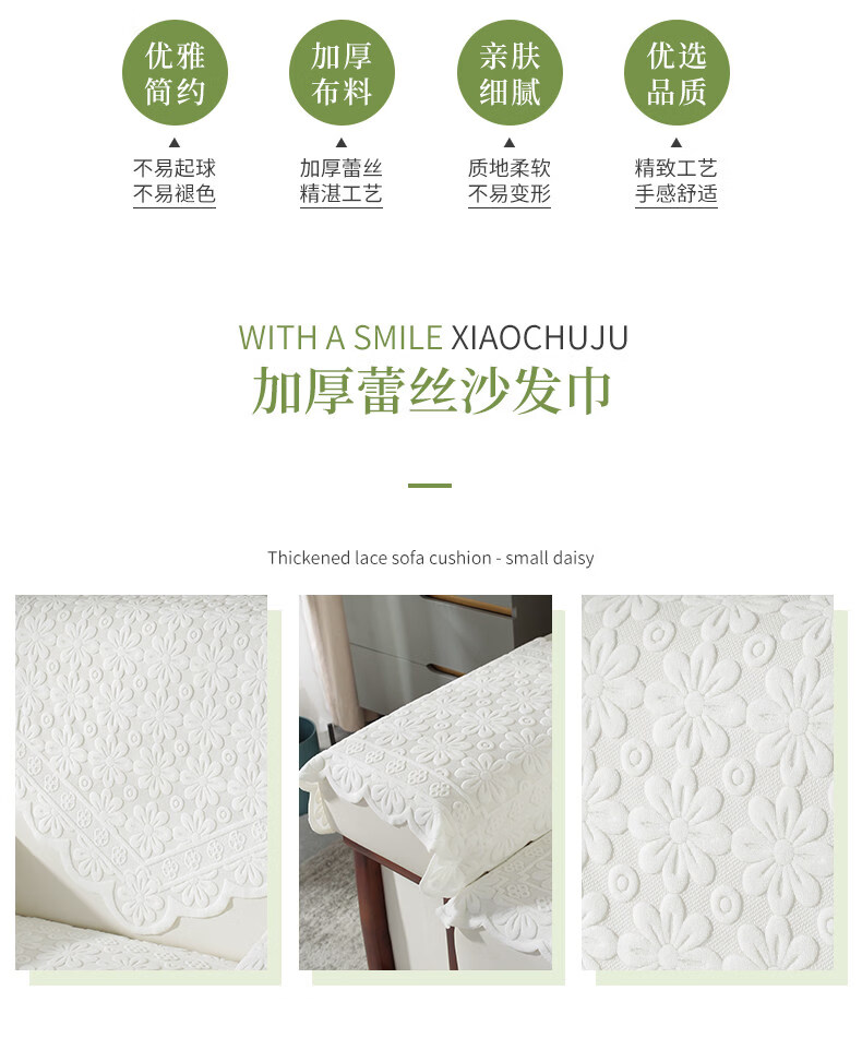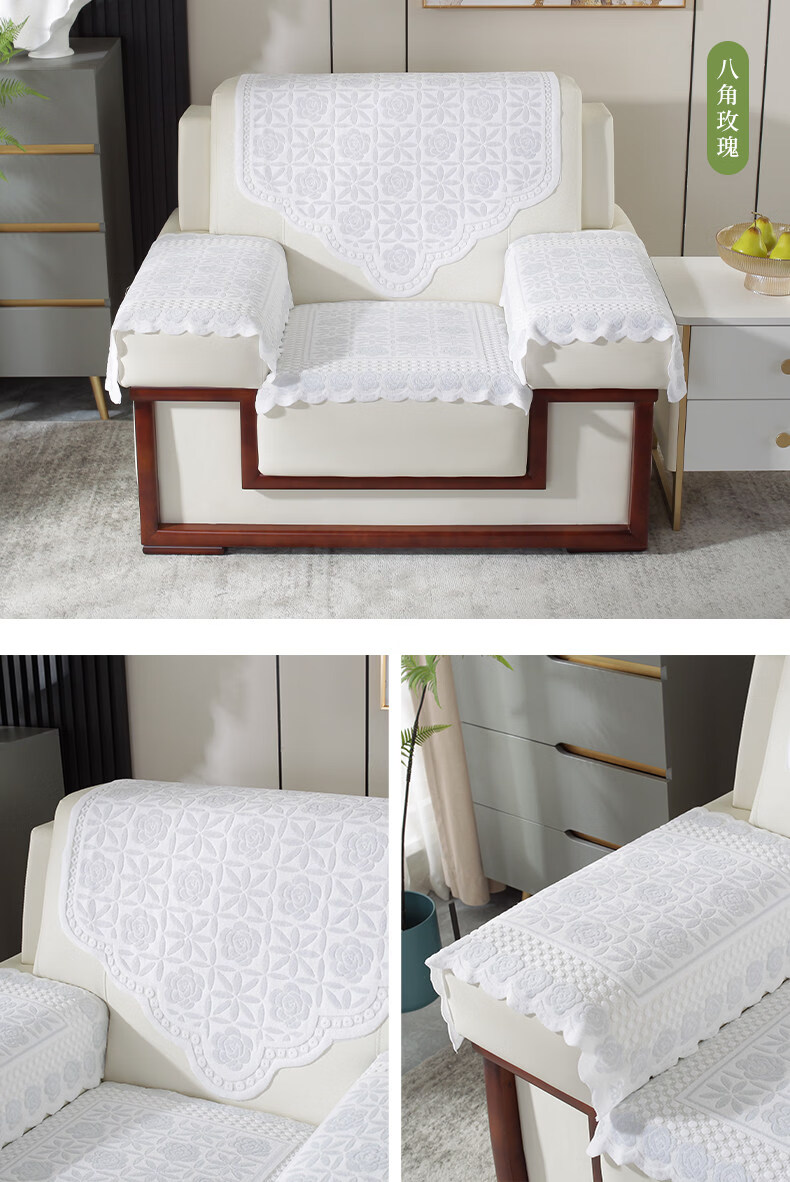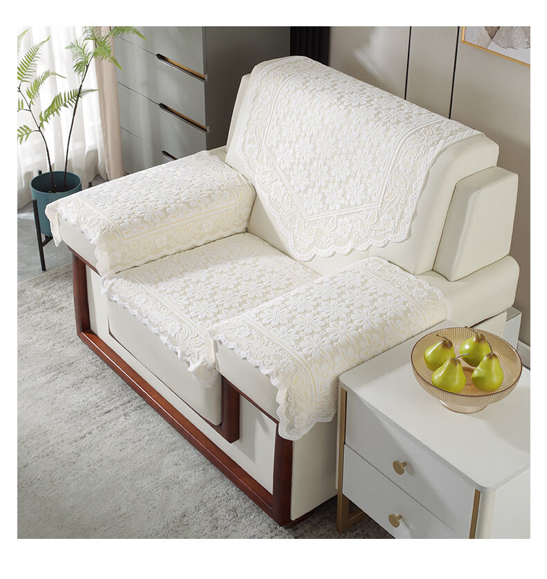 正圣贵宾室单人沙发巾办公室蕾丝加厚防滑靠背三角扶手巾酒店会议垫 向日葵米白 60cm*60cm 方巾