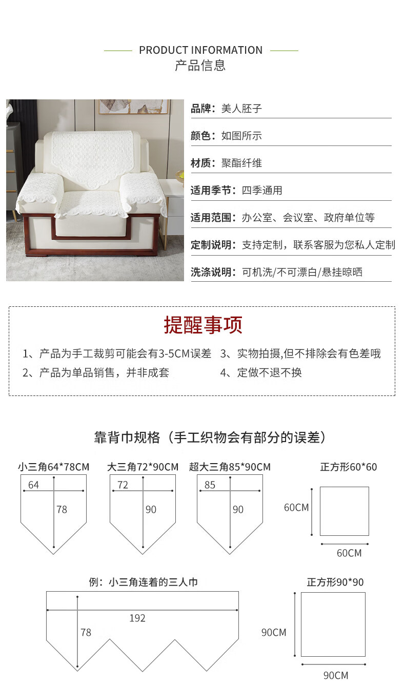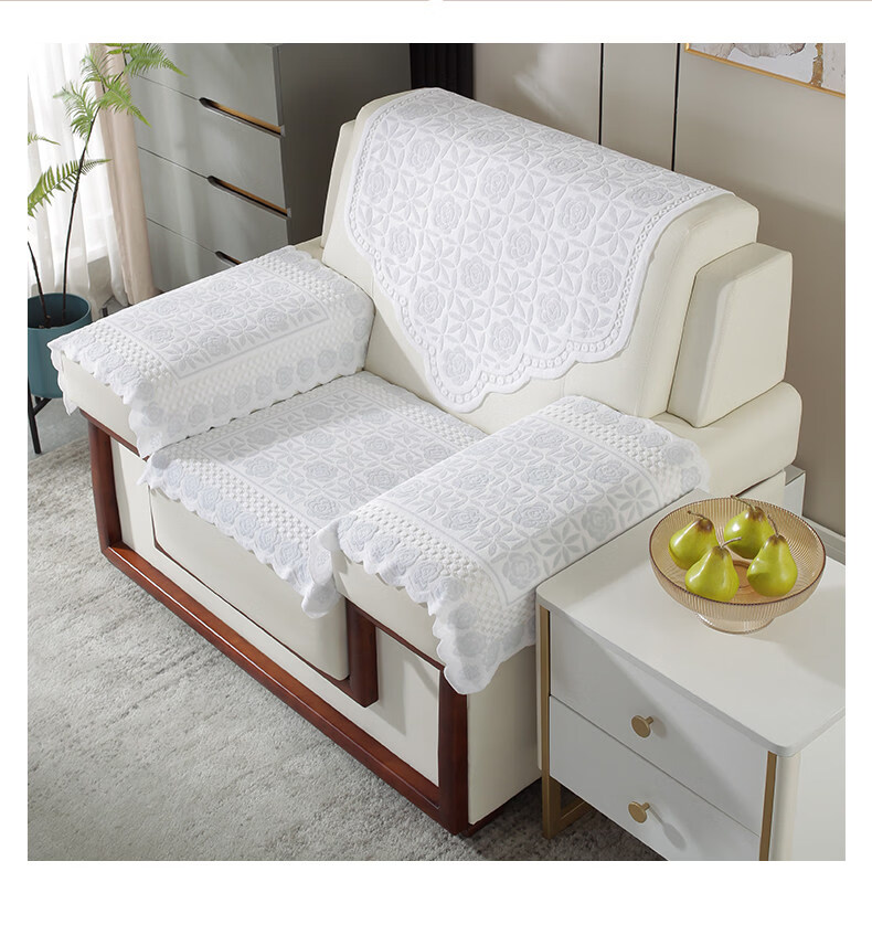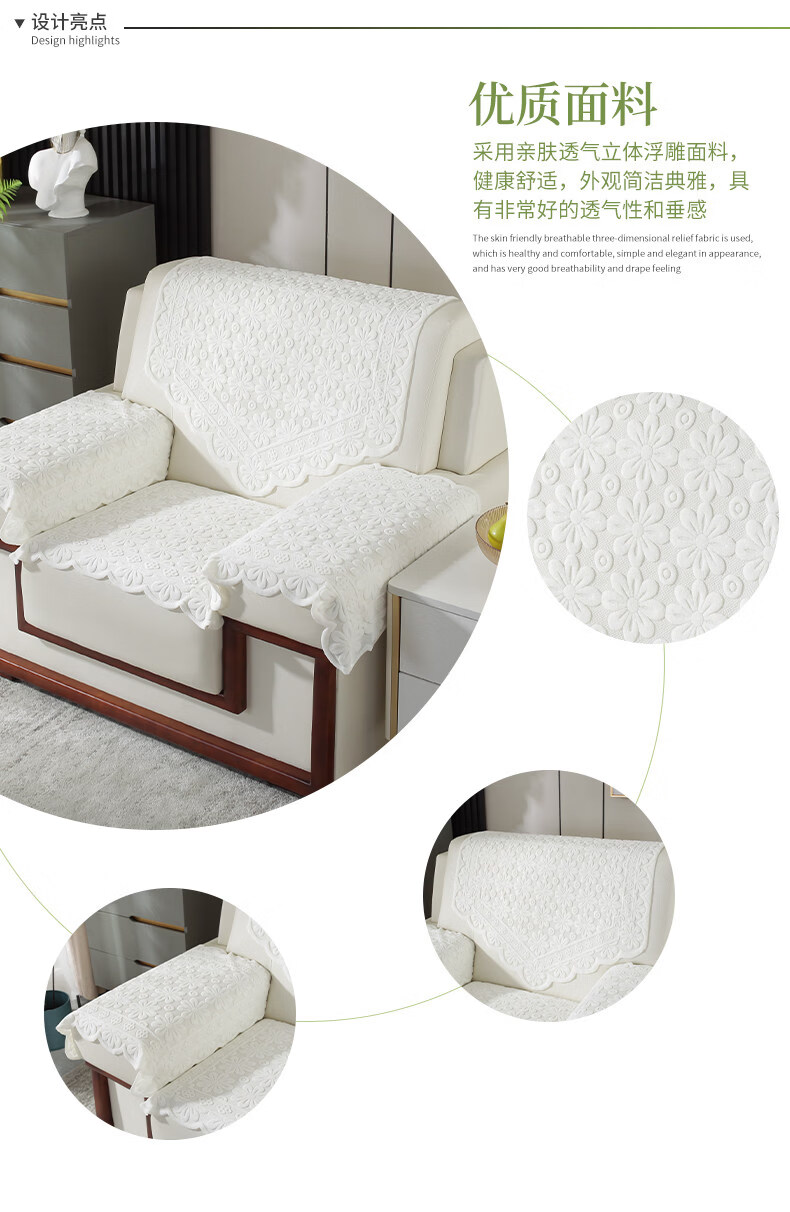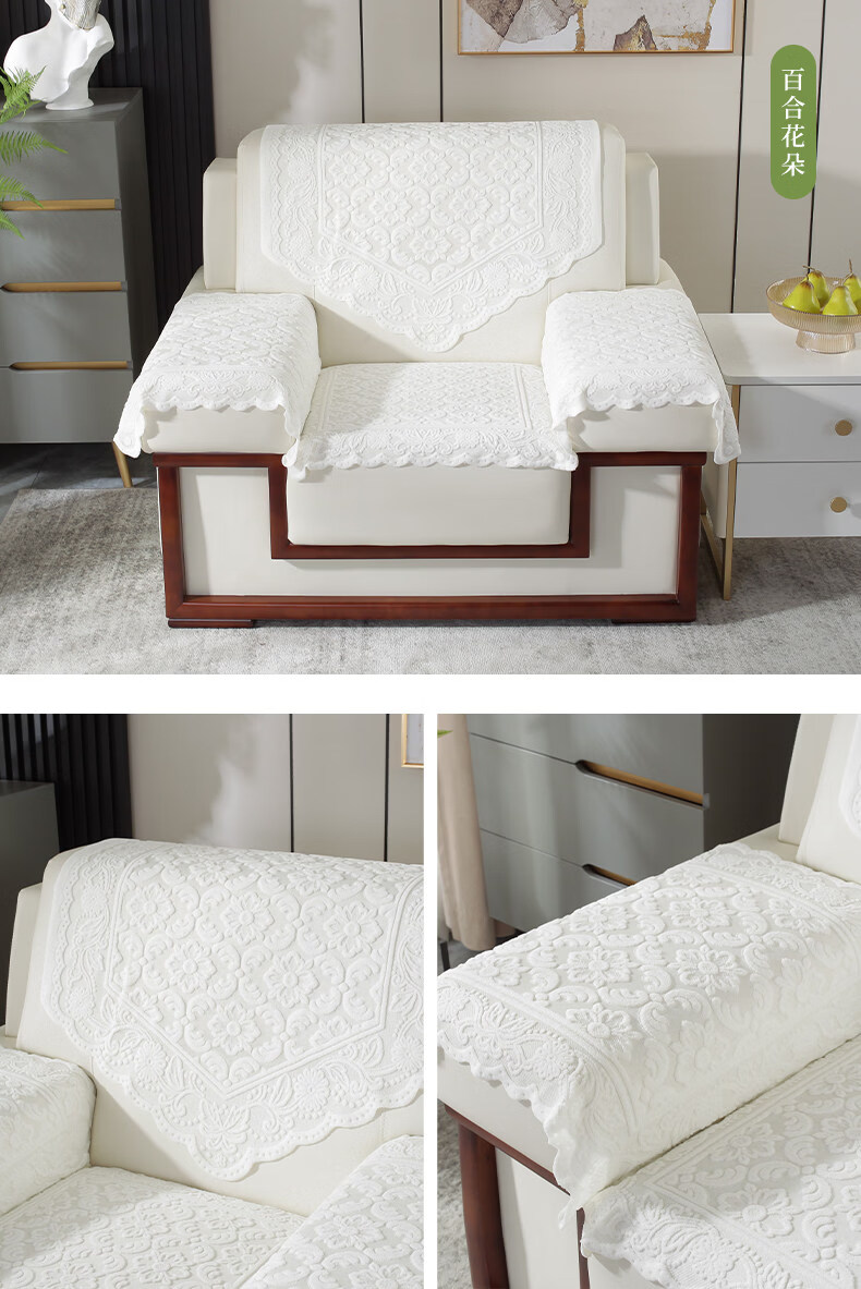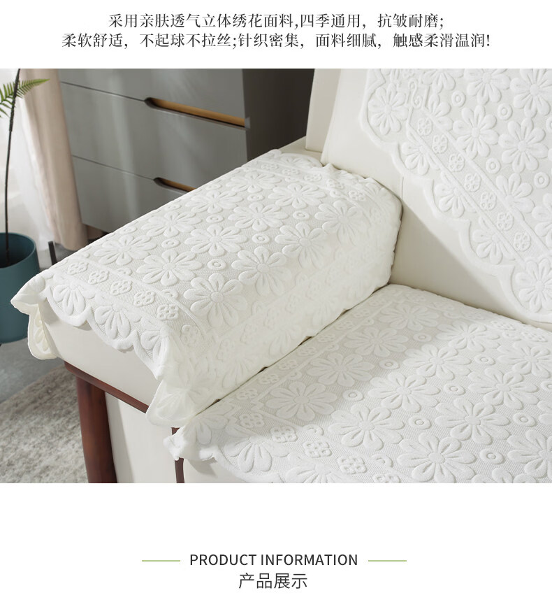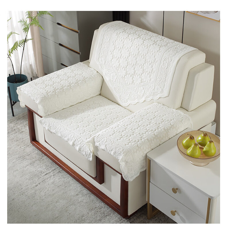 正圣贵宾室单人沙发巾办公室蕾丝加厚防滑靠背三角扶手巾酒店会议垫 向日葵米白 60cm*60cm 方巾
