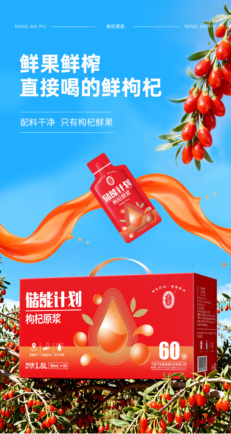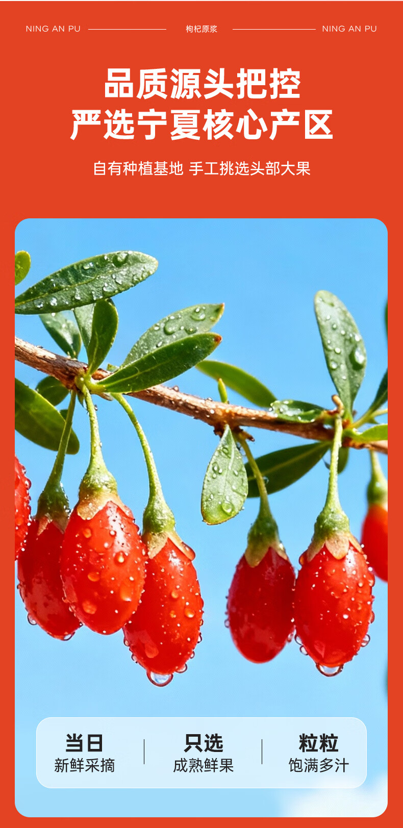 宁安堡枸杞原浆礼盒 宁夏枸杞汁锁鲜独立袋装 礼品送长辈 红黑枸杞原浆 2700ml*1箱 【配料干净】