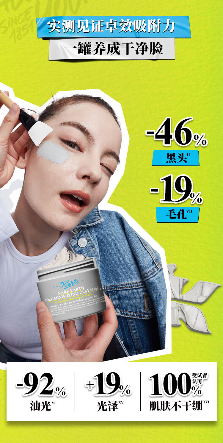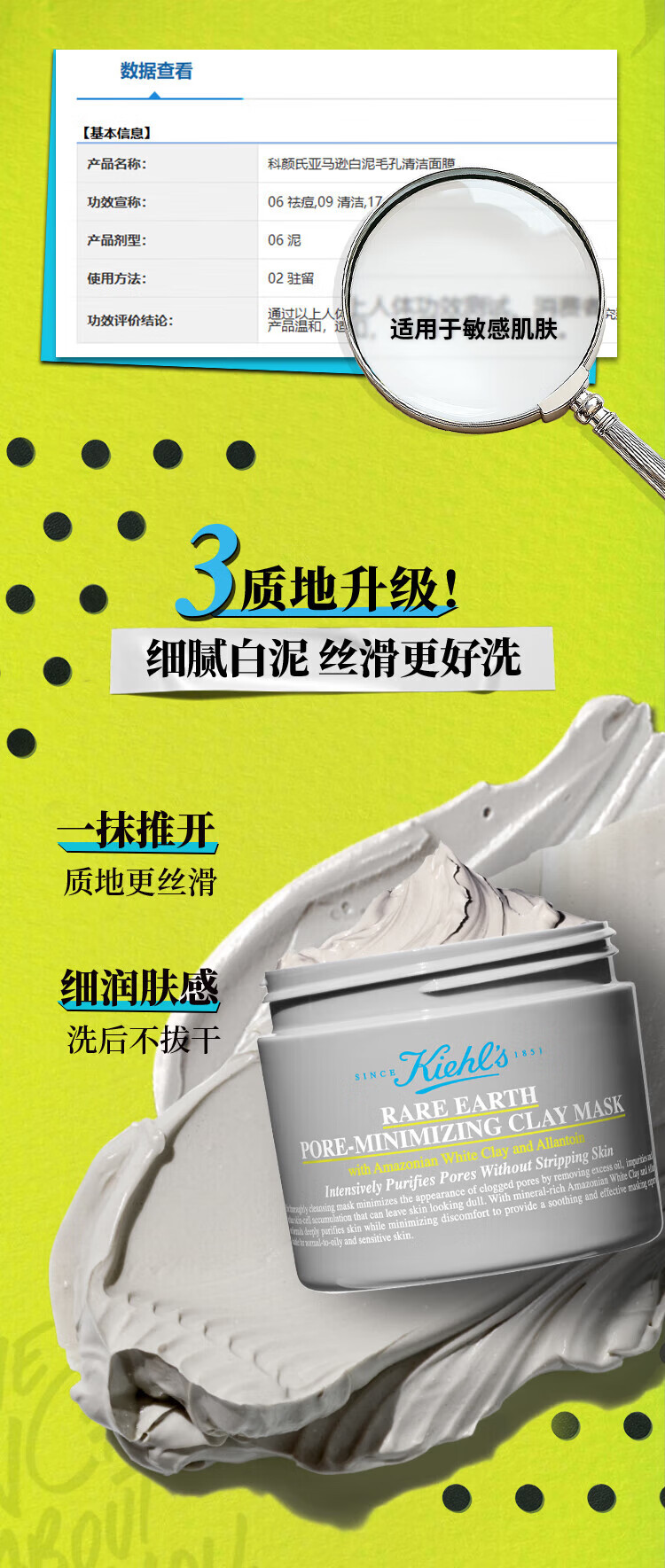 科颜氏(Kiehl's)白泥面膜125ml深层清洁毛孔去黑头收缩控油(25新款)生日礼物
