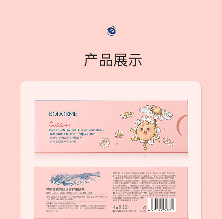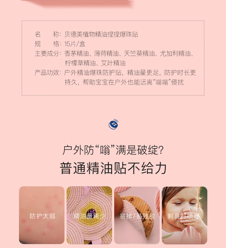 贝德美儿童植物精油爆珠贴15片(男女户外随身防护驱叮防翁卡通色彩贴)