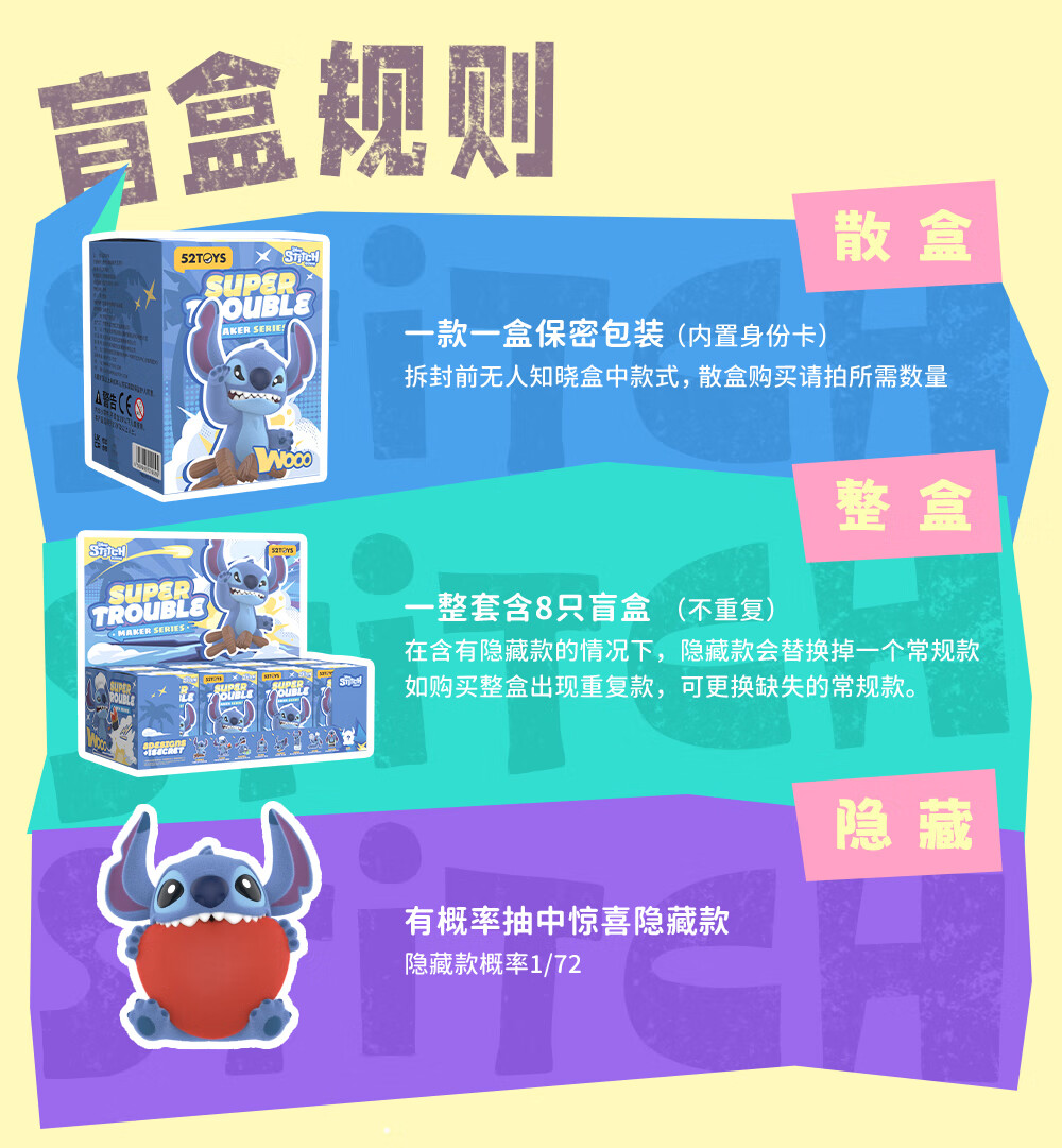 52TOYS迪士尼史迪奇超级破坏王系列盲盒潮玩手办玩具周边礼物摆件 端盒(内含8只 不重复 抽隐藏)