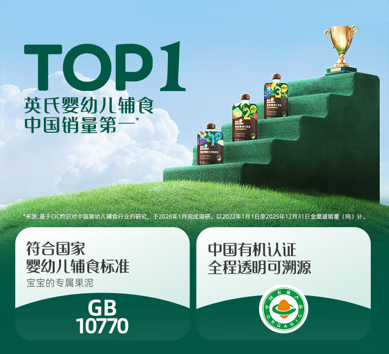 英氏(Engnice)婴幼儿有机果泥 宝宝儿童多口味辅食泥 外出出游便携 1+2阶70g4袋+ 100g*3袋
