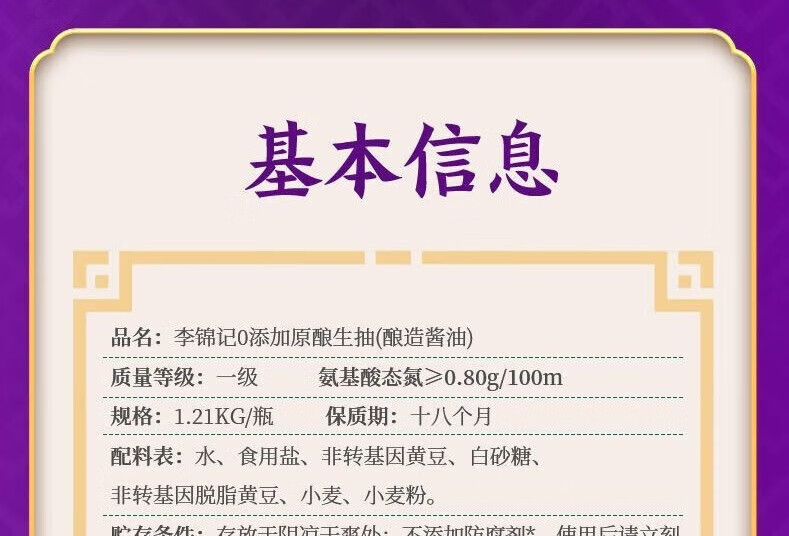 李锦记 0添加原酿生抽1.21kg【0添加 一级】安心健康 头道精华 酿造酱油