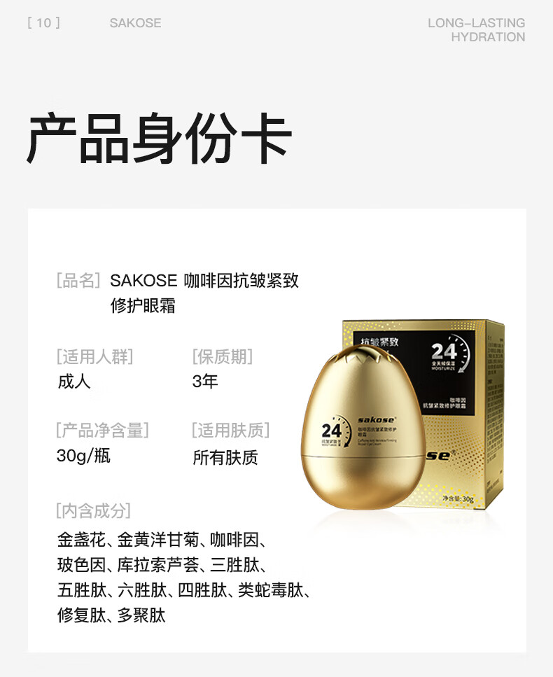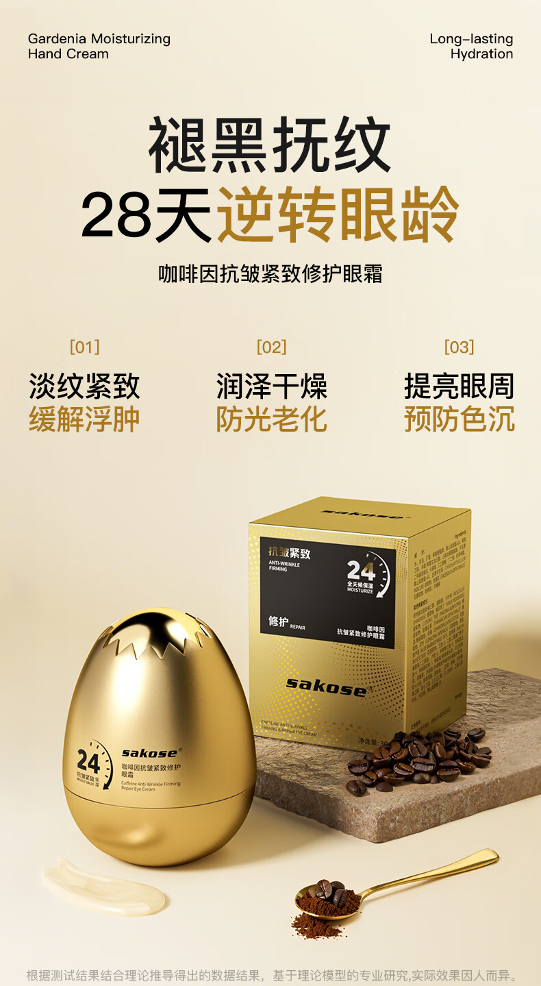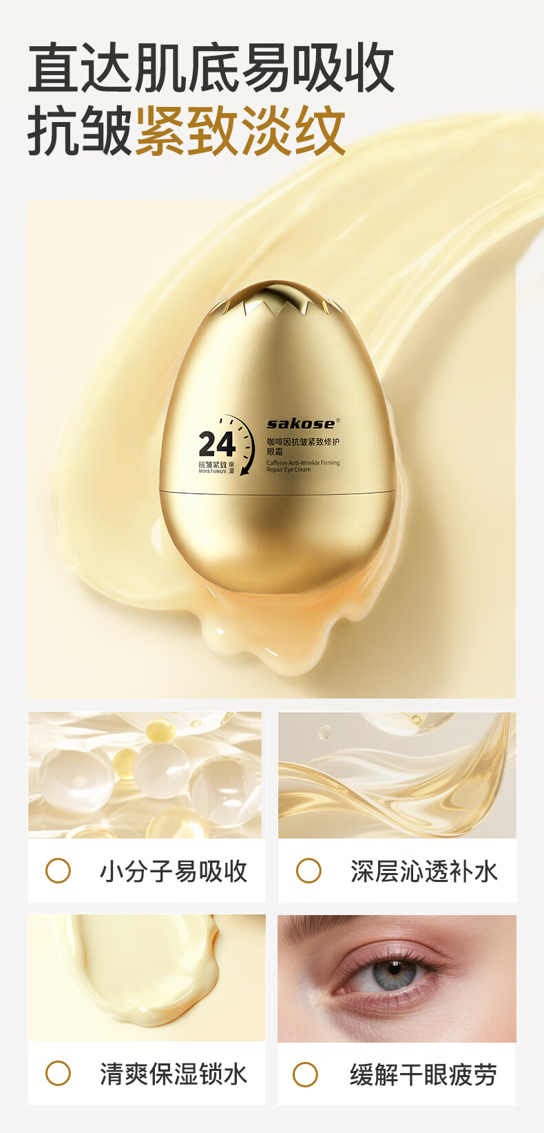 sakose1%咖啡因抗皱紧致修护眼霜30g淡化眼袋细纹黑眼圈眼部精华