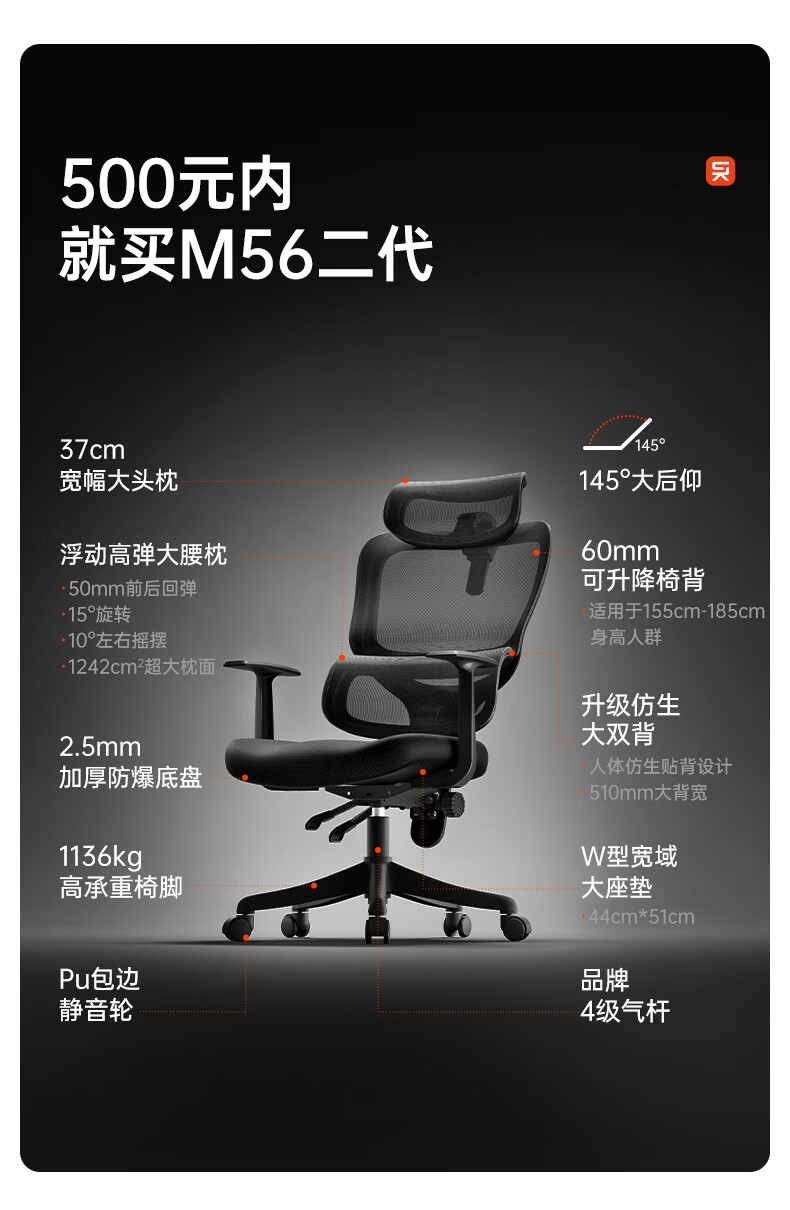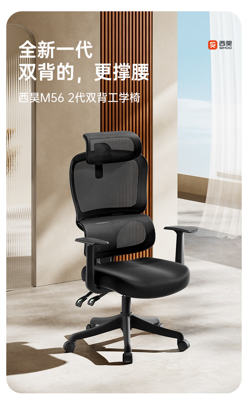 西昊M56二代 人体工学椅办公椅电脑电竞椅子人工力学座椅学习升降椅背