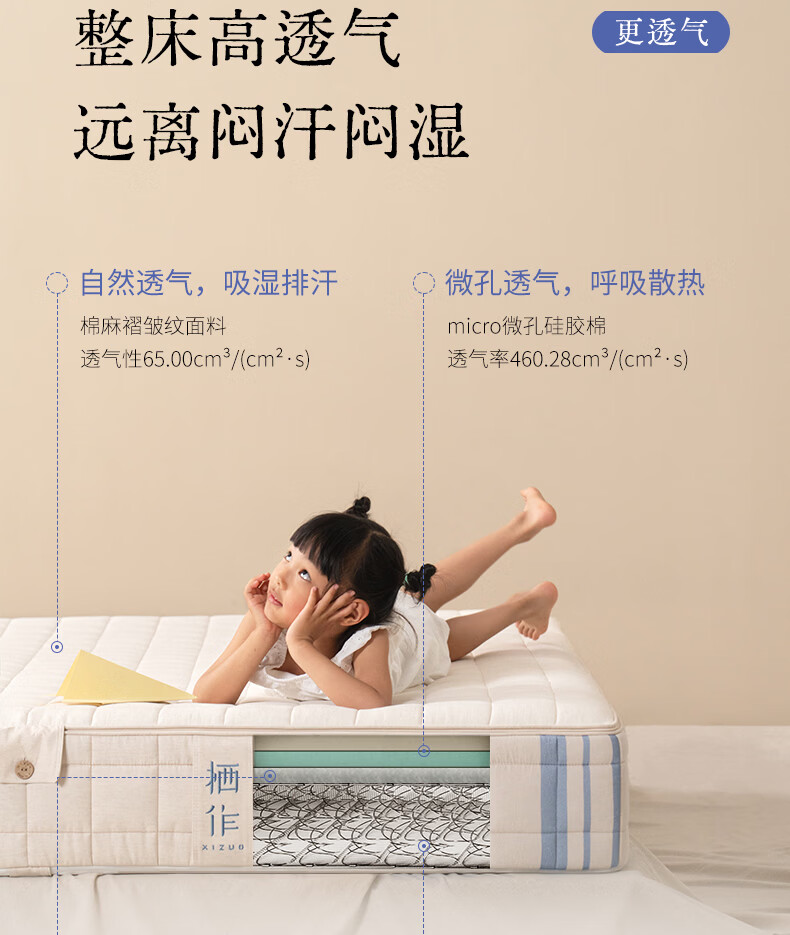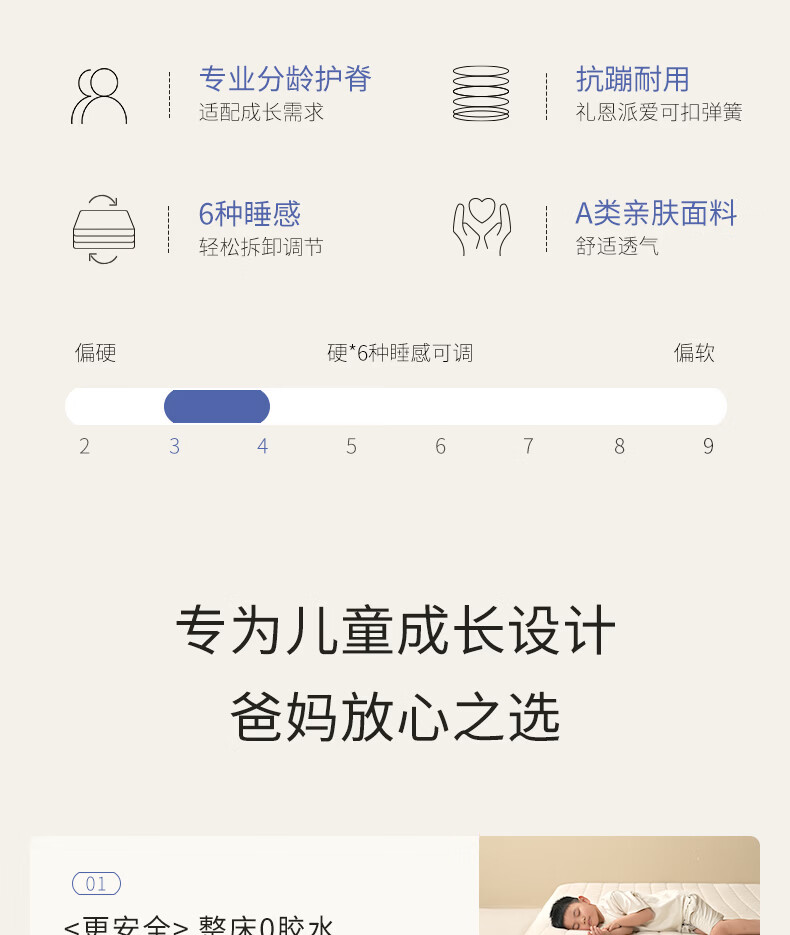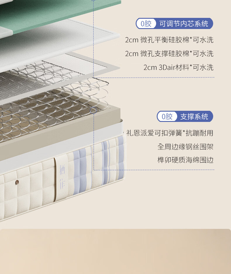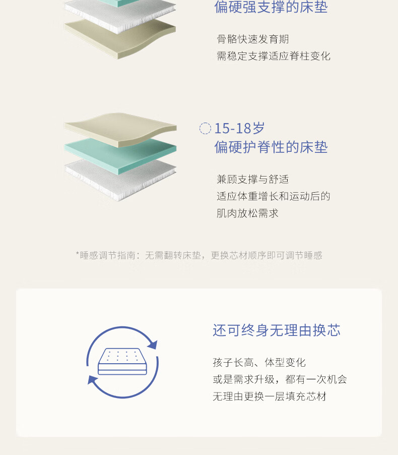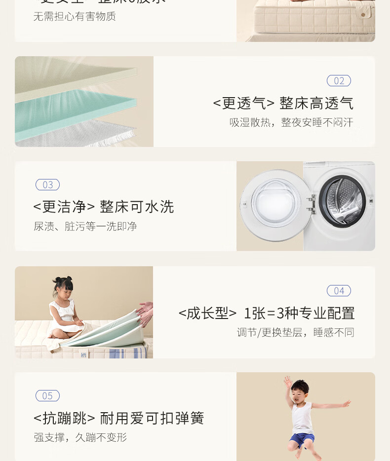 栖作【坚果·蹦蹦II代】可拆洗弹簧床垫儿童护脊1.8×2米偏硬可定制