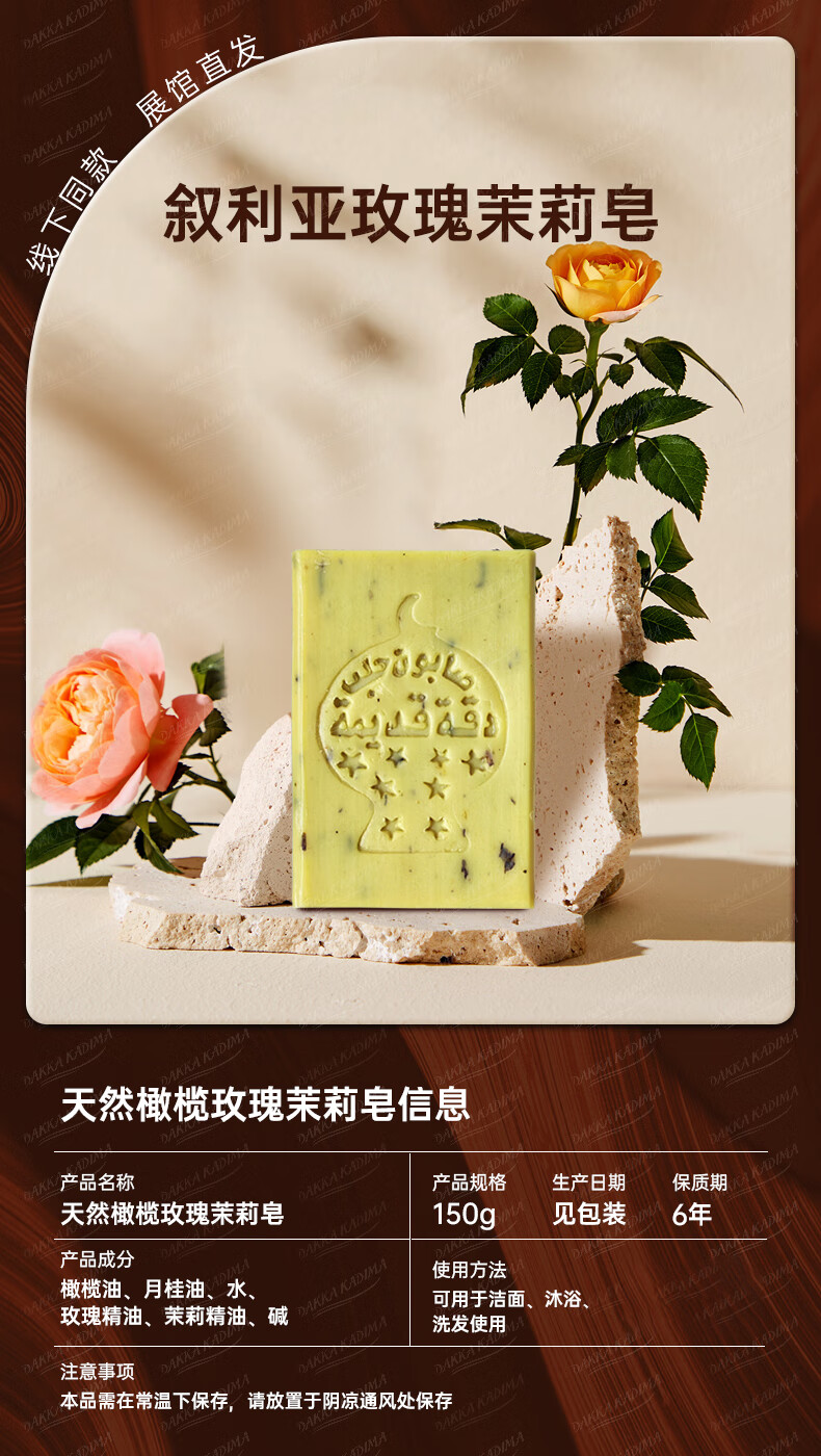 DAKKA KADIMA叙利亚国家馆 进口大马士革天然橄榄玫瑰茉莉皂洗脸澡 手工精油皂 150g/块 150g/块