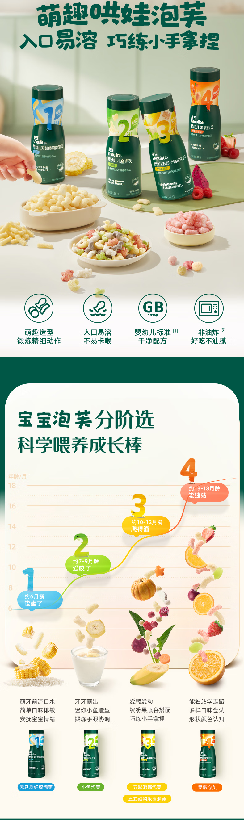 英氏泡芙6个月以上婴儿宝宝零食辅食爆米花1-3岁儿童零食 宝宝辅食+有机油