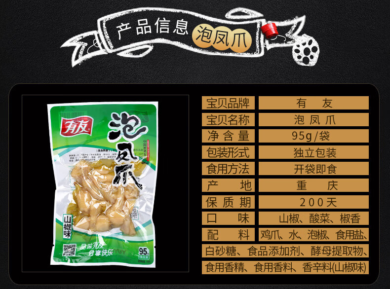 有友 泡椒凤爪 山椒味95g 追剧必备零食 办公室休闲零食小吃