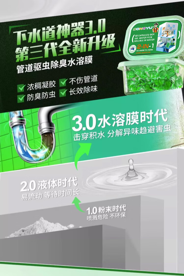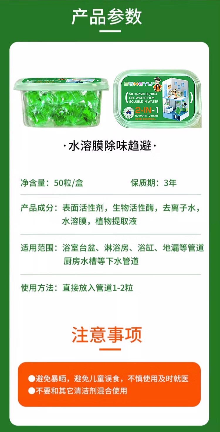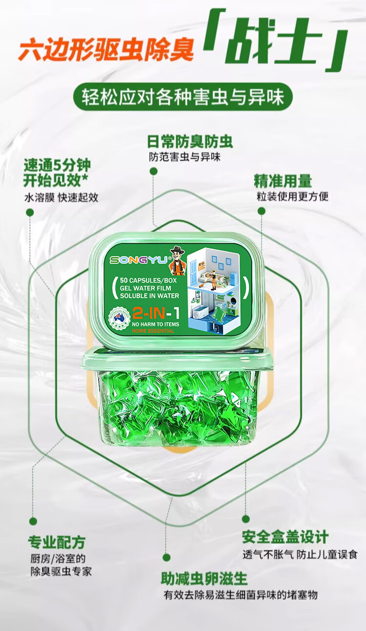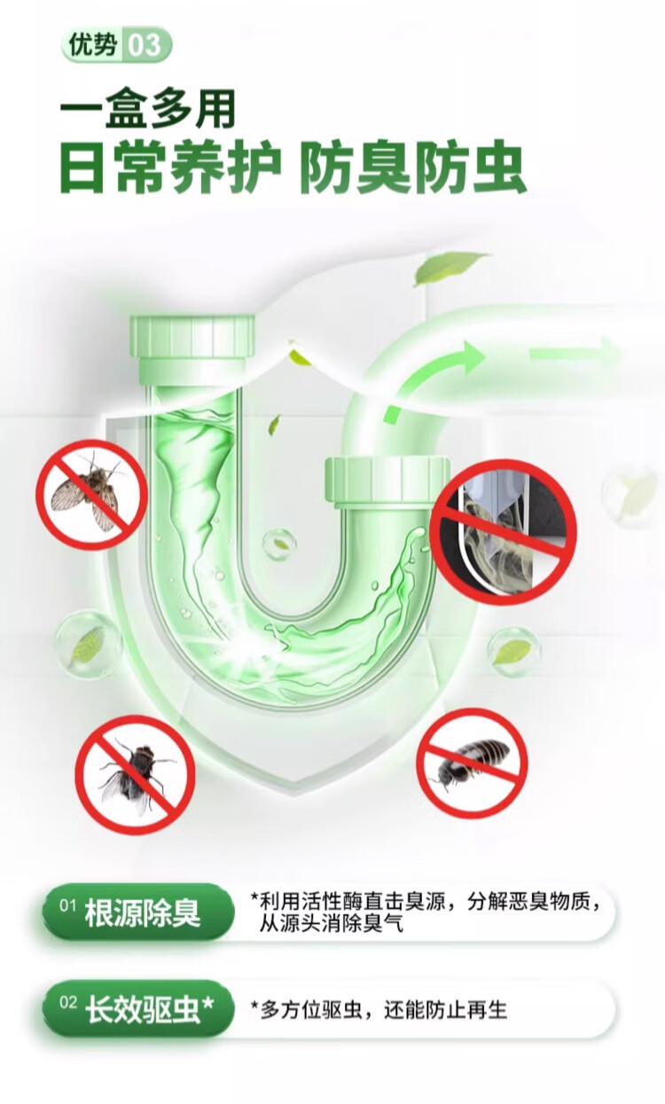 户净下水道去除小飞虫专用蛾蚋杀虫剂下水道杀虫剂家用室内无毒杀爬虫 1盒【50粒】一放无虫