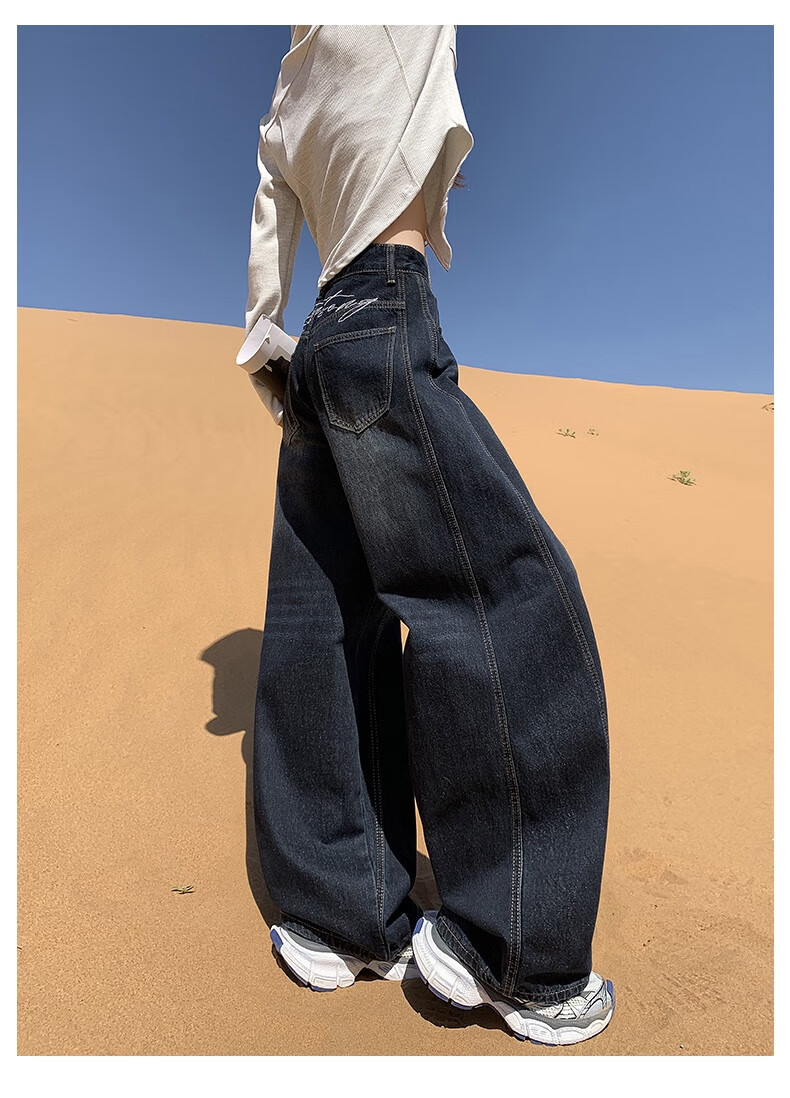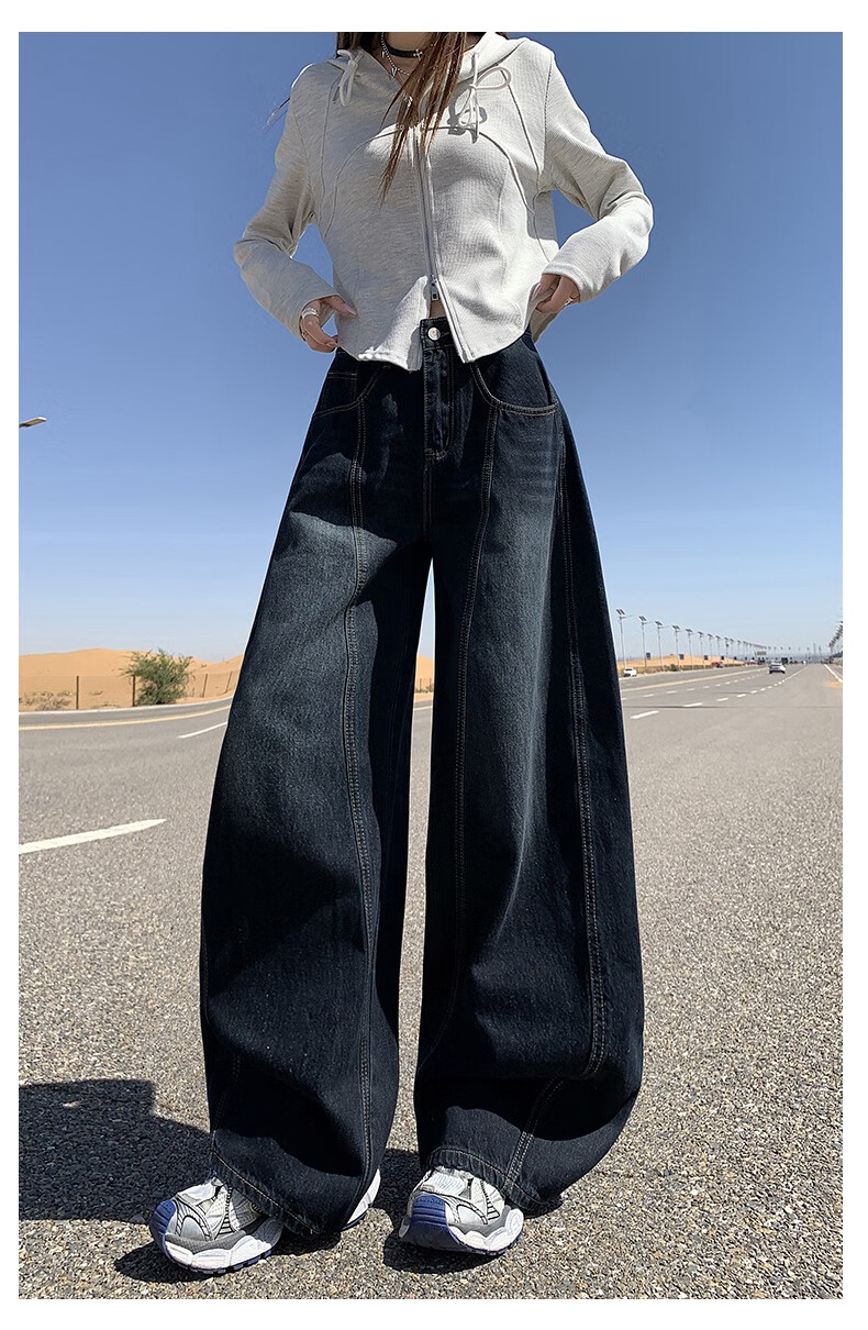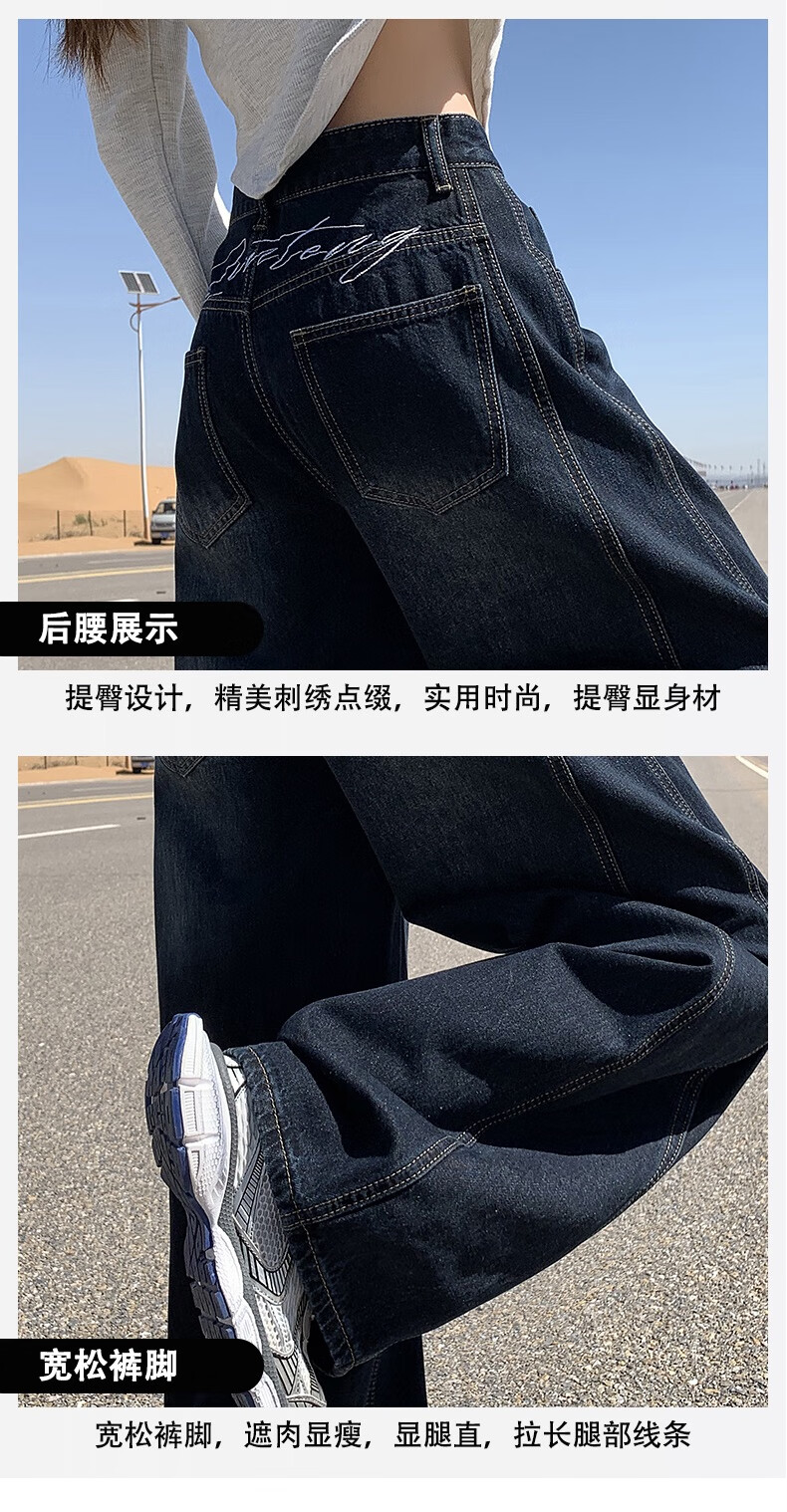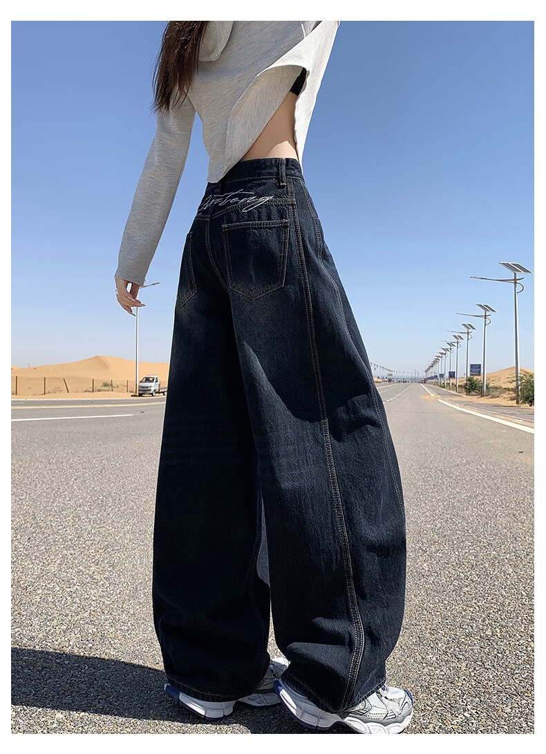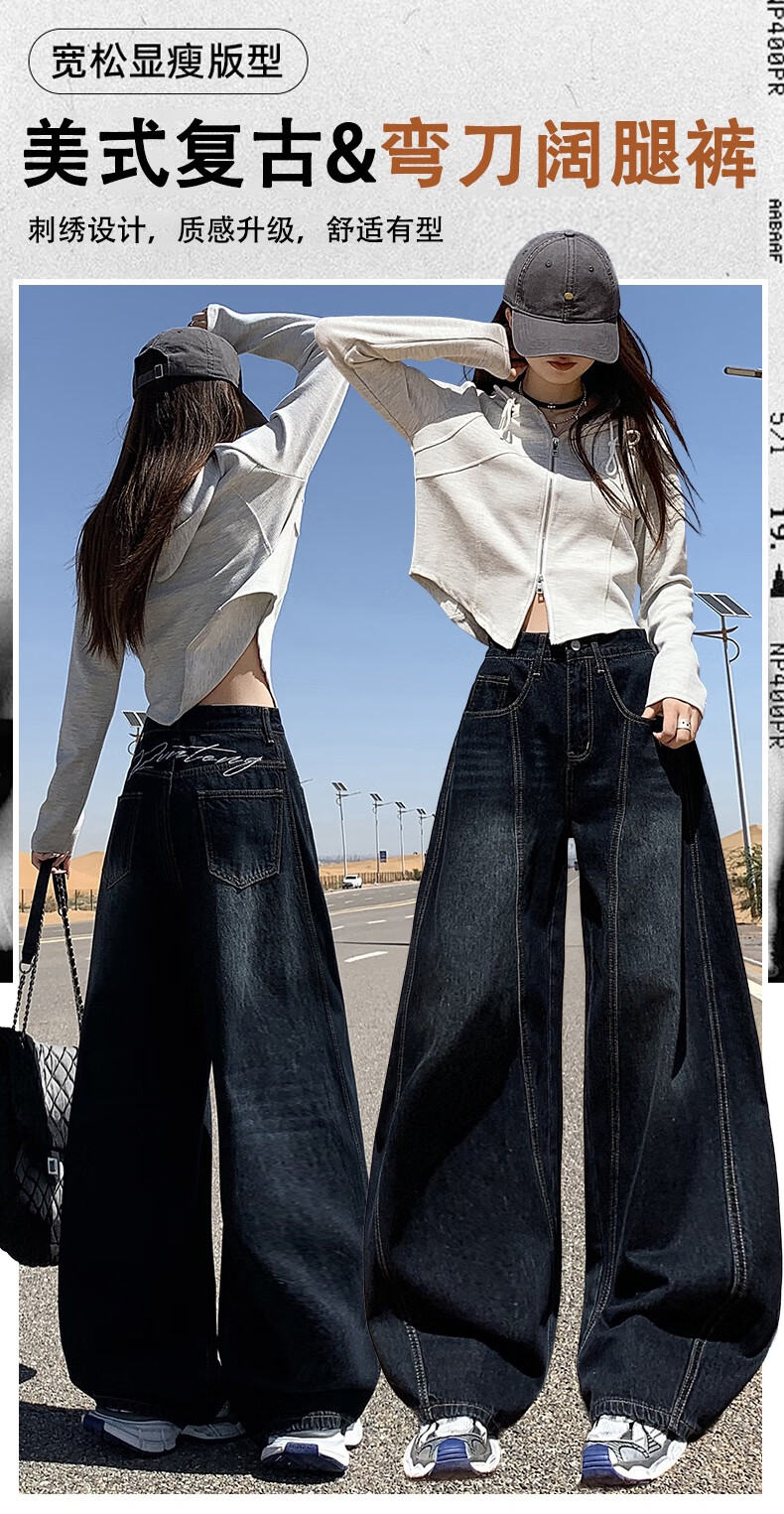 帅西欧美式复古直筒阔腿牛仔裤女2025秋季宽松高腰显瘦休闲长裤 蓝灰色 加长 2XL 【130斤-146斤】
