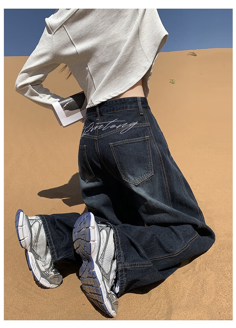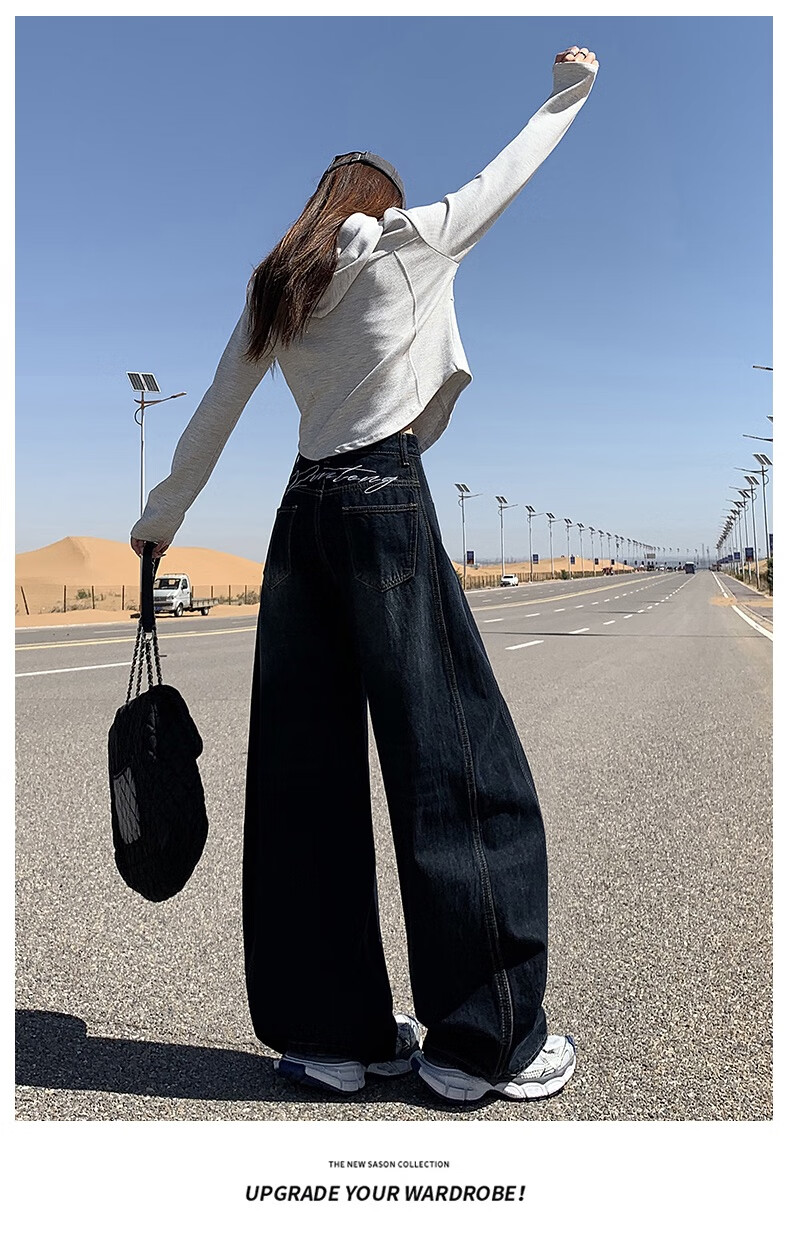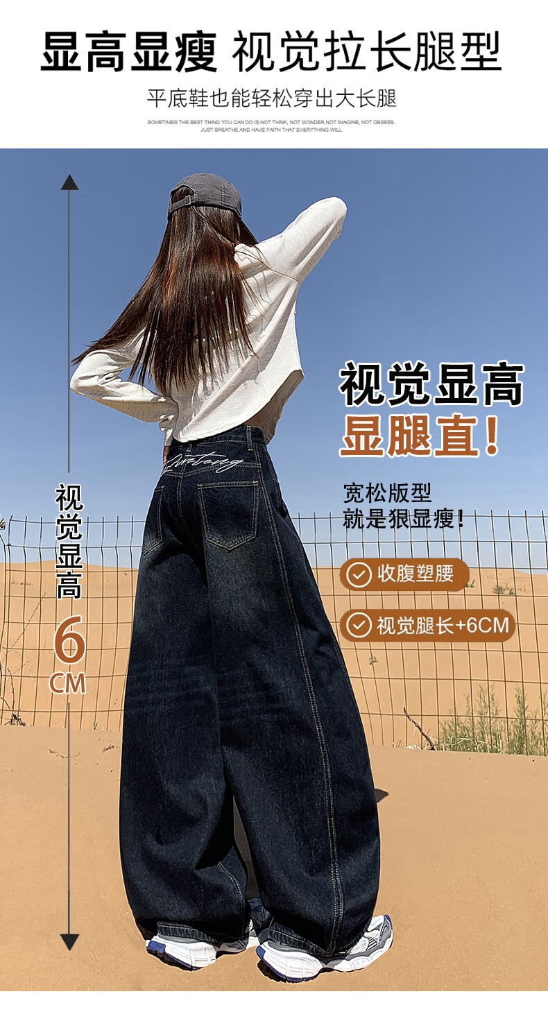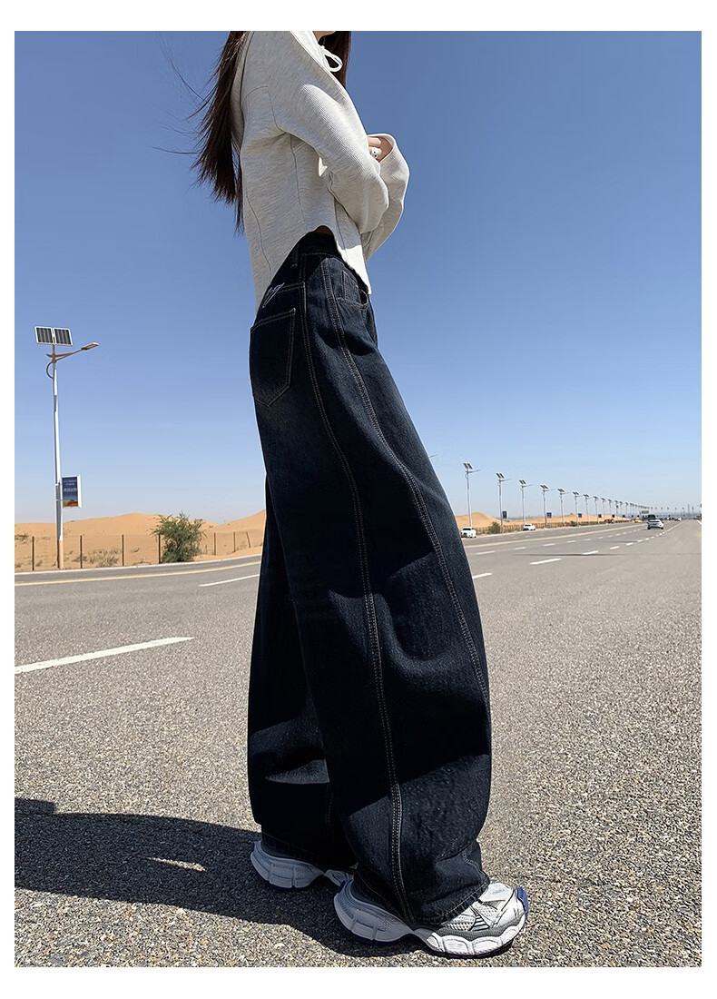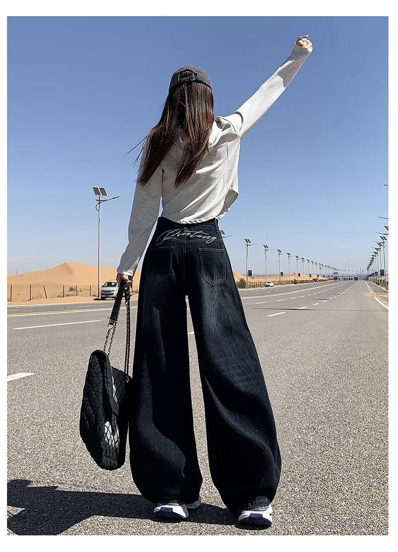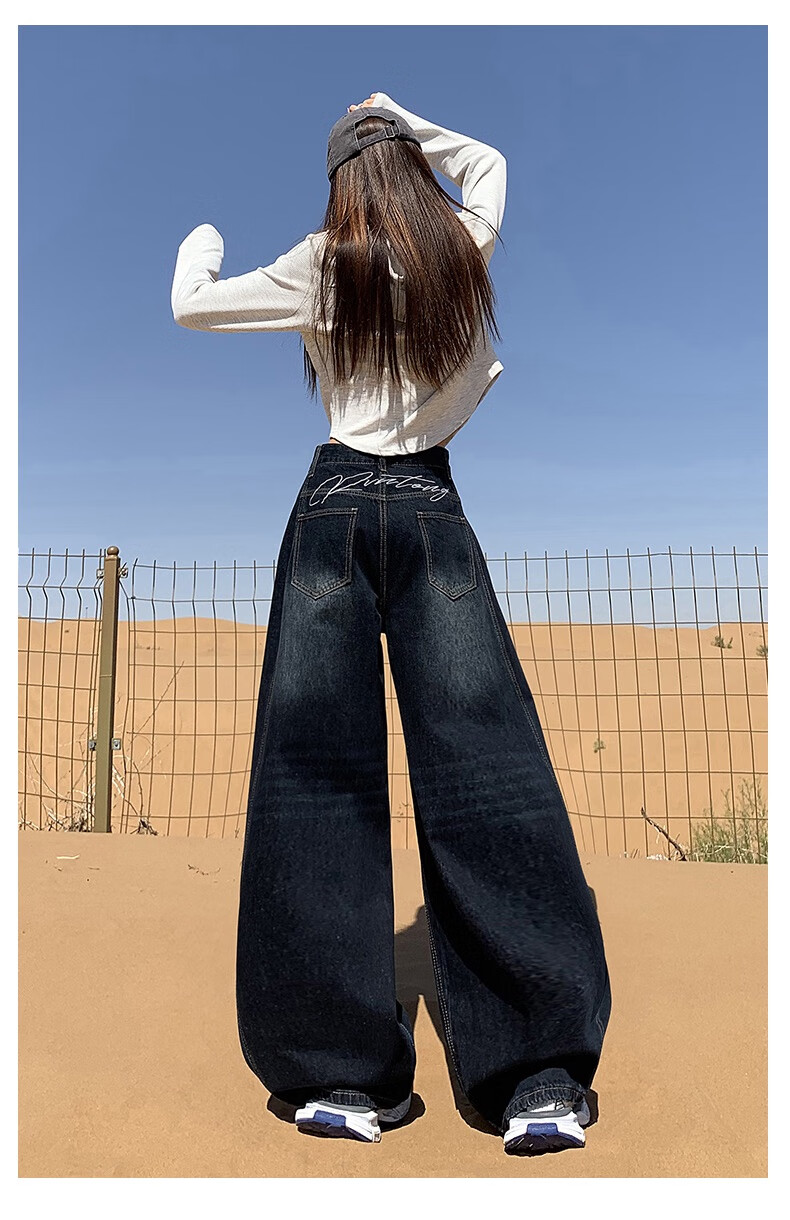 帅西欧美式复古直筒阔腿牛仔裤女2025秋季宽松高腰显瘦休闲长裤 蓝灰色 加长 2XL 【130斤-146斤】