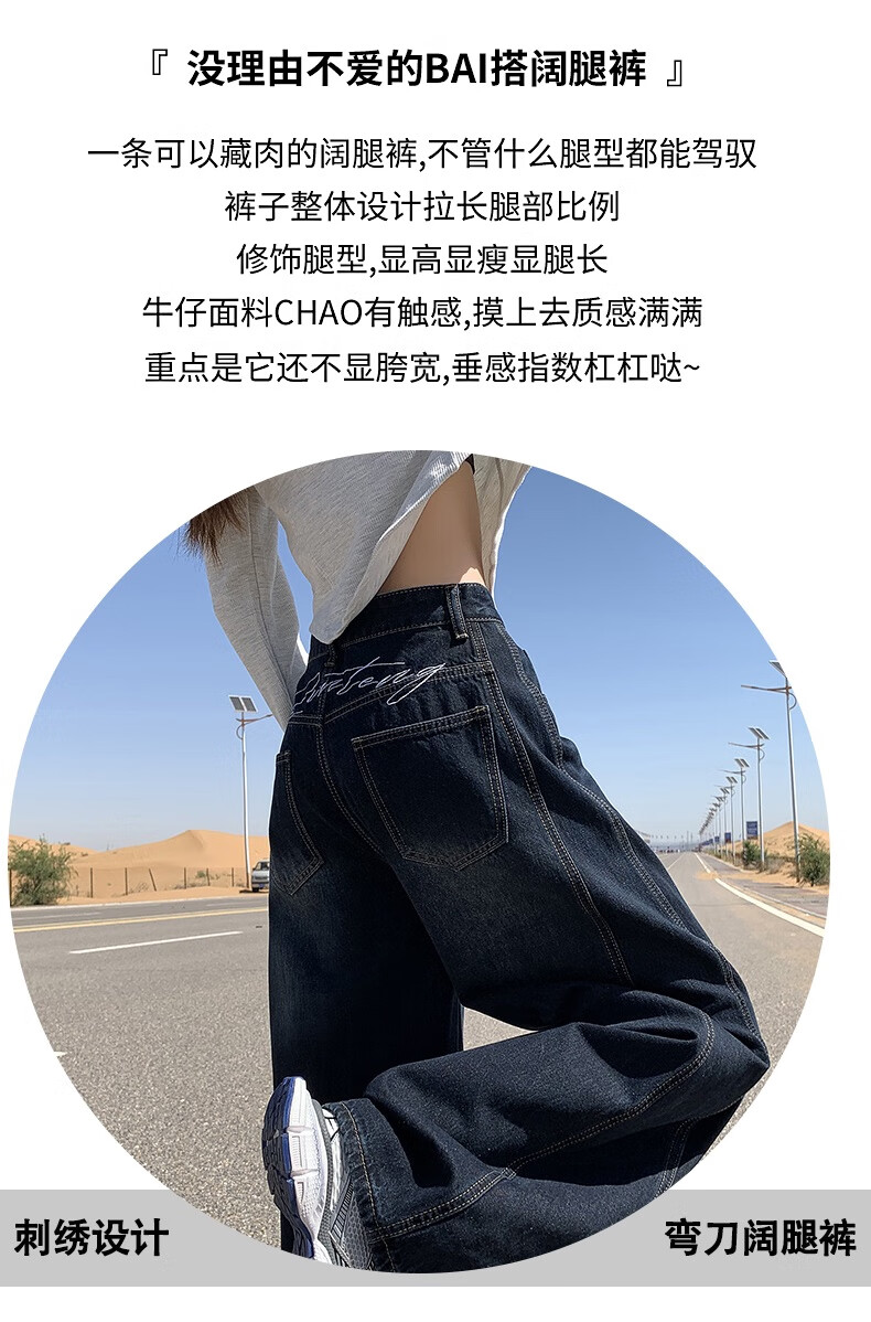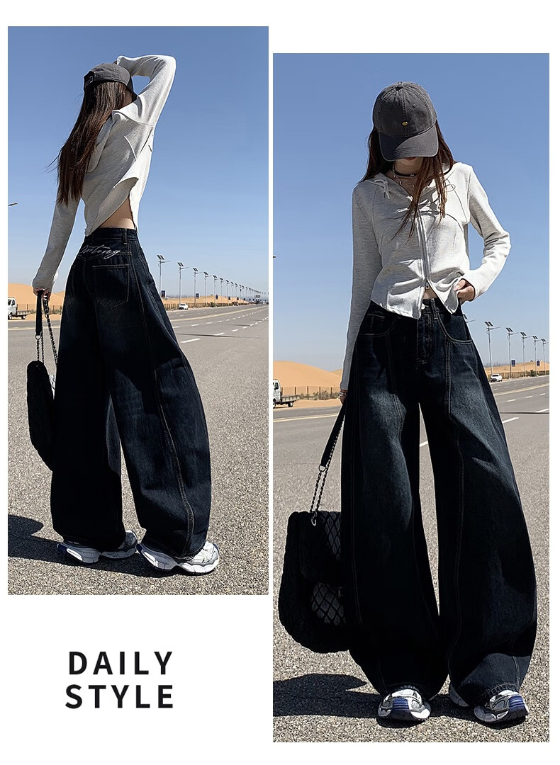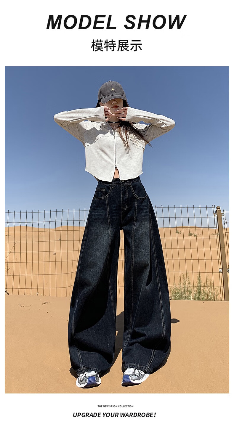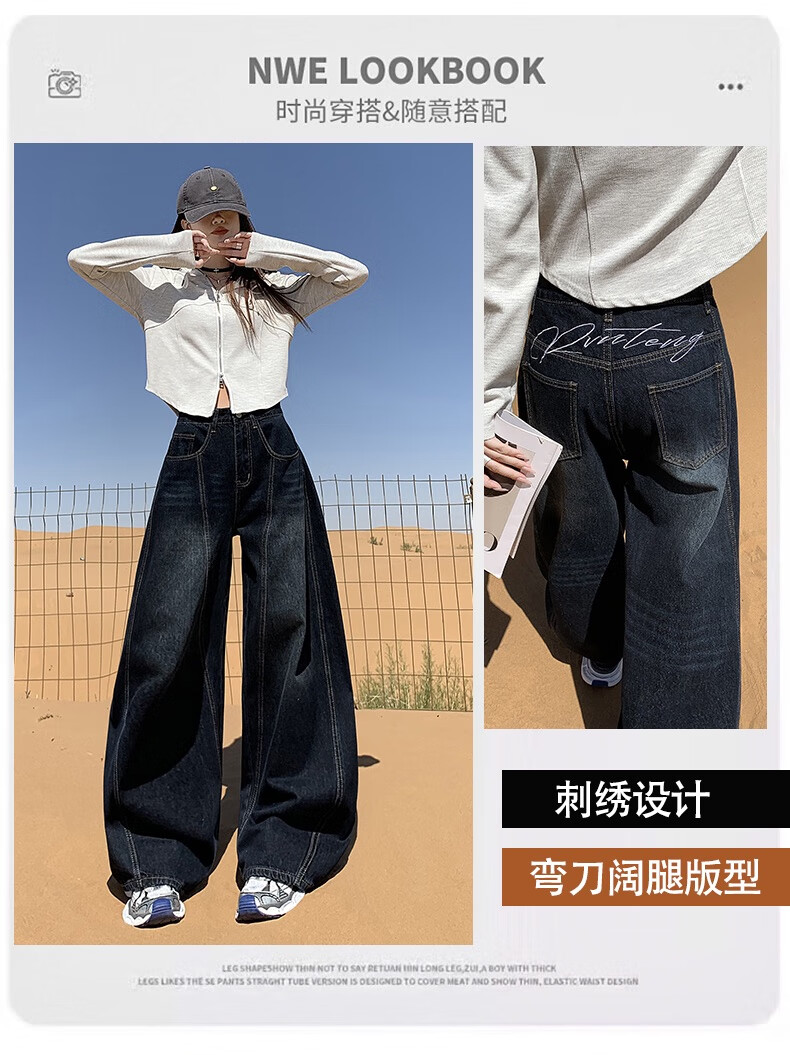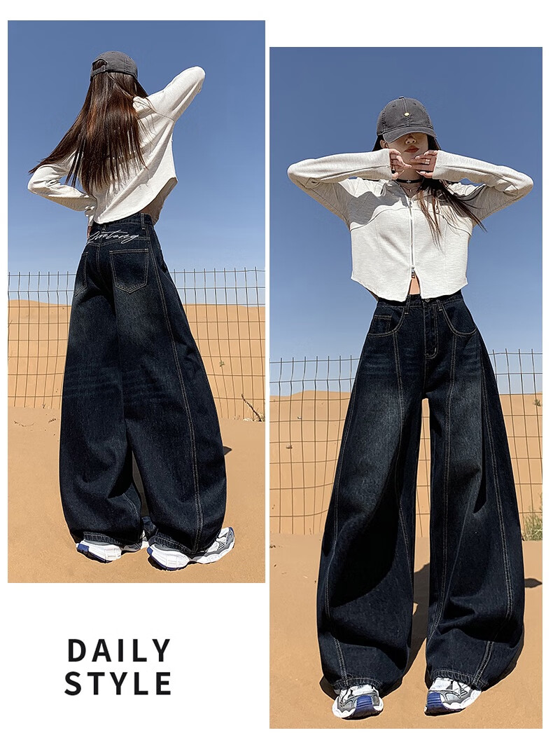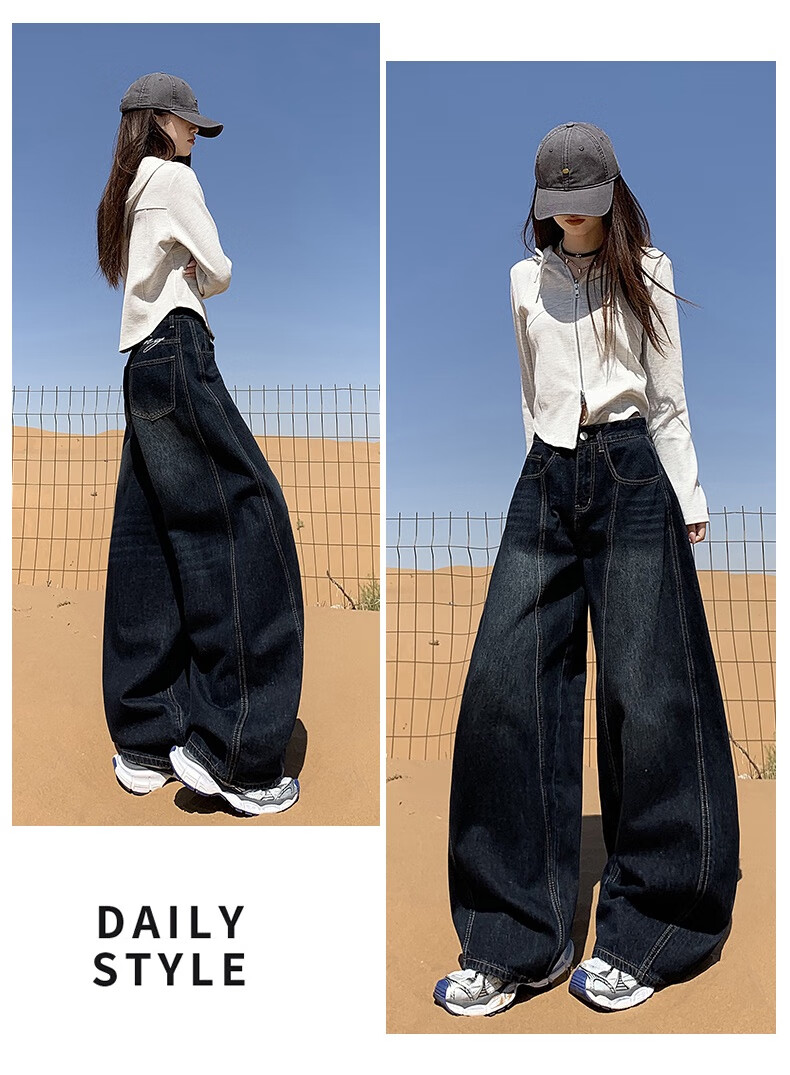 帅西欧美式复古直筒阔腿牛仔裤女2025秋季宽松高腰显瘦休闲长裤 蓝灰色 加长 2XL 【130斤-146斤】