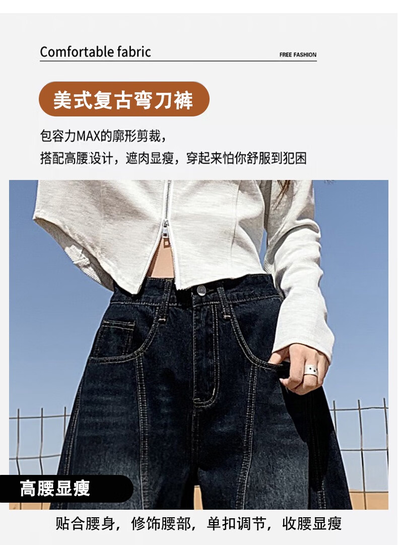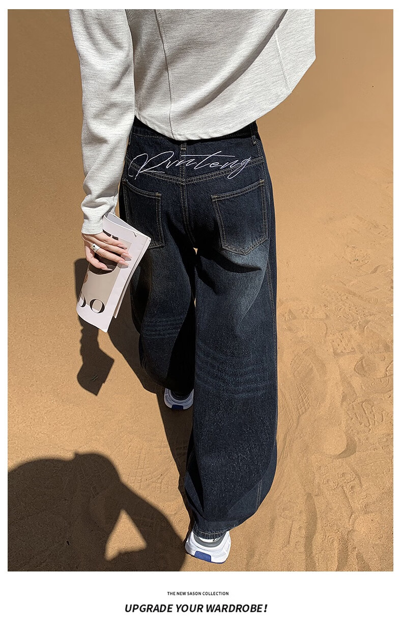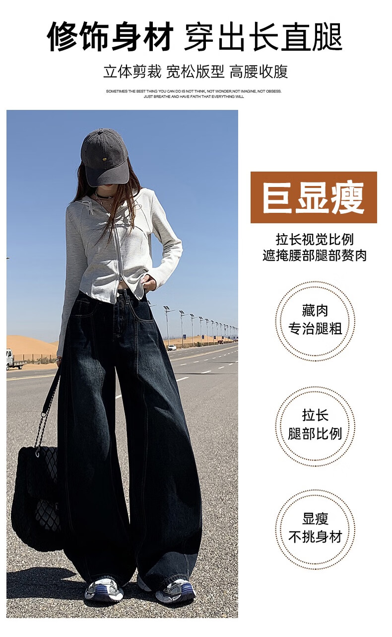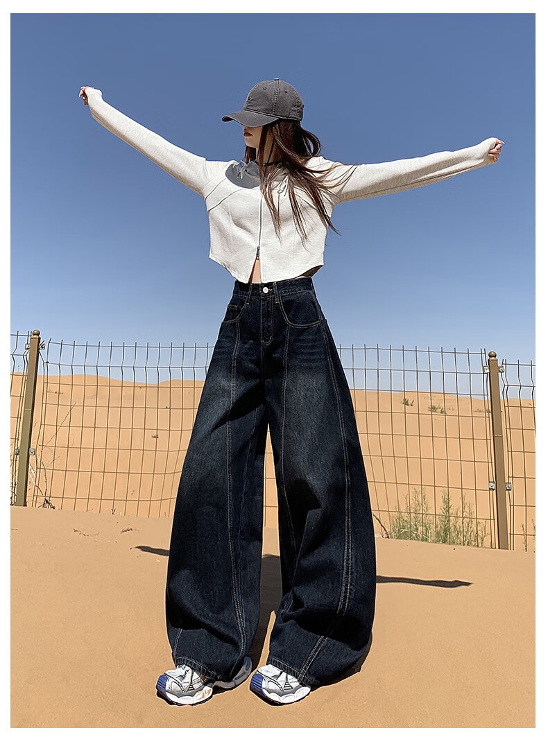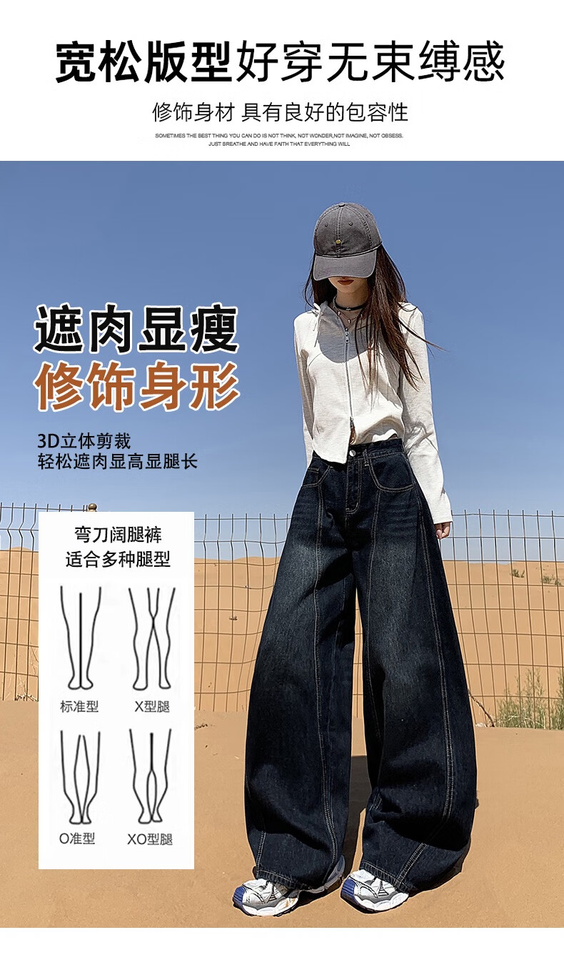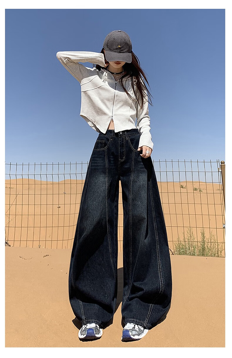 帅西欧美式复古直筒阔腿牛仔裤女2025秋季宽松高腰显瘦休闲长裤 蓝灰色 加长 2XL 【130斤-146斤】