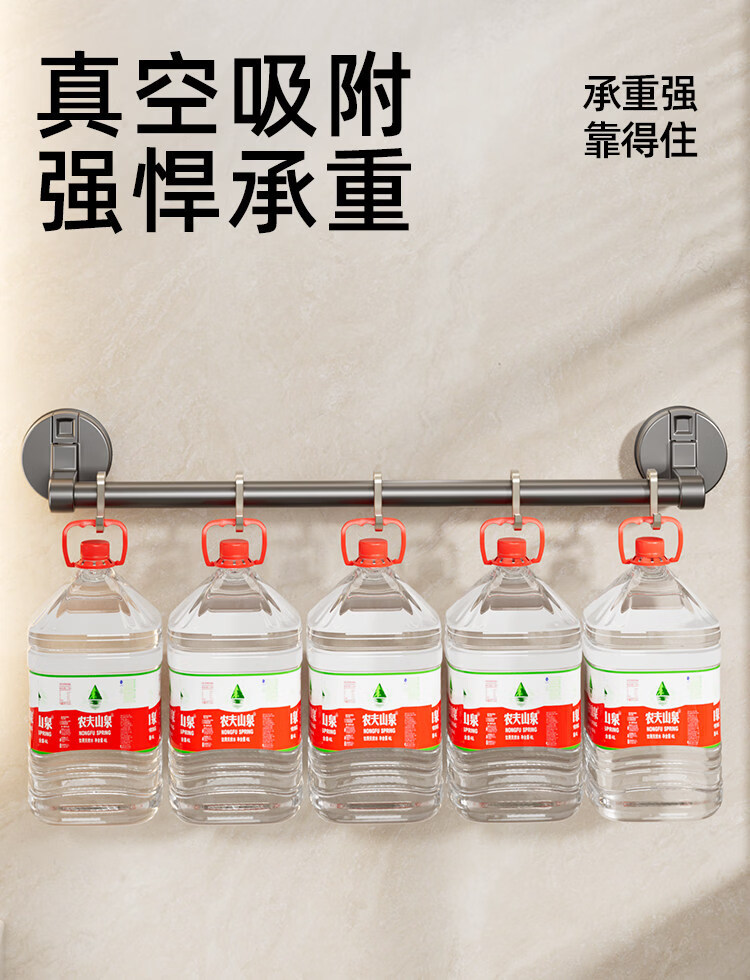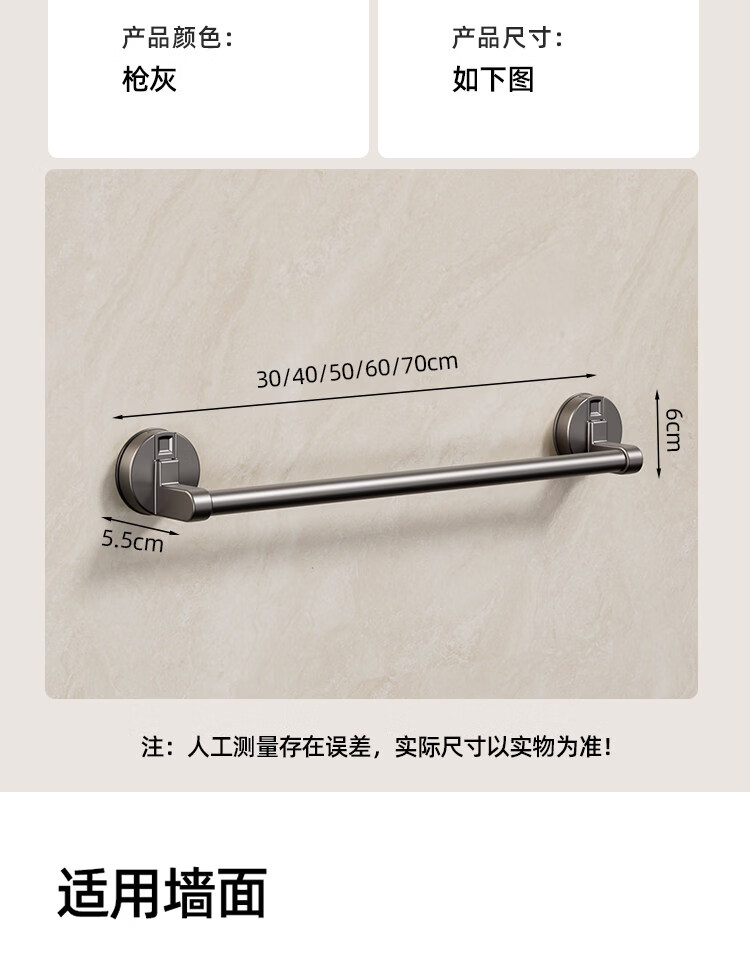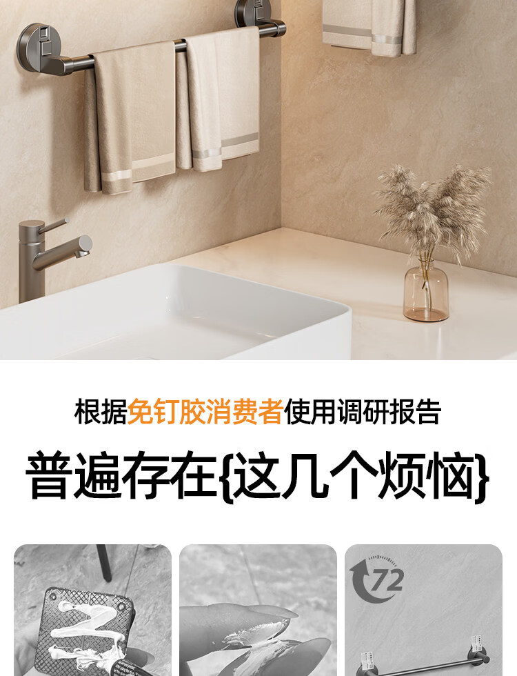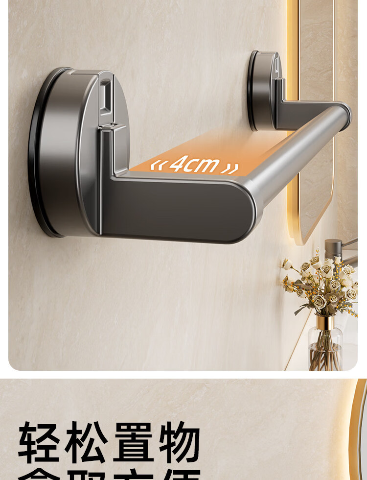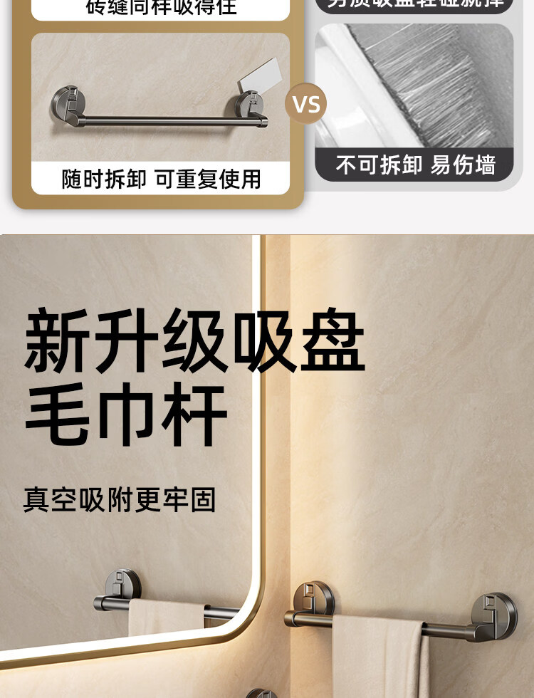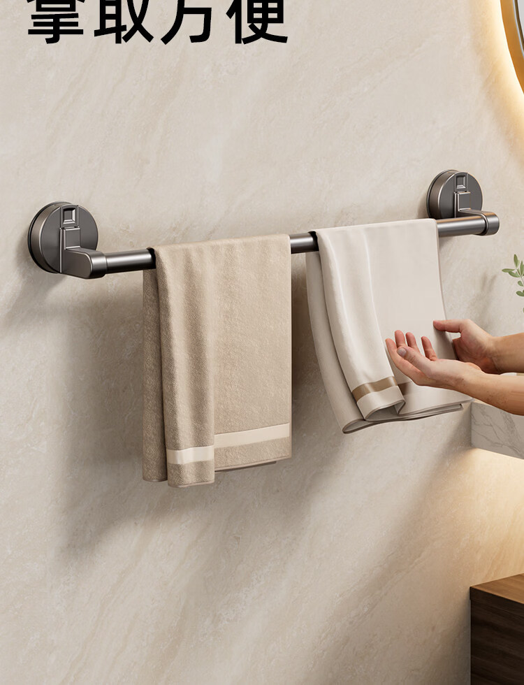 咏幻毛巾架卫生间免打孔吸盘式墙上毛巾架子浴室置物架厕所晾毛巾挂杆 【强劲吸附 掉落包赔】奶白色单杆70cm