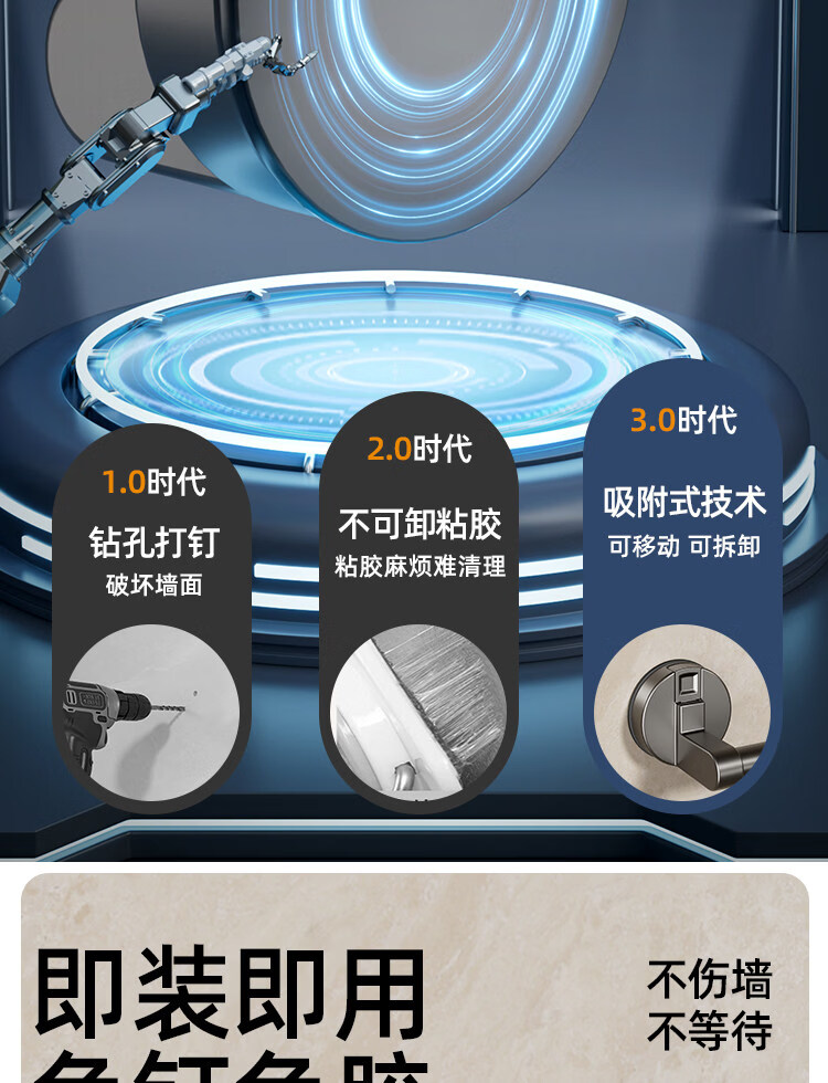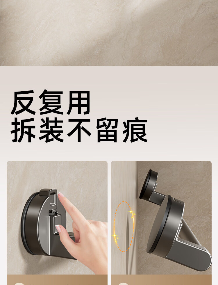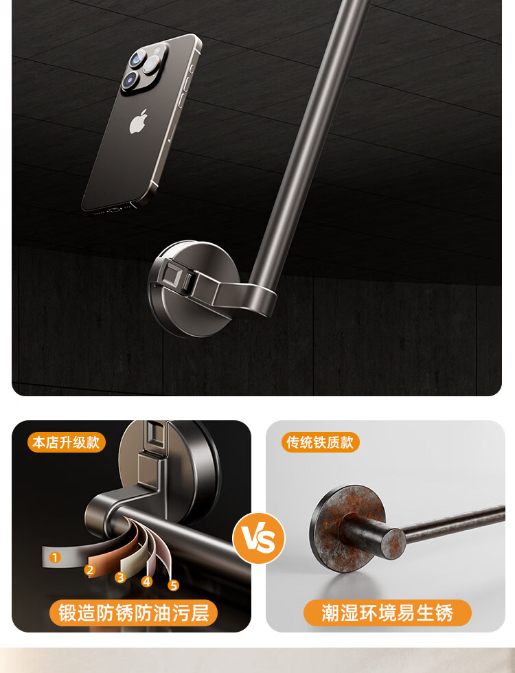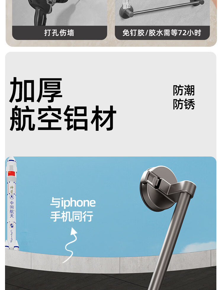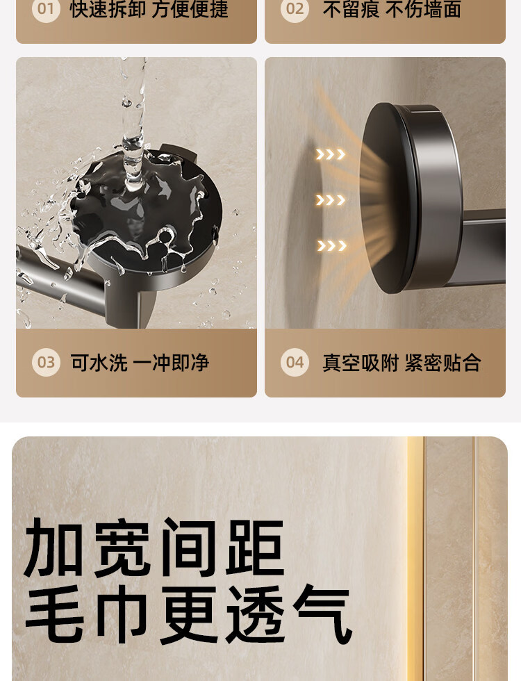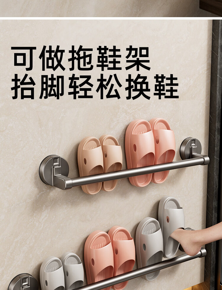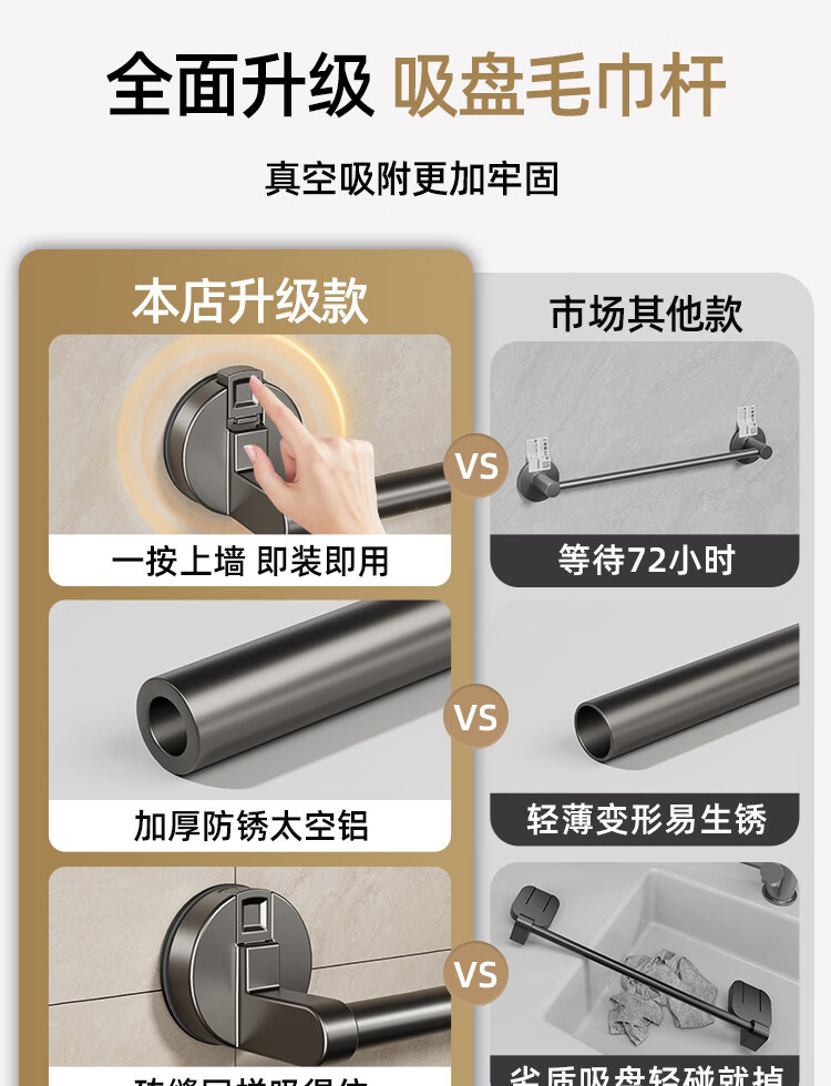 咏幻毛巾架卫生间免打孔吸盘式墙上毛巾架子浴室置物架厕所晾毛巾挂杆 【强劲吸附 掉落包赔】奶白色单杆70cm