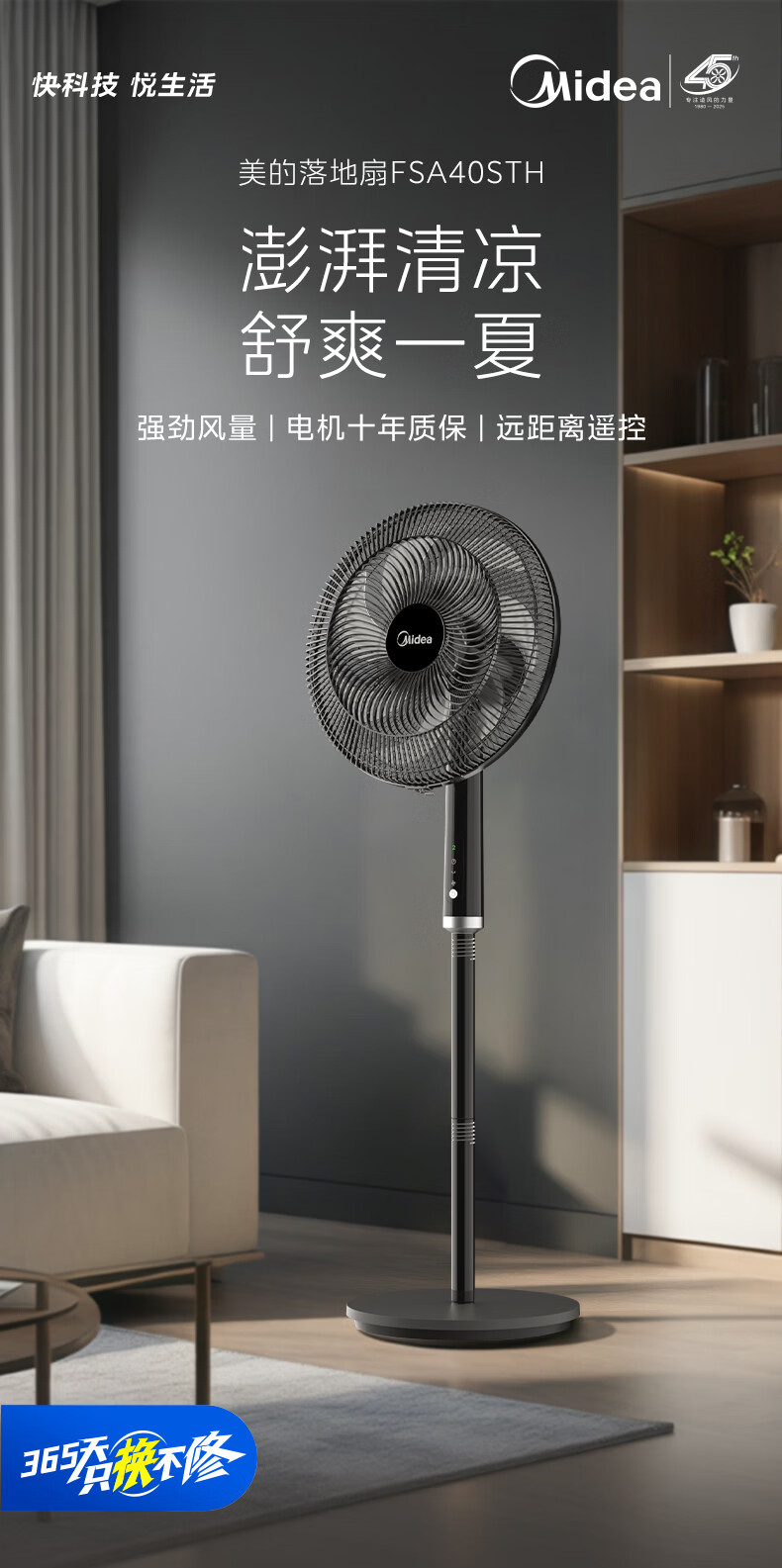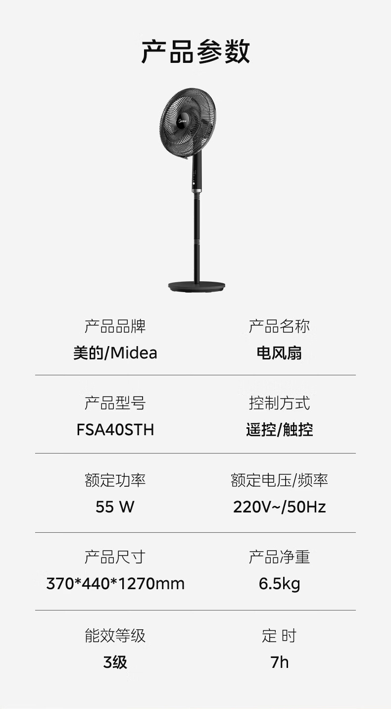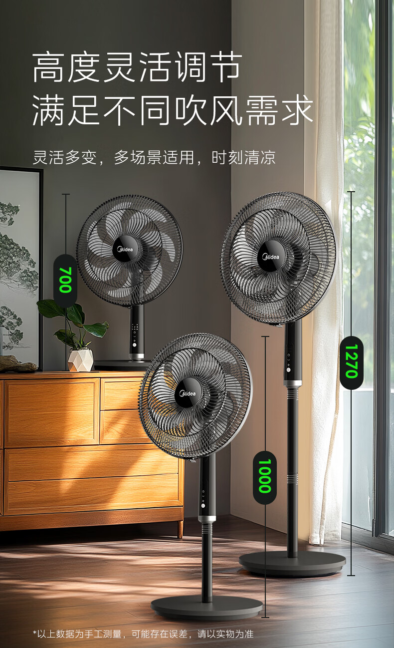 美的(Midea)客厅卧室遥控电风扇家用智能立式台式厨房落地扇轻音大风力办公室摇头风扇大功率纯铜电机