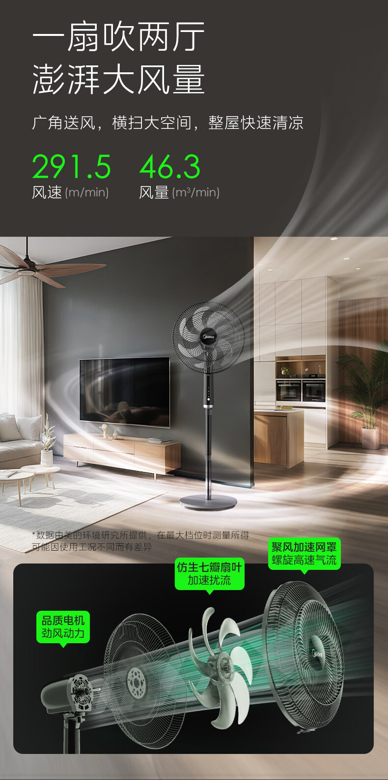 美的(Midea)落地扇家用电风扇大风量立式七叶节能强风电扇卧室降温柔风轻音台地两用摇头风扇 【加高机身 智能遥控】SAF35ER1