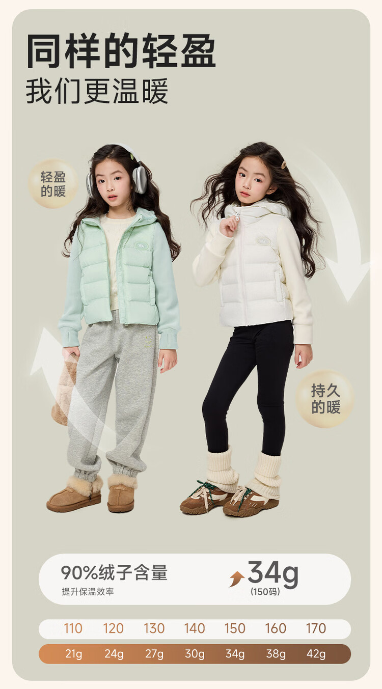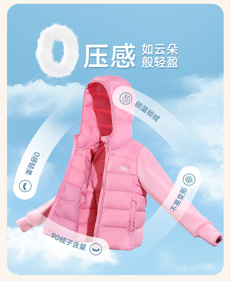 媛媛公主【校服神器】儿童轻薄羽绒服秋冬款女童90白鸭绒外套中大童内胆 粉色 110