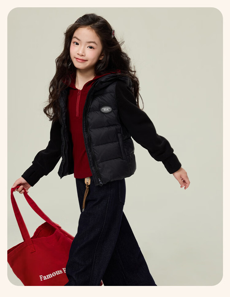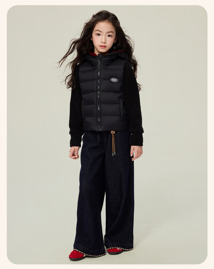 淘町女童运动套装秋新款中大童时尚机车风拼接撞色美式两件套 黑色 120