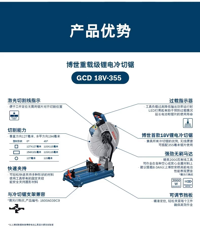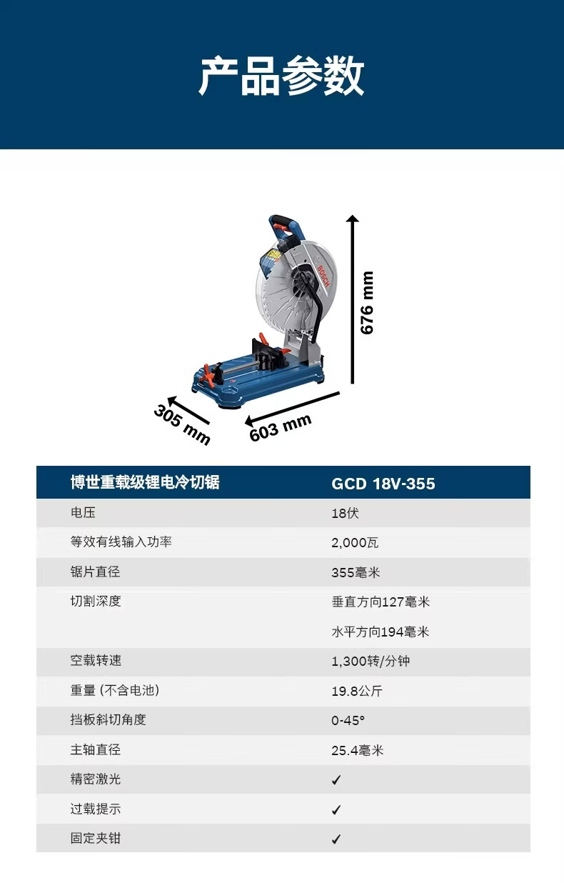 博世(BOSCH)GCD18V-355金属充电式切铝机型材切割机锂电无刷冷切锯高效型 GCD18V-35【官方标配】 无电池充电器