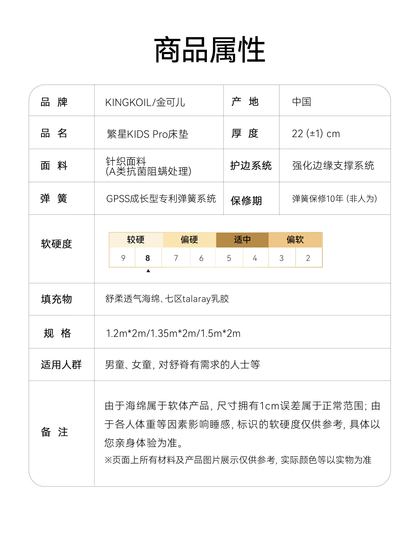 金可儿(Kingkoil)儿童床垫GPSS成长型弹簧偏硬儿童护脊床垫1.5米x2米 繁星KIDS Pro 繁星KIDS Pro 1.8米*2米
