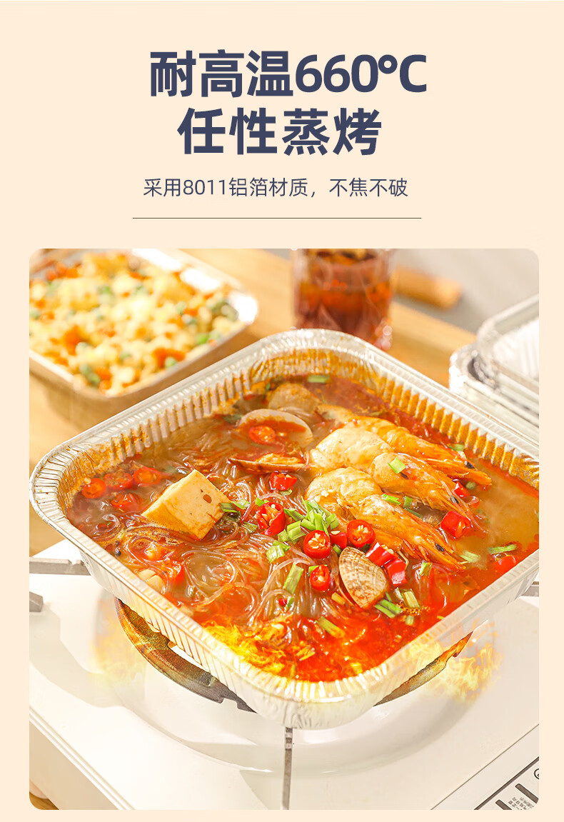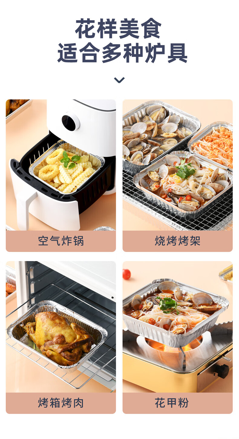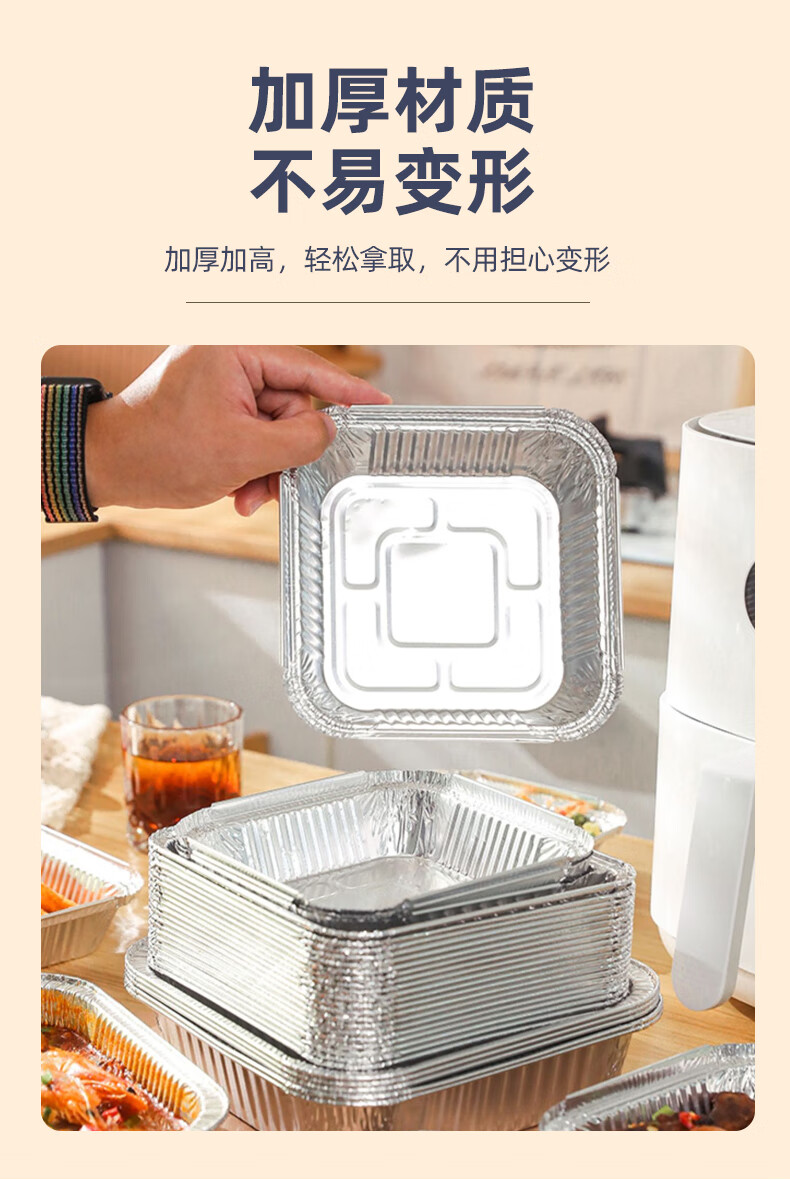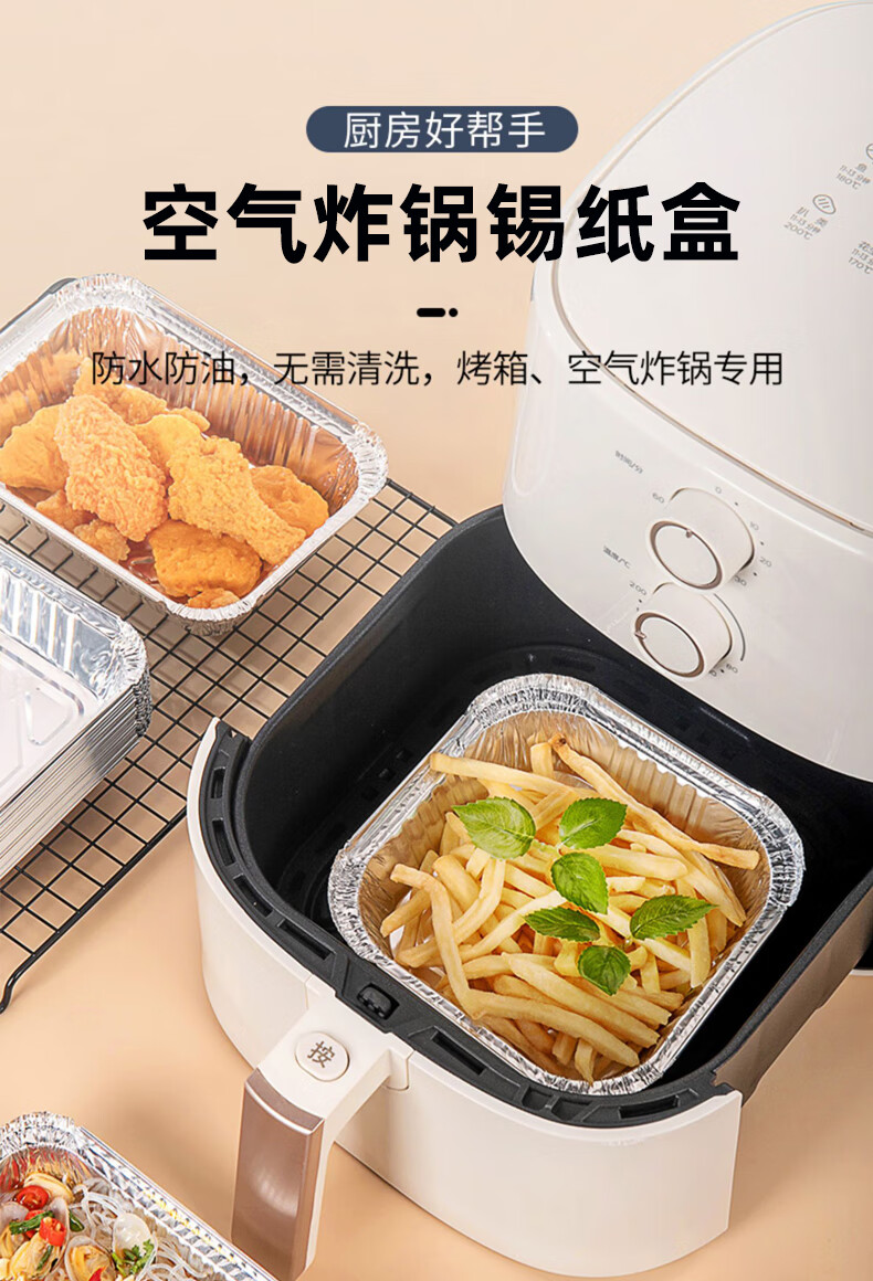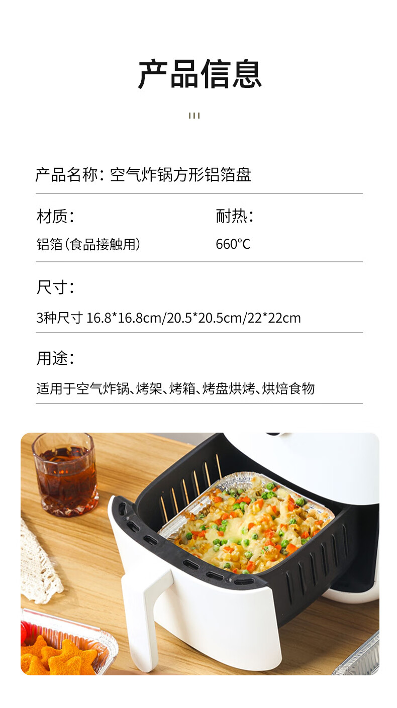 中原佳得美空气炸锅专用锡纸盘方形食品级铝箔盒碗可重复用耐高温烧烤烤箱 【8英寸/直径20CM】30个