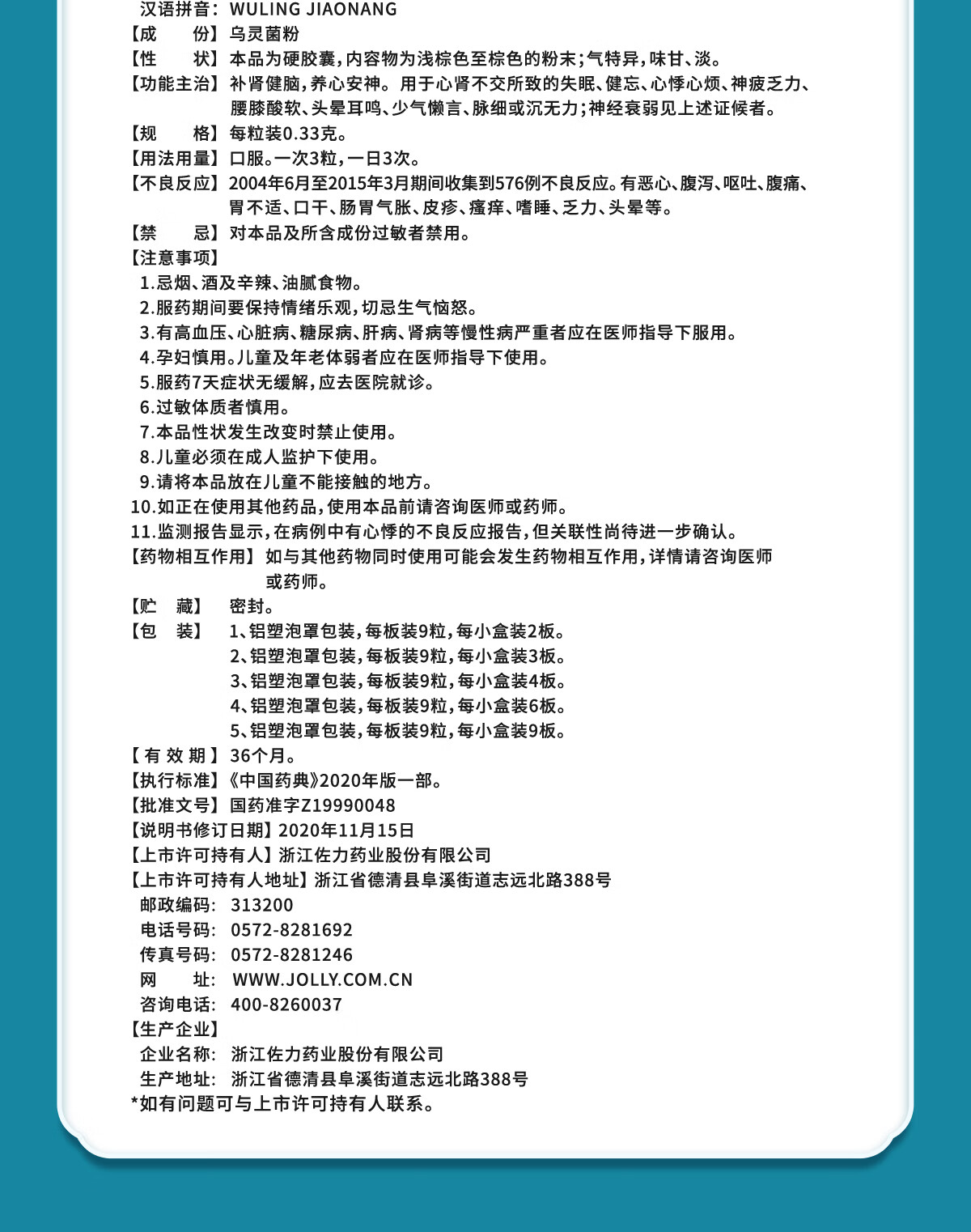 佐力 乌灵胶囊 0.33g*81粒 养心安神 补肾健脑 失眠健忘 多梦易醒 头晕耳鸣腰膝酸软