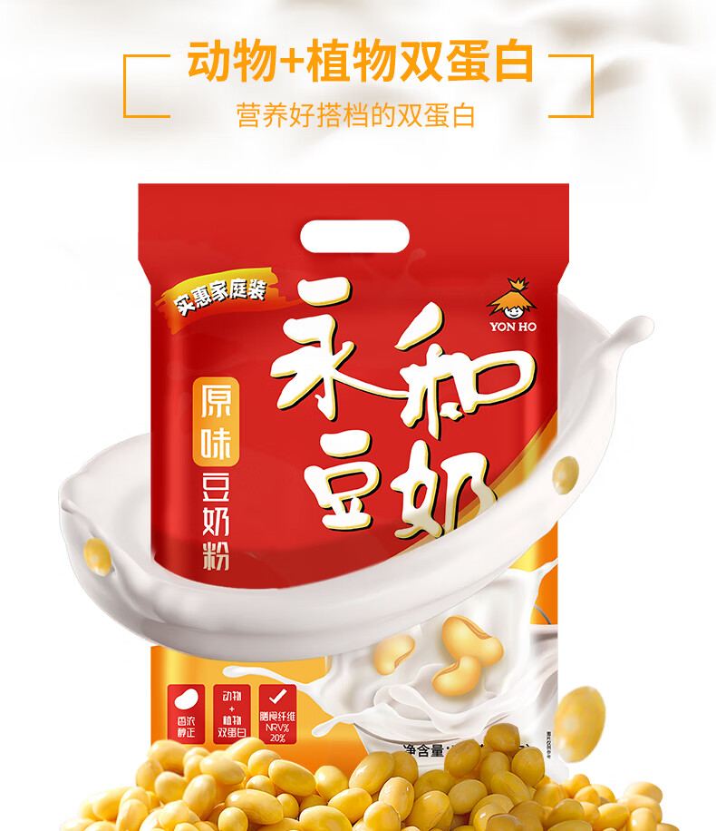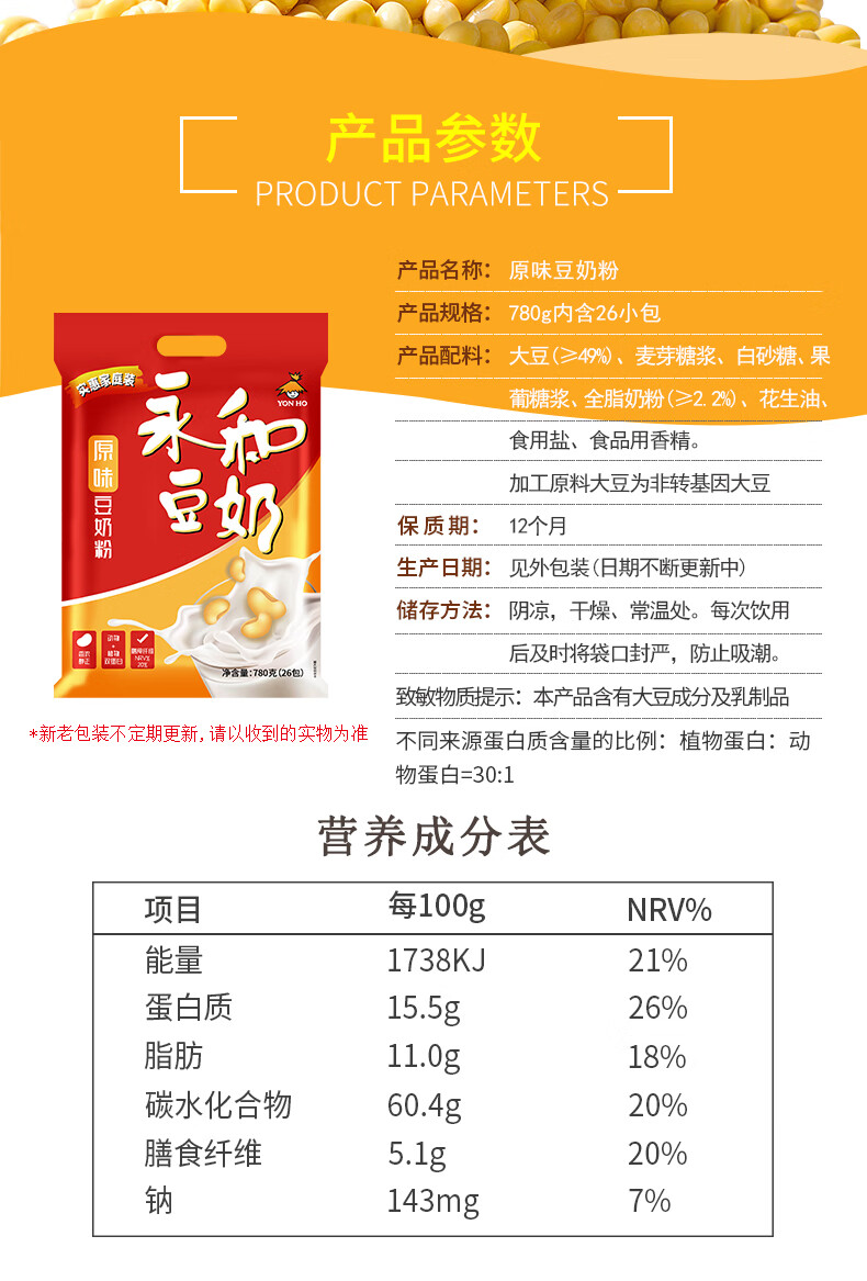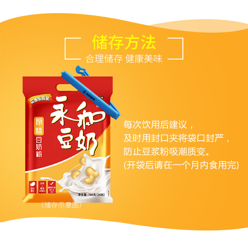永和豆浆原味豆奶粉780g 30g*26小包 含膳食纤维高蛋白 营养早餐即食