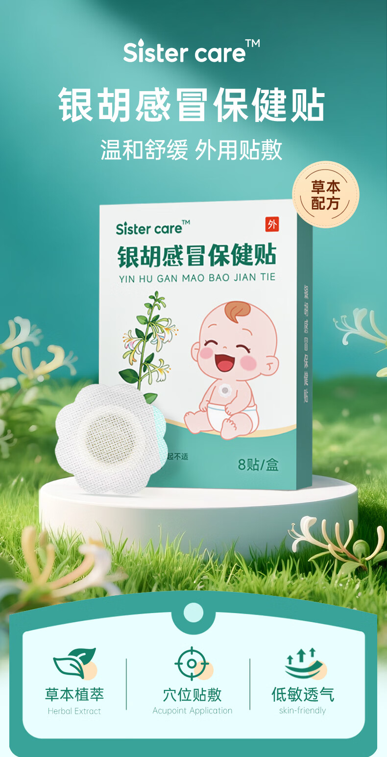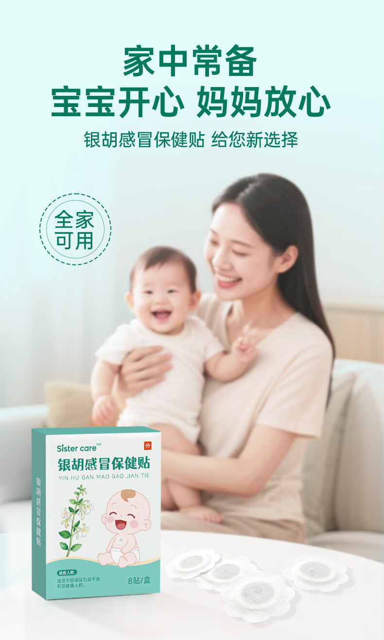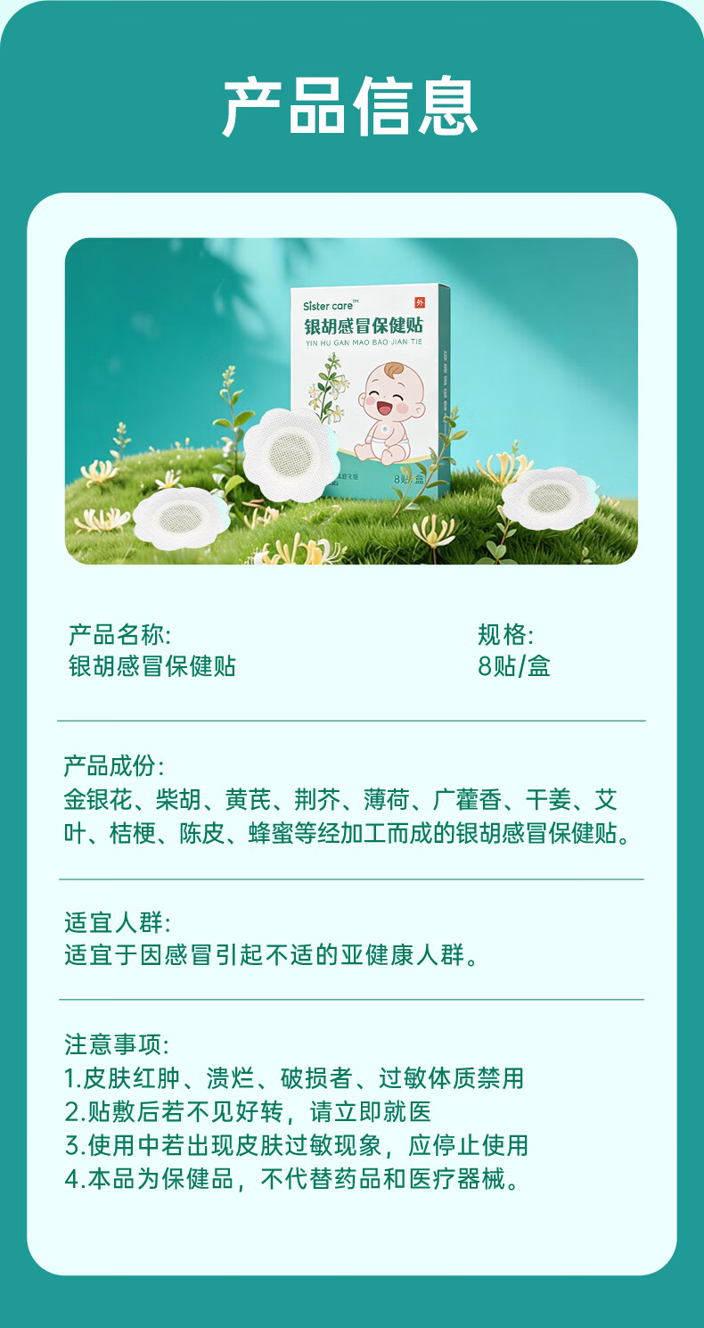 sister care银胡感冒保健贴婴儿宝宝流鼻涕鼻塞喷嚏止咳嗽小儿童风寒感冒8贴
