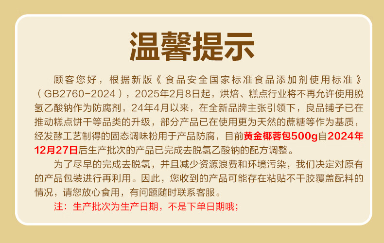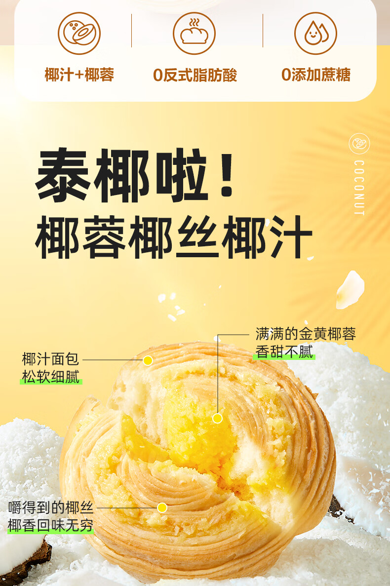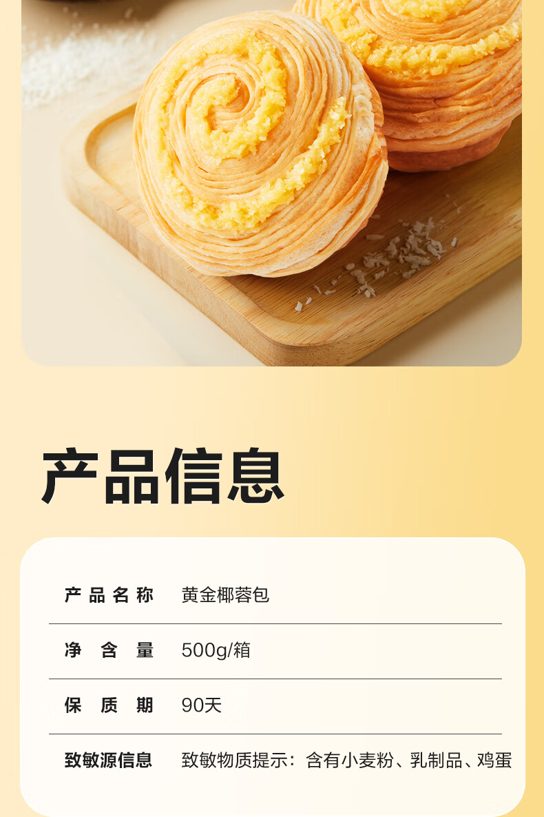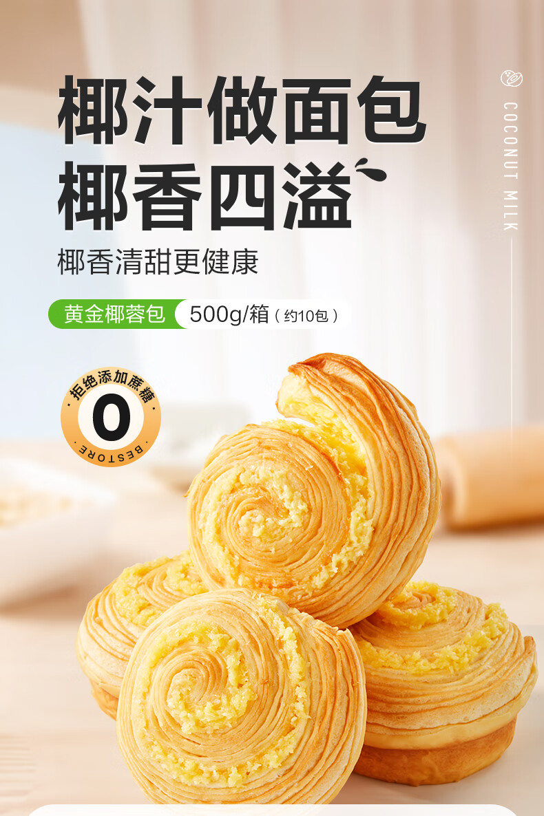 良品铺子黄金椰奶面包500g整箱装营养早餐面包糕点心休闲学生零食品