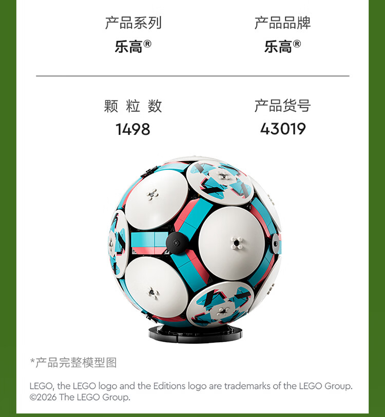 乐高(LEGO)积木43019 2026美加墨FIFA世界杯5号足球男女孩儿童玩具生日礼物