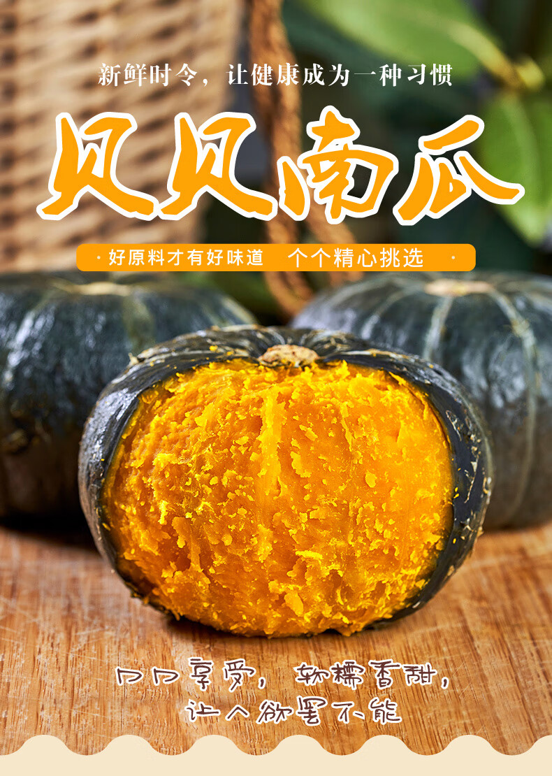 自然搭档 正宗贝贝南瓜 粉面香甜小南瓜 新鲜蔬菜香甜软糯产地直发 净重 4.5斤 (3-8个)
