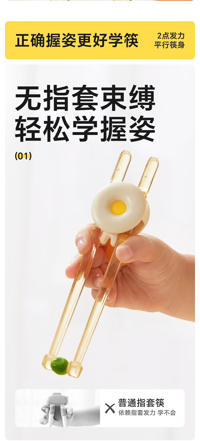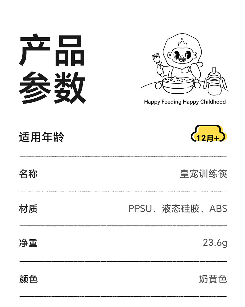 皇宠儿童筷子虎口训练筷1-3-6岁宝宝学习筷幼儿辅助练习餐具
