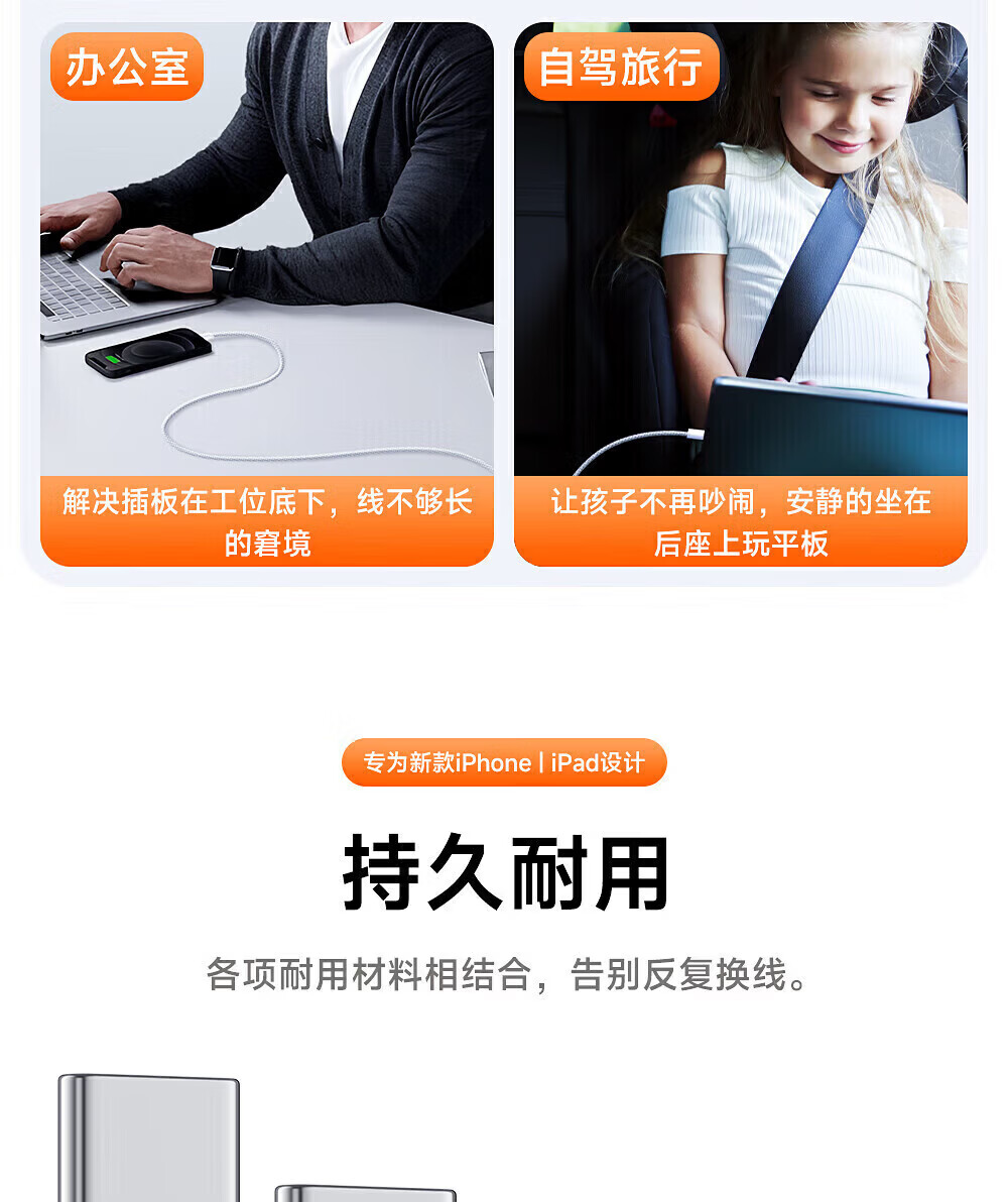 京东京造22.5W超级快充轻薄便携自带线充电宝10000毫安时3c认证可上飞机移动电源适用苹果17华为小米17荣耀