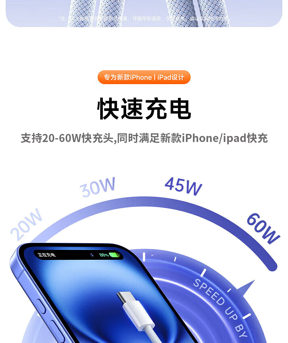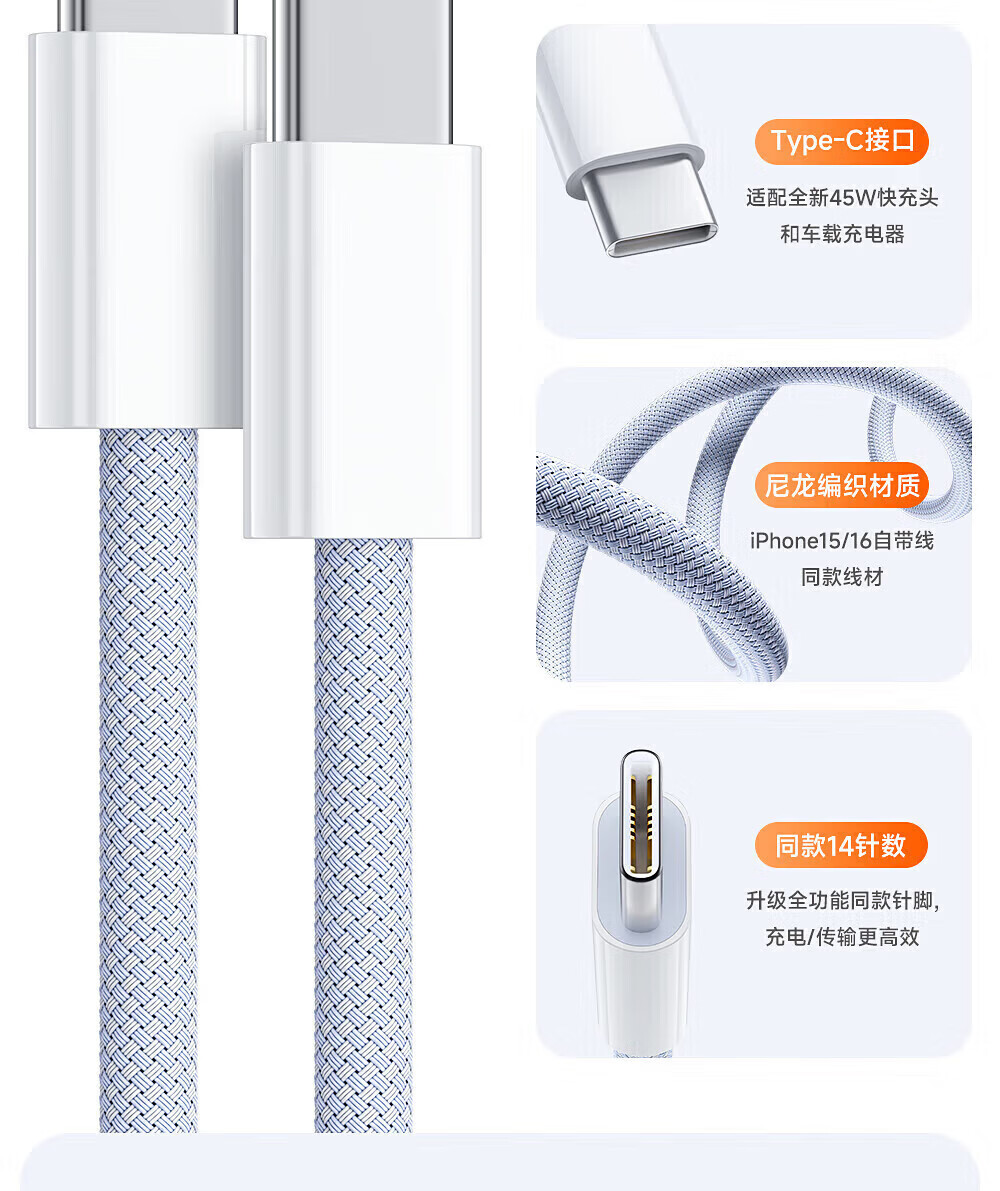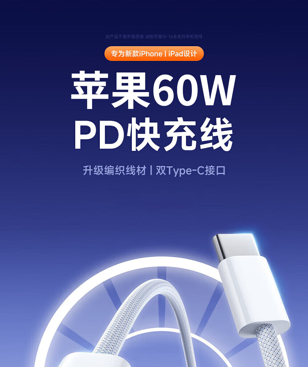 原装【直营正品】苹果15充电线60W快充套装适配原装iPhone17Promax/16Pro/15双type-c车载手机数据线 【苹果15-17】双C口|60W编织快充线1.0米