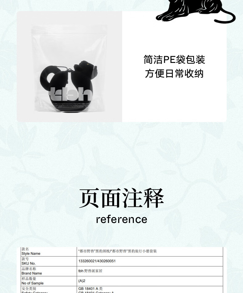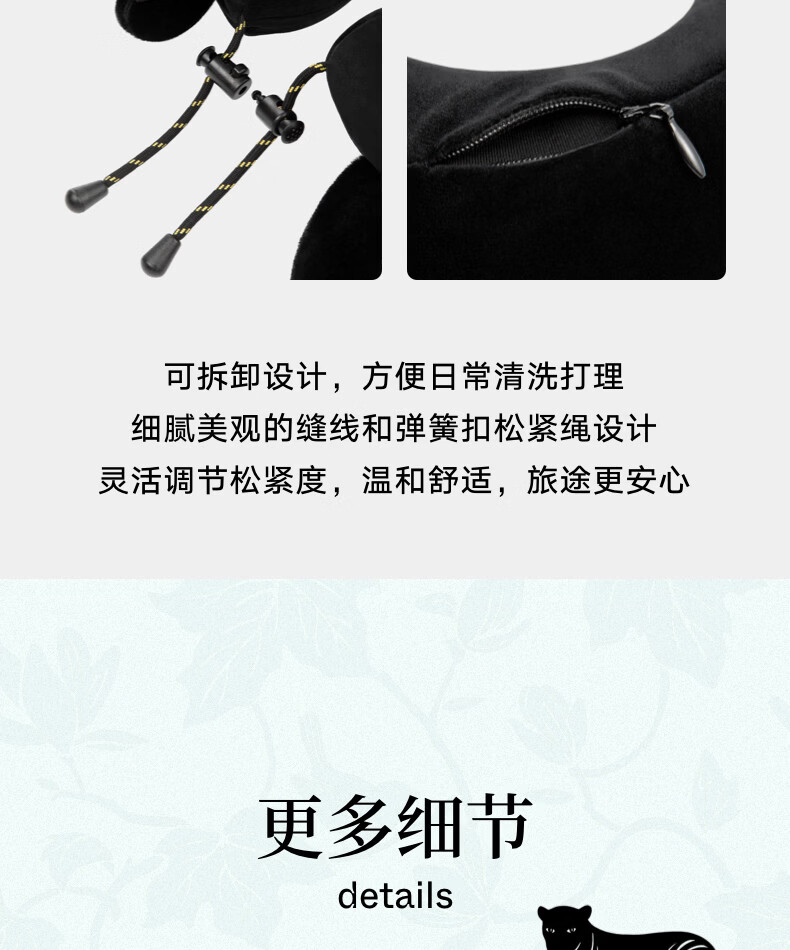 野兽派家居(tbh)都市野兽黑豹U型枕旅行枕飞机枕便携颈枕礼物 黑豹旅行U型枕