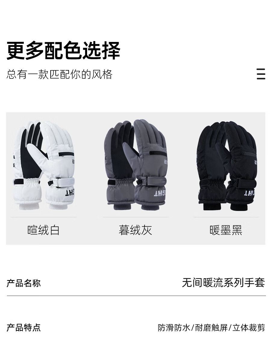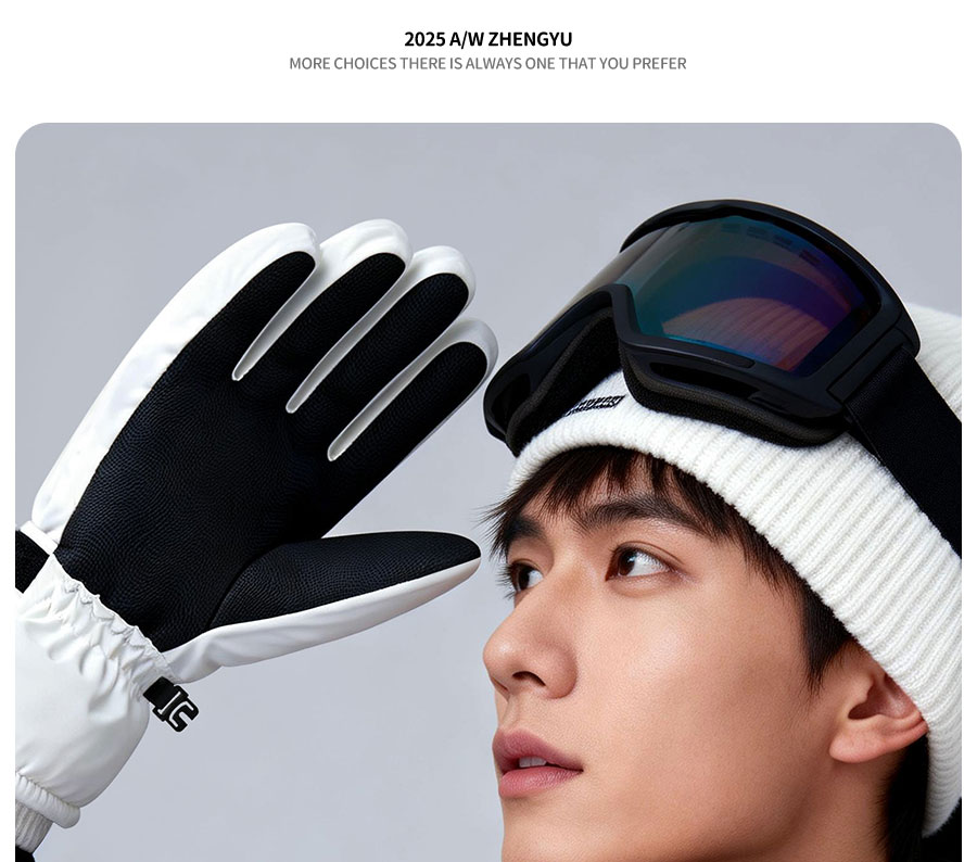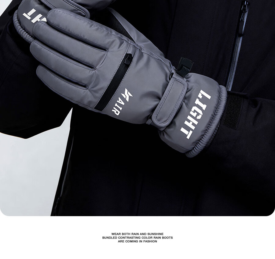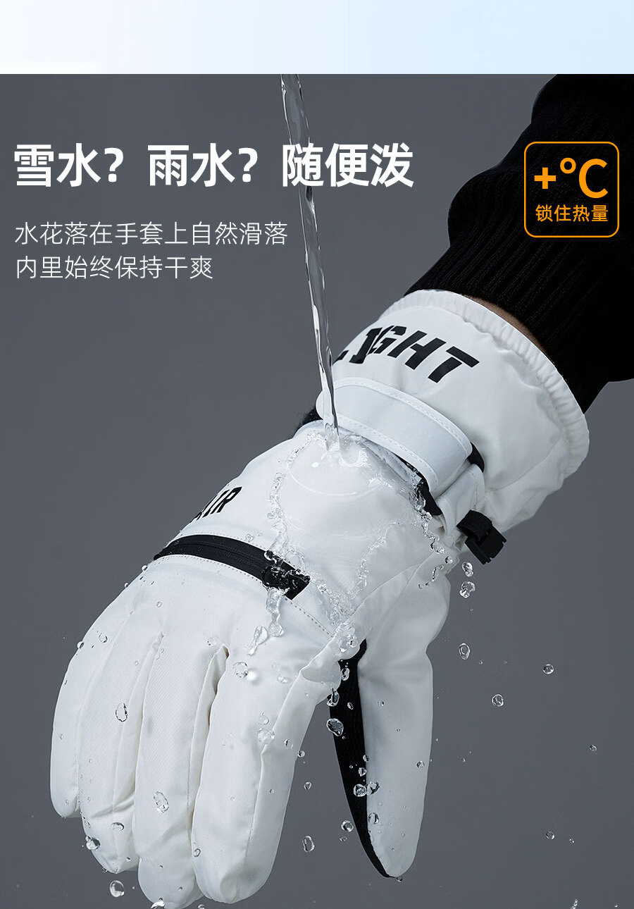 正雨手套冬季男骑行滑雪保暖电动车防水防风全指加绒防寒玩雪户外触屏 男式滑雪款【科技布防泼水】月影黑