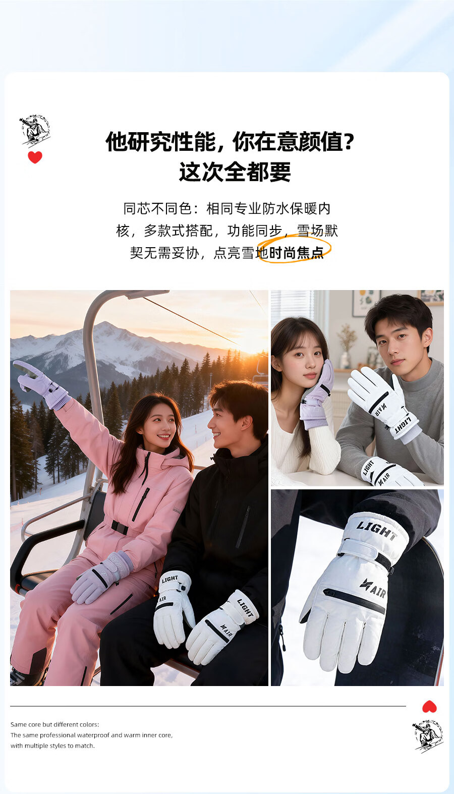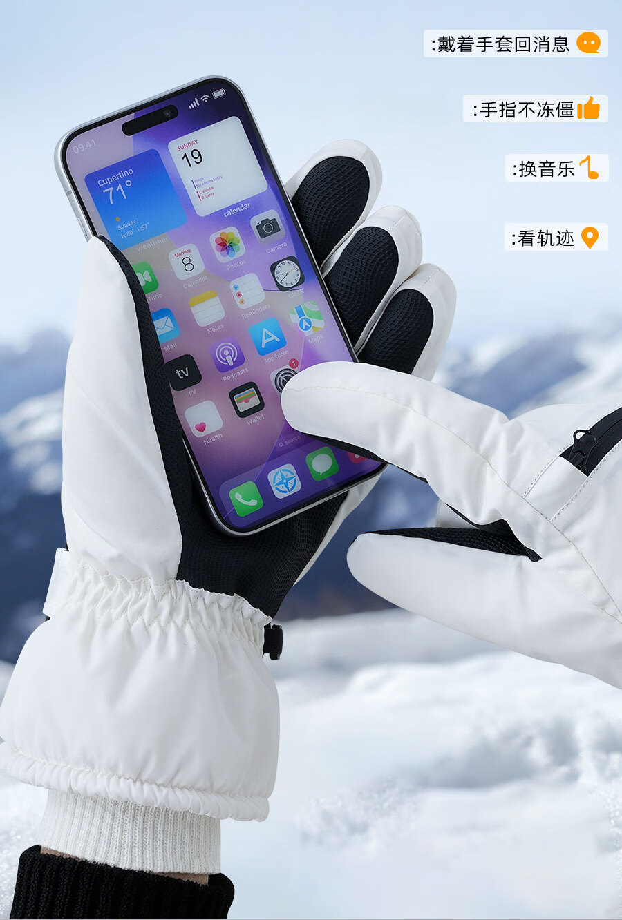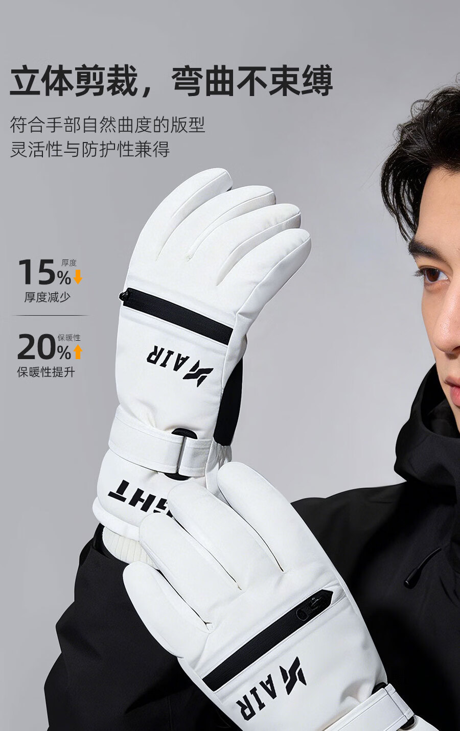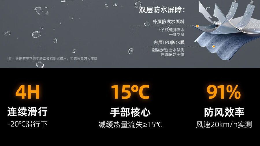 正雨手套冬季男骑行滑雪保暖电动车防水防风全指加绒防寒玩雪户外触屏 男式滑雪款【科技布防泼水】月影黑