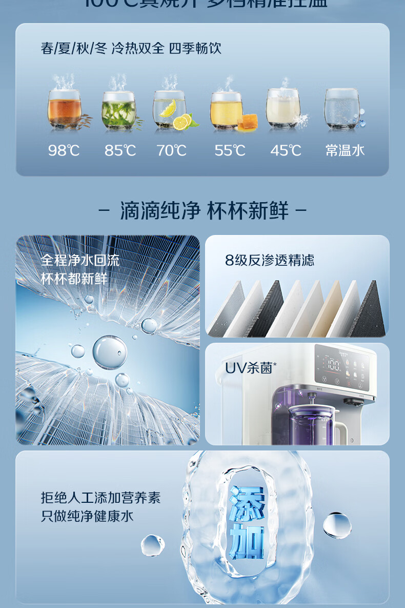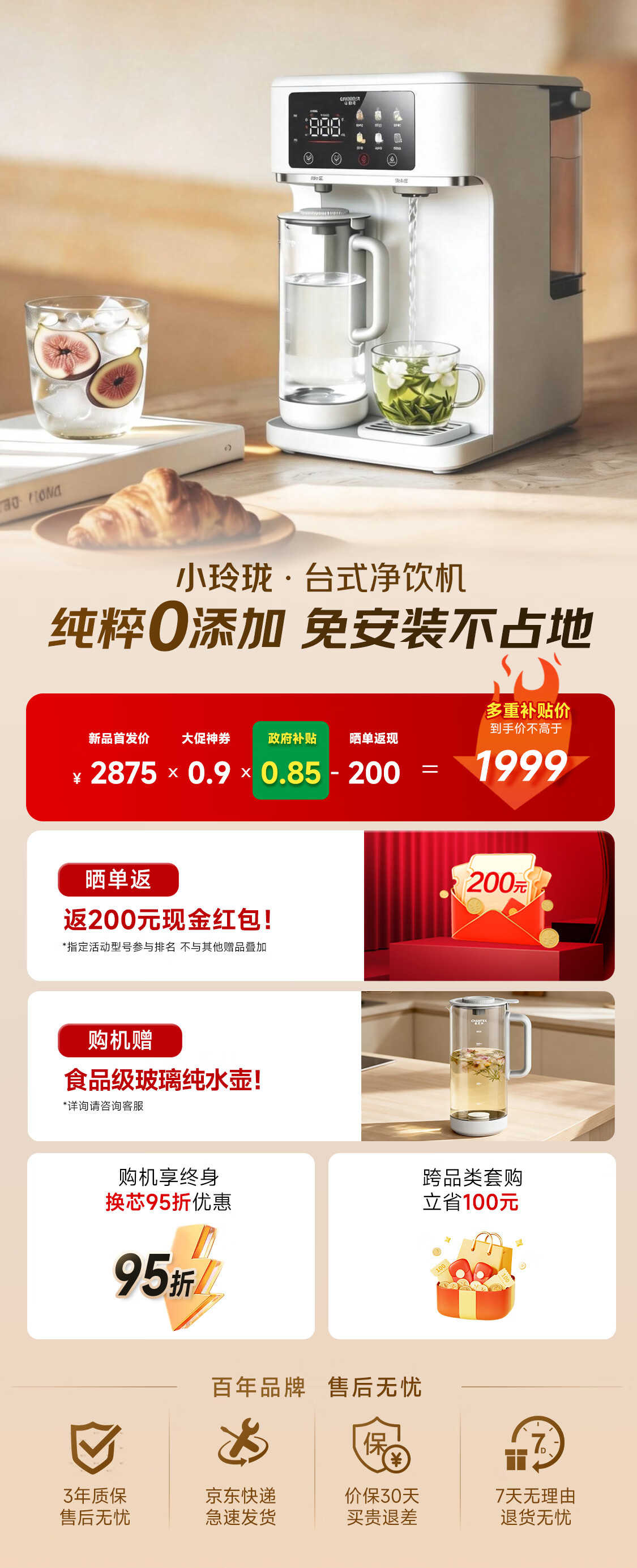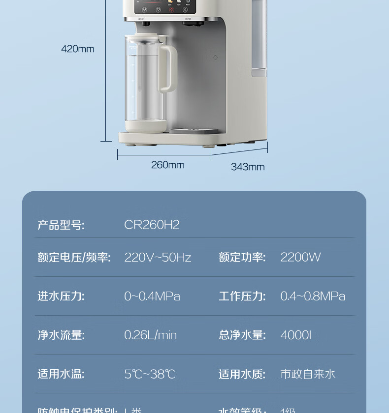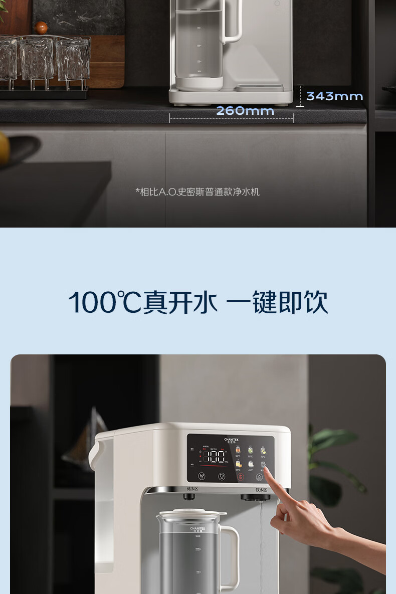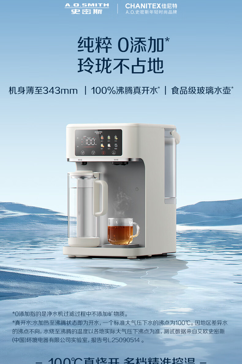 史密斯(A.O.SMITH)【2026上新】佳尼特小玲珑家用免安装台式净饮机 RO反渗透即热净水机净水器加热直饮一体机CR260H2 纯粹0添加 玲珑不占地 5L 6档控温8级精滤